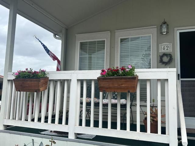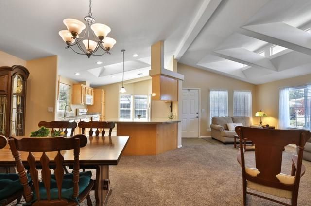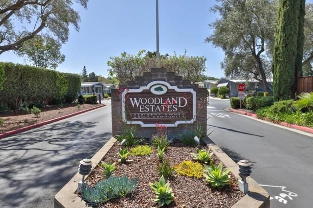 Charming & Rare 2004 Manufactured Home in Woodland Estates 55+ Community-This beautifully maintained home is ready for its next owners. Step inside to find a spacious & inviting living room with vaulted ceilings & pre-plumbed fireplace. The well-appointed kitchen features a breakfast nook with a bay window, breakfast bar, & an abundance of storage & counter space. Separate dining area. The primary bedroom is generously sized & has an overhead fan/light. The home includes a host of original upgrades: extra insulation, copper plumbing, 6-panel doors, dual-pane windows, sheet rocked walls for a clean aesthetic. The home is on an easy-care corner lot with beautiful established garden with citrus trees/roses/& more, raised planter box & automatic irrigation system. Woodland Estates offers a range of amenities including walking greenbelt, clubhouse, tennis/pickleball courts, bocce, a gym, pool & spa. This is a wonderful place to call home!