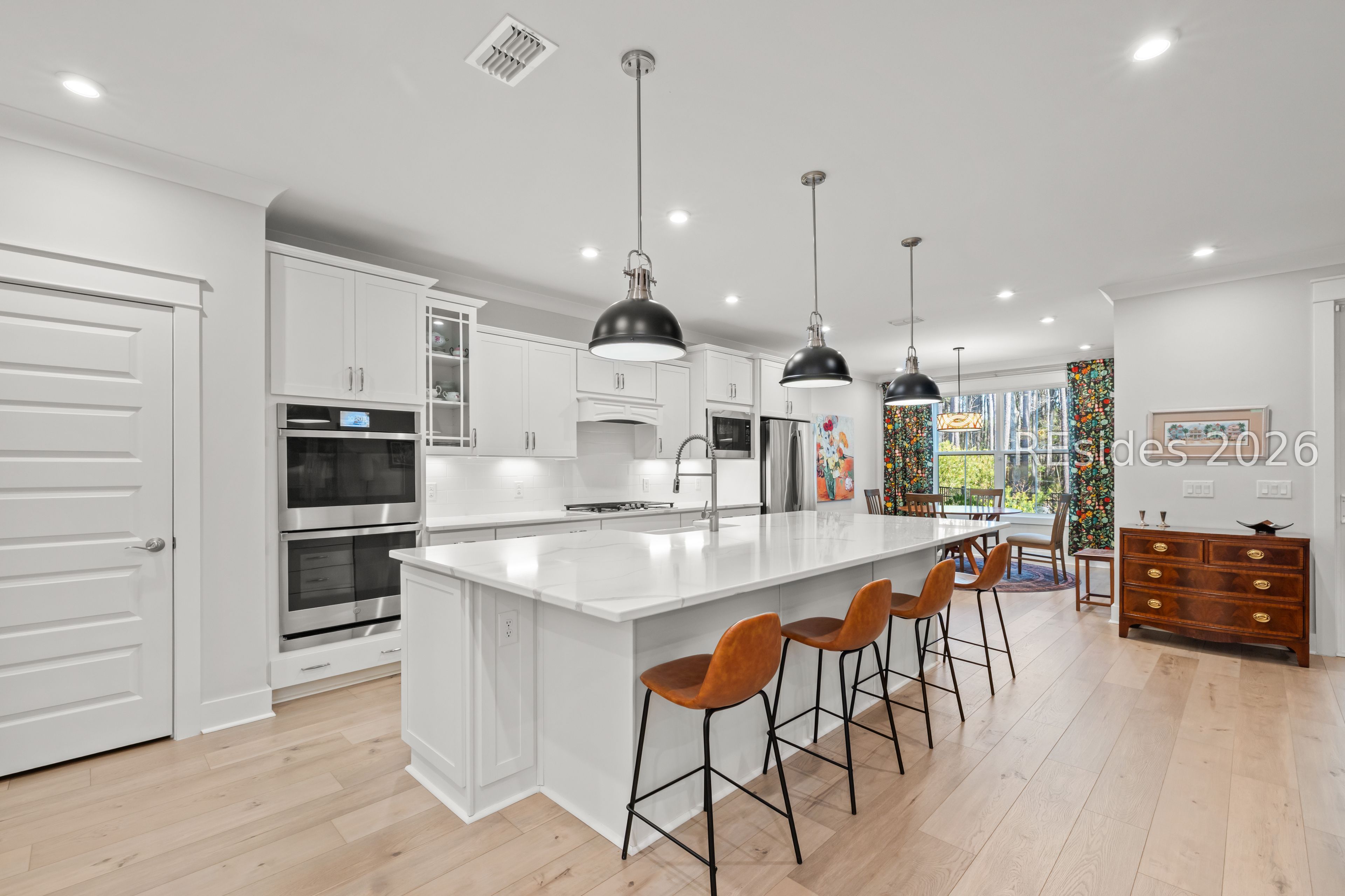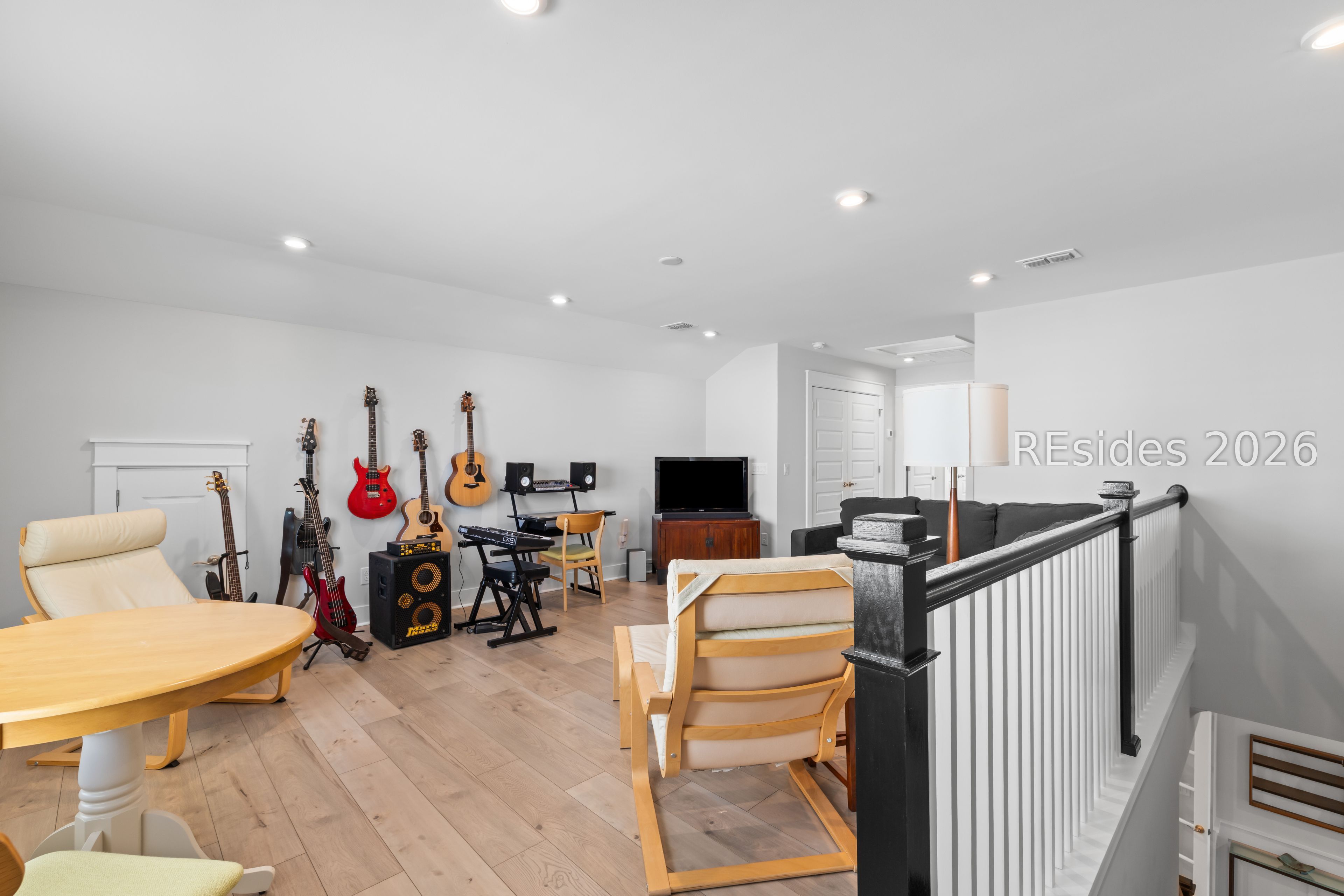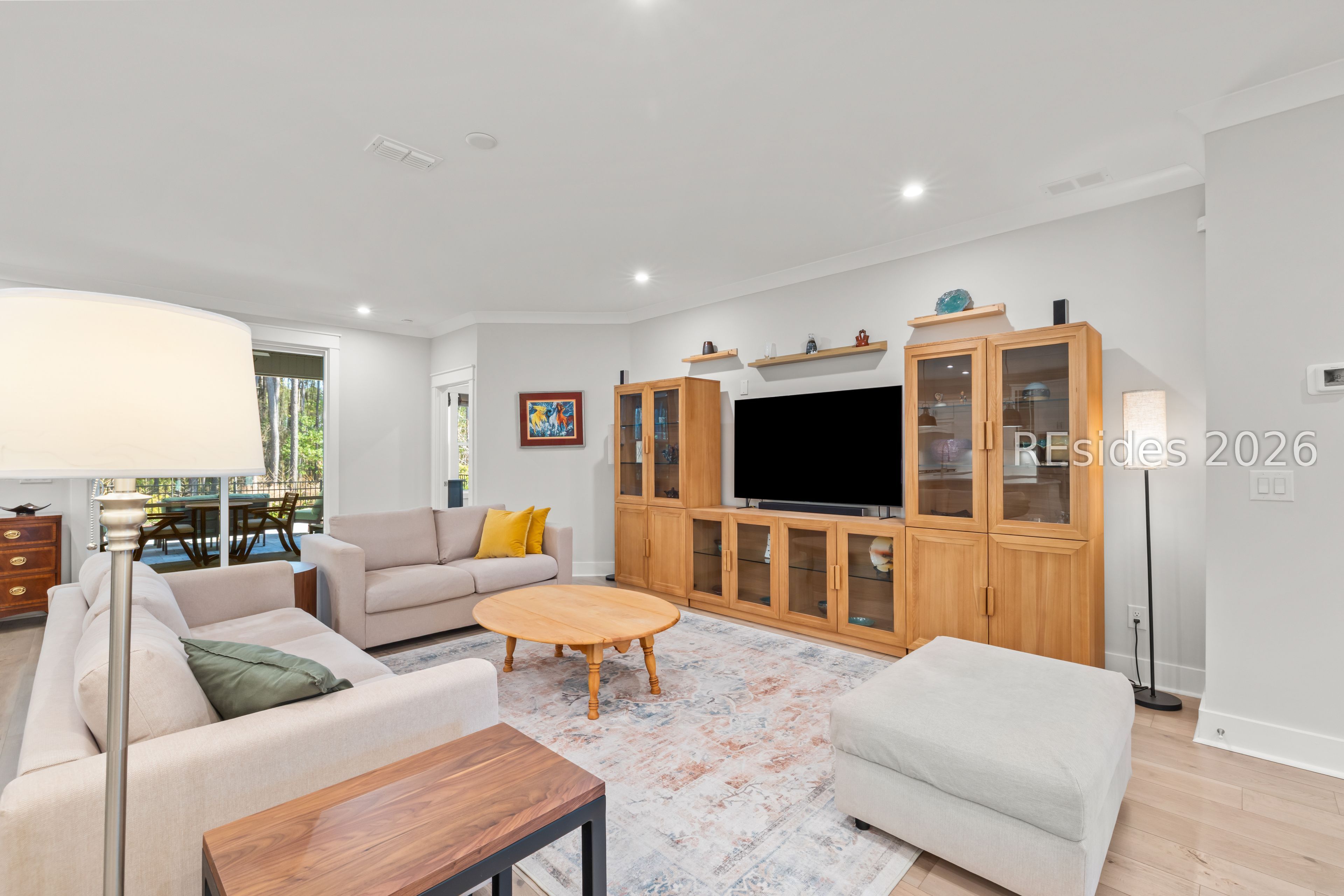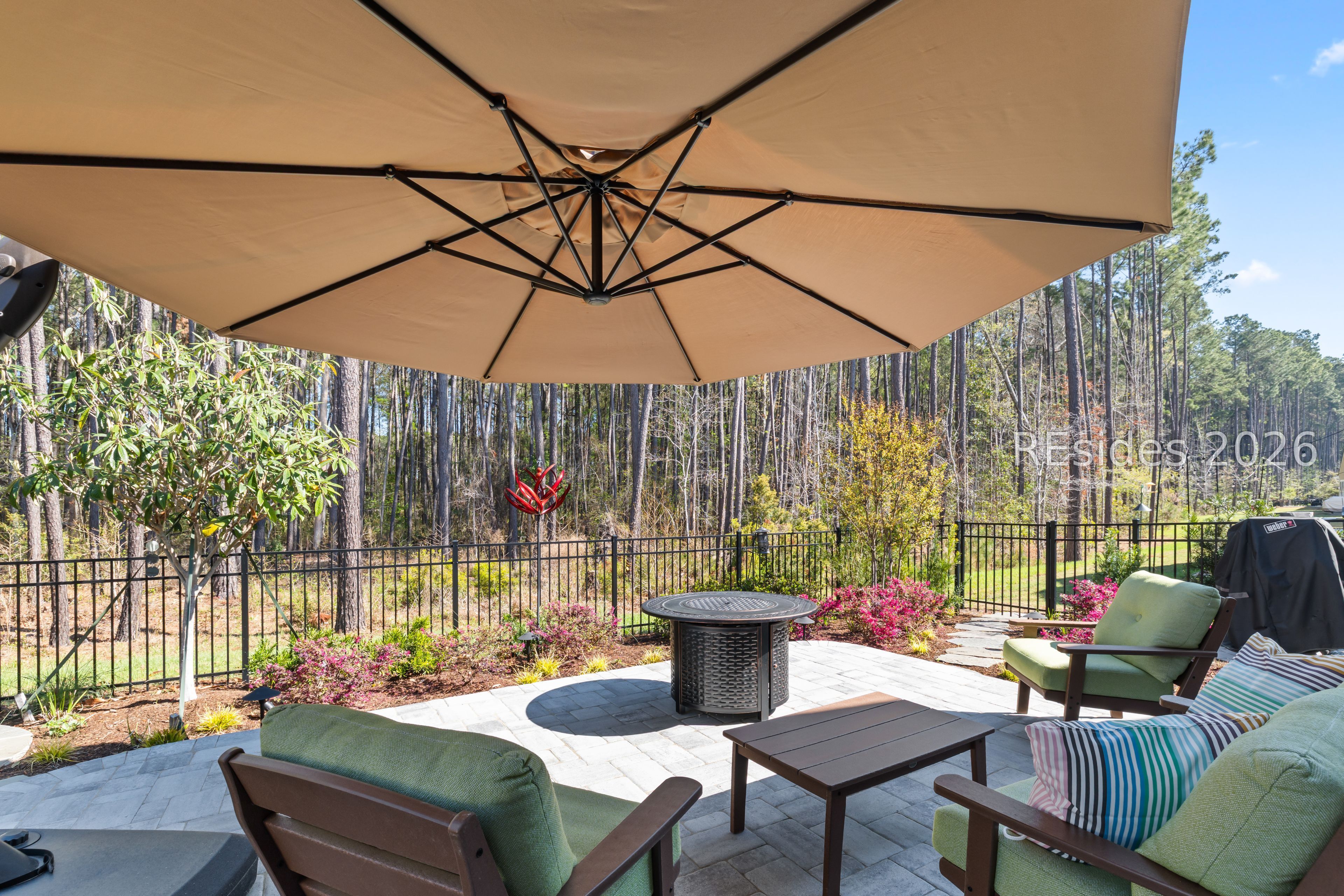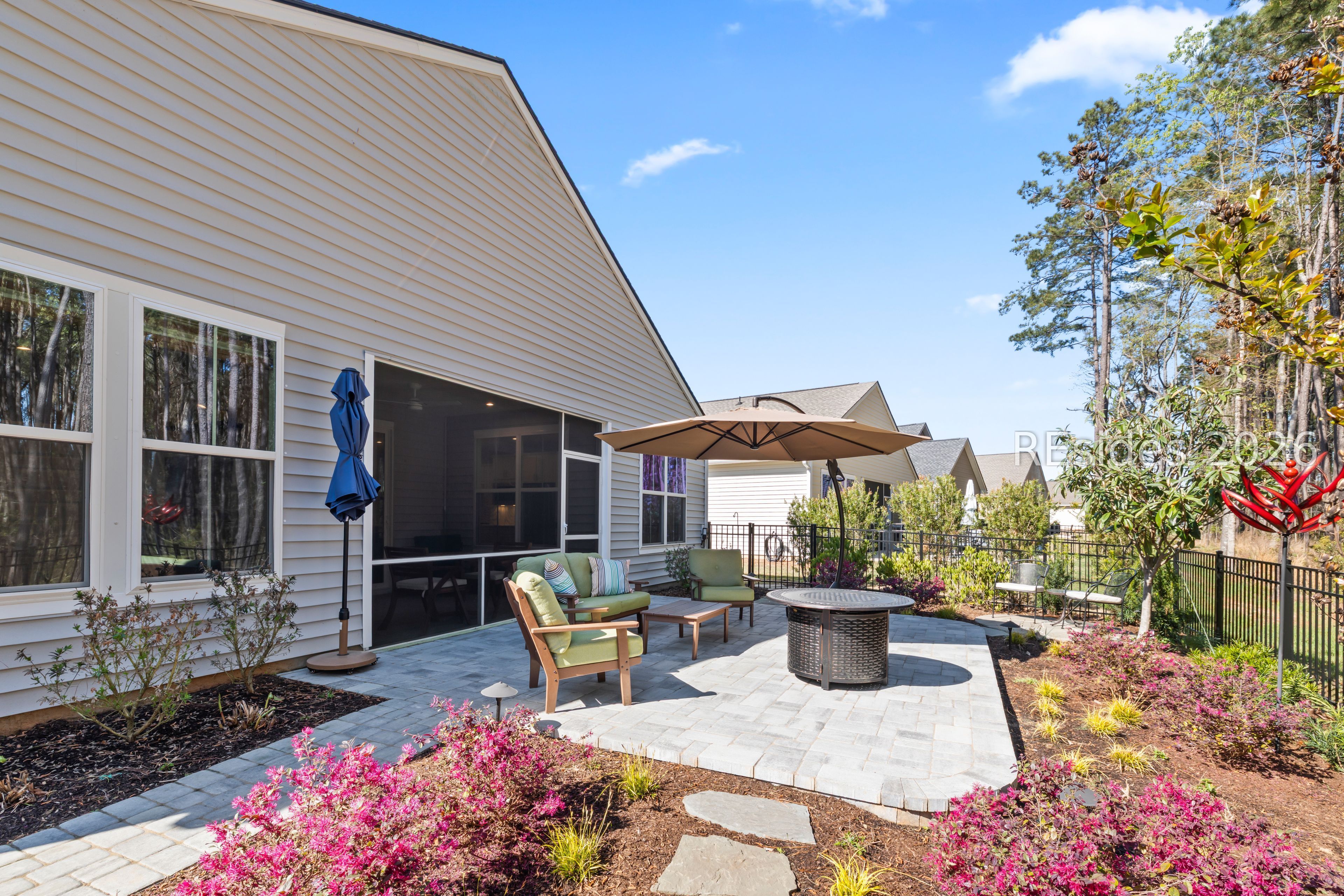 Located in Four Seasons at Carolina Oaks, a beautifully designed 55+ home brings together modern style, privacy, and the kind of everyday ease that makes Bluffton living so appealing. From the open main level to the screened porch overlooking wooded views, every space feels intentional & inviting. The Ibiza Loft floor plan offers a thoughtful layout designed for both comfort and entertaining. The home features 3 bedrooms, 3 bathrooms, a versatile loft, and a dedicated office, all within an open-concept design filled with natural light and soaring ceilings. The primary suite, guest suite, and office are conveniently located on the main level, providing the ease of single-level living while still offering additional space upstairs for guests. The bright white kitchen with island seating anchors the home. While a dedicated office, indoor-outdoor flow, and a thoughtfully designed backyard create the perfect balance of comfort and functionality. Luxury vinyl plank flooring runs throughout the main living spaces, complemented by tile bathrooms for a clean and durable design. Outdoor living is a highlight with a screened porch and extended decking overlooking a 17 x 19 paver patio and 6-foot flagstone patio, creating the perfect setting for relaxing or entertaining. The professionally landscaped yard is fully fenced and designed for privacy. Complete with over $50K in upgrades, including an auto-start whole-house generator and whole-house water filtration system, offering added comfort and peace of mind. Beyond your front door enjoy resort-style amenities including a clubhouse, fitness center, pool, pickleball, tennis courts, walking trails, and a vibrant social calendar. Located just minutes from Old Town Bluffton, Hilton Head Island beaches, golf, dining, and shopping, this home offers the perfect opportunity to enjoy the best of the Lowcountry lifestyle.
