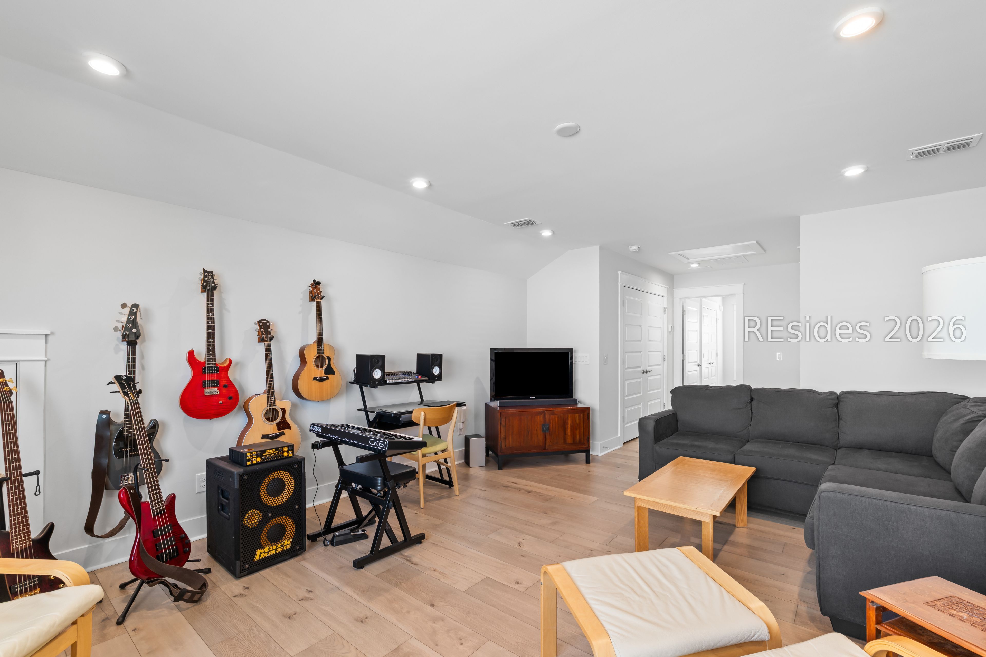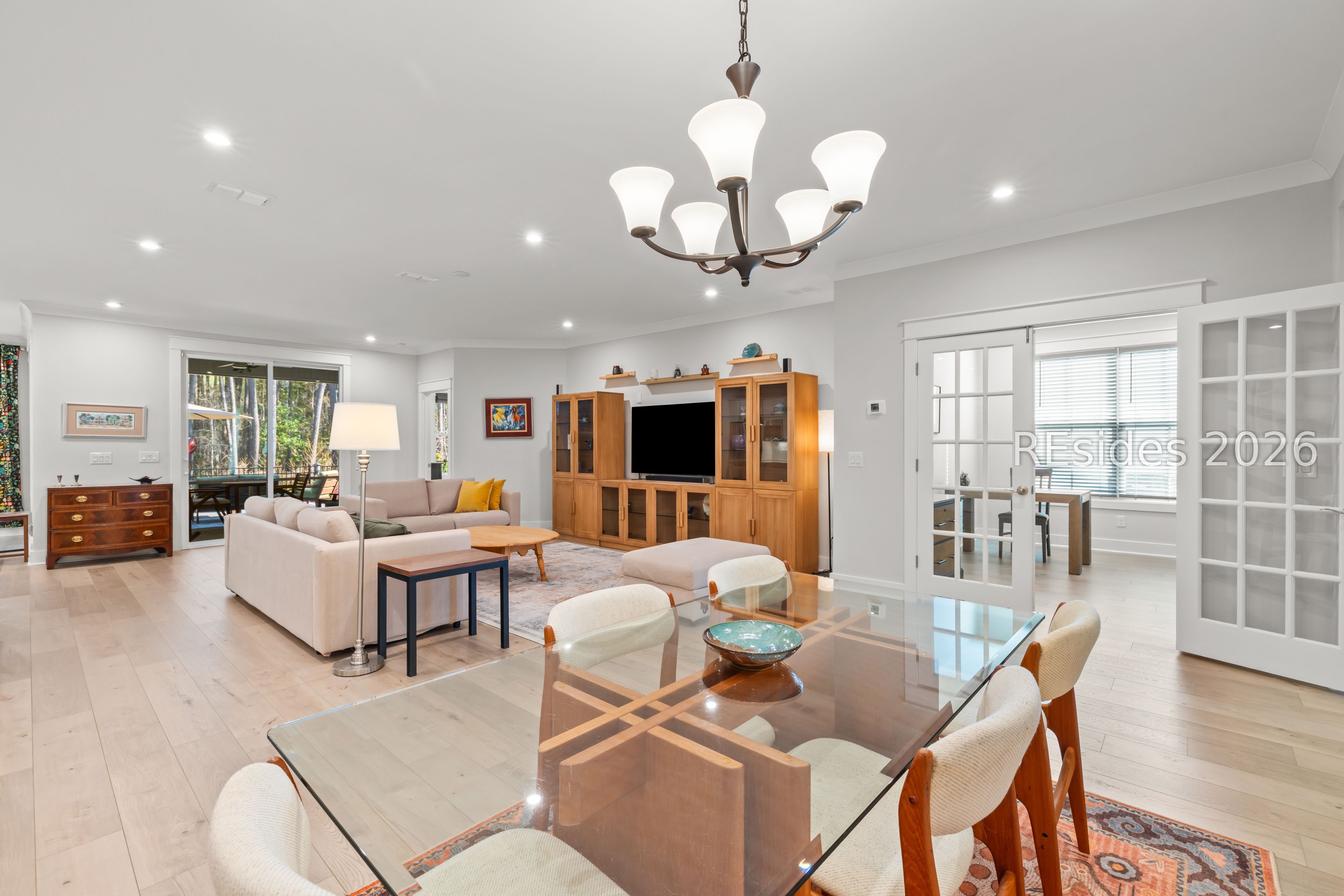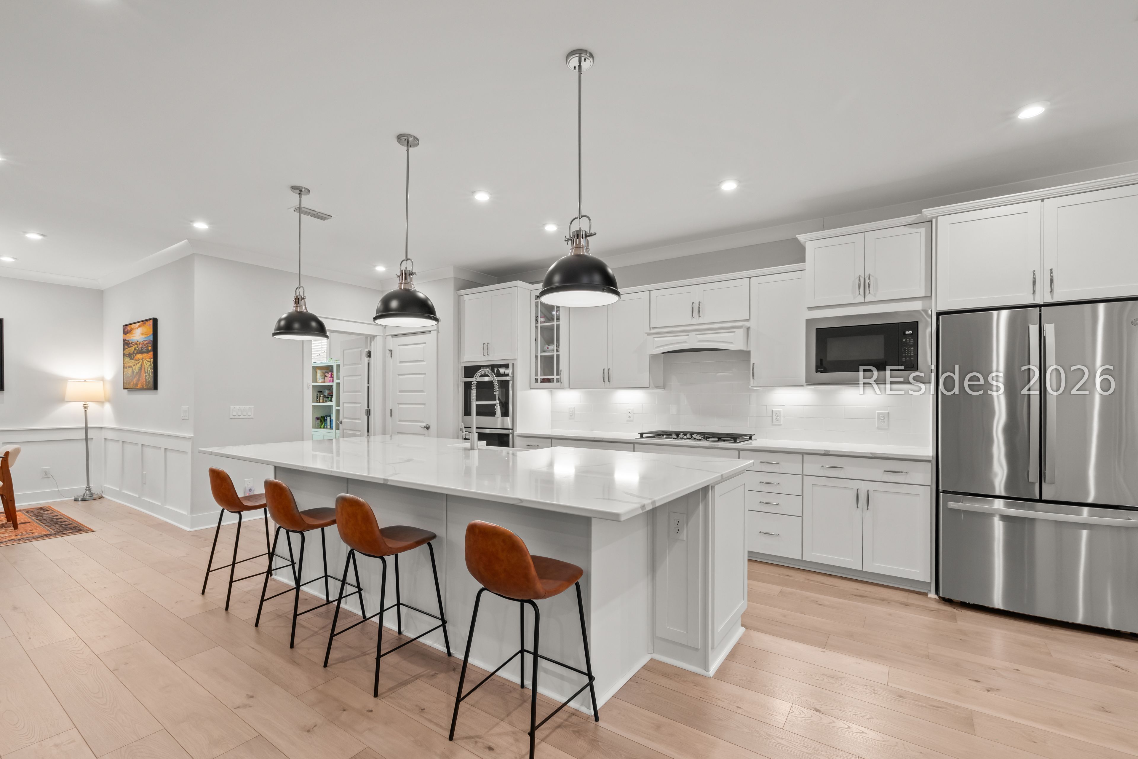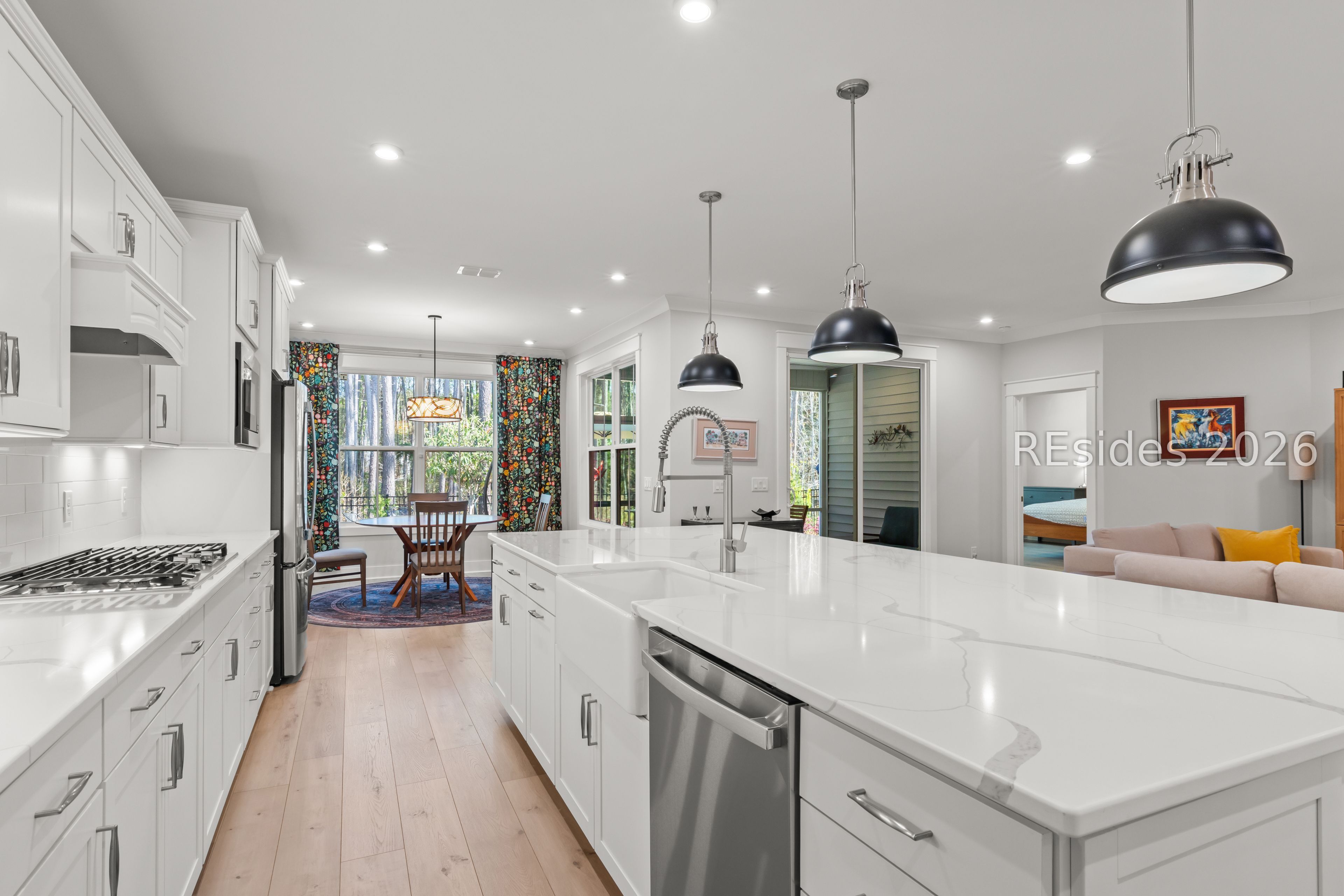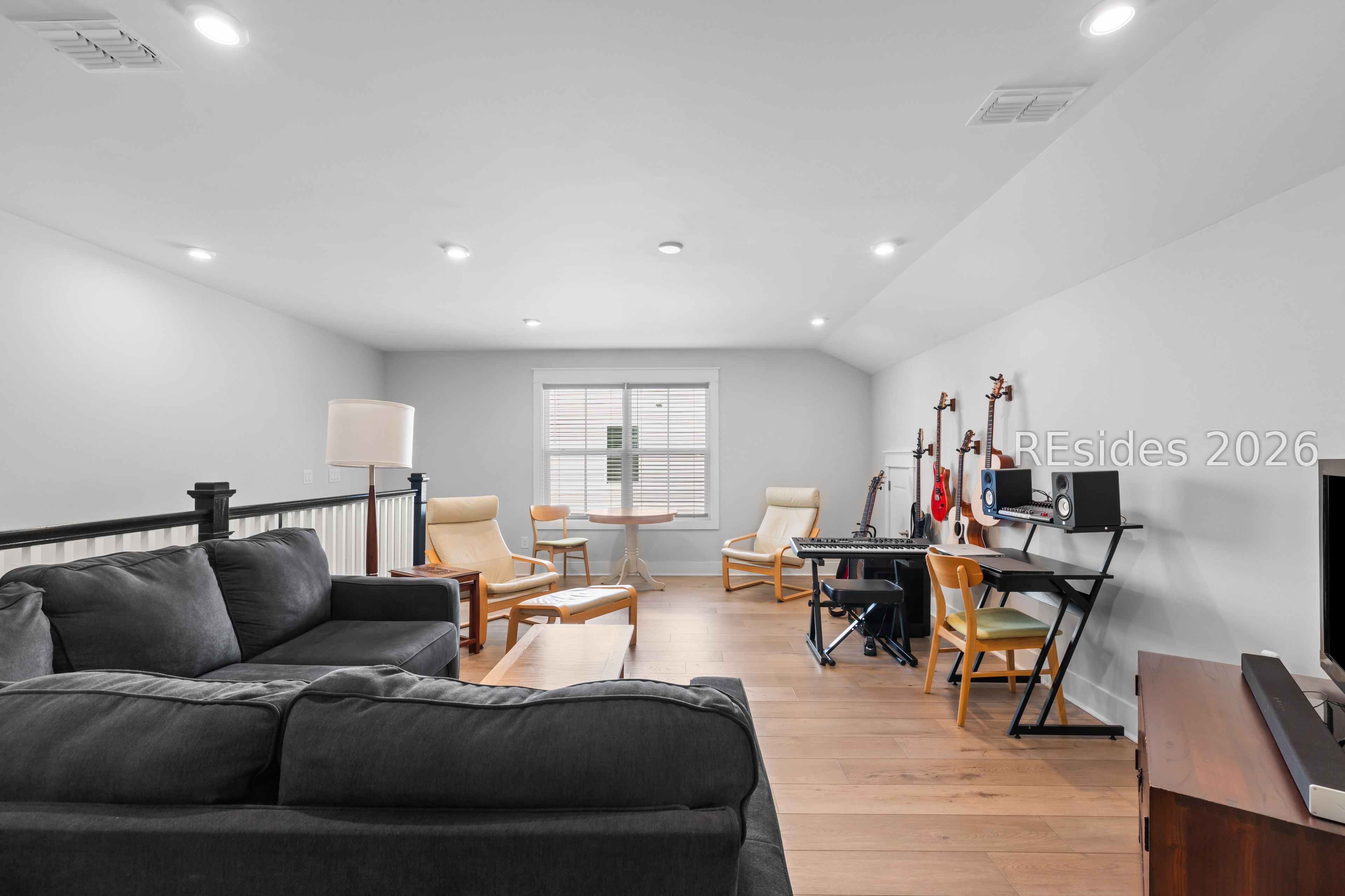 Located in Four Seasons at Carolina Oaks, a beautifully designed 55+ home brings together modern style, privacy, and the kind of everyday ease that makes Bluffton living so appealing. From the open main level to the screened porch overlooking wooded views, every space feels intentional & inviting. The Ibiza Loft floor plan offers a thoughtful layout designed for both comfort and entertaining. The home features 3 bedrooms, 3 bathrooms, a versatile loft, and a dedicated office, all within an open-concept design filled with natural light and soaring ceilings. The primary suite, guest suite, and office are conveniently located on the main level, providing the ease of single-level living while still offering additional space upstairs for guests. The bright white kitchen with island seating anchors the home. While a dedicated office, indoor-outdoor flow, and a thoughtfully designed backyard create the perfect balance of comfort and functionality. Luxury vinyl plank flooring runs throughout the main living spaces, complemented by tile bathrooms for a clean and durable design. Outdoor living is a highlight with a screened porch and extended decking overlooking a 17 x 19 paver patio and 6-foot flagstone patio, creating the perfect setting for relaxing or entertaining. The professionally landscaped yard is fully fenced and designed for privacy. Complete with over $50K in upgrades, including an auto-start whole-house generator and whole-house water filtration system, offering added comfort and peace of mind. Beyond your front door enjoy resort-style amenities including a clubhouse, fitness center, pool, pickleball, tennis courts, walking trails, and a vibrant social calendar. Located just minutes from Old Town Bluffton, Hilton Head Island beaches, golf, dining, and shopping, this home offers the perfect opportunity to enjoy the best of the Lowcountry lifestyle.