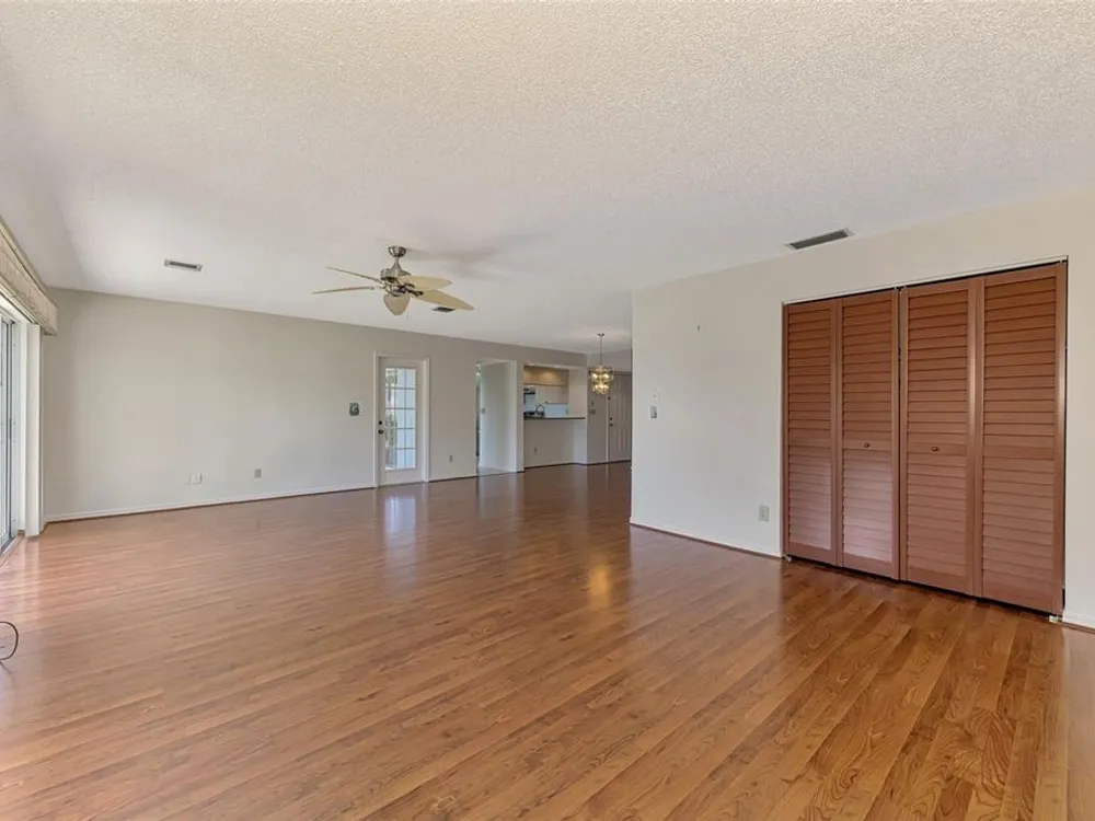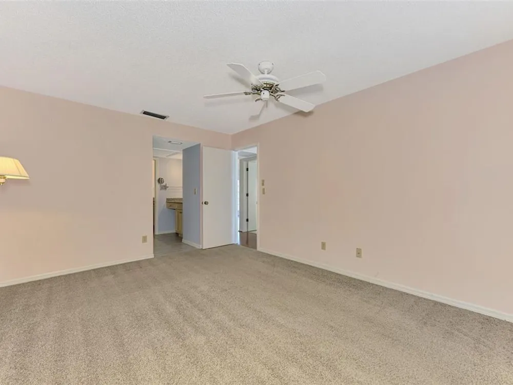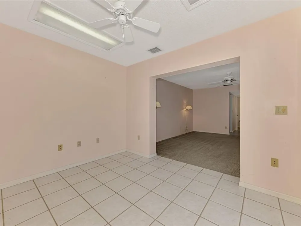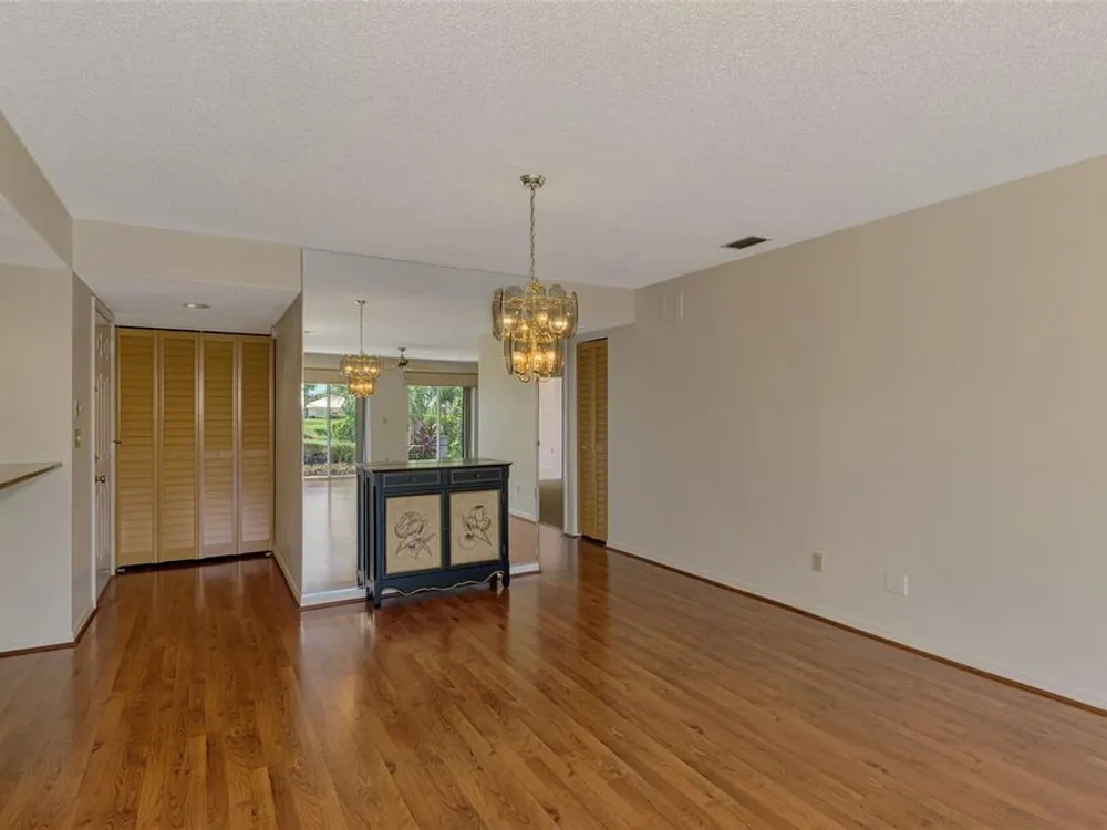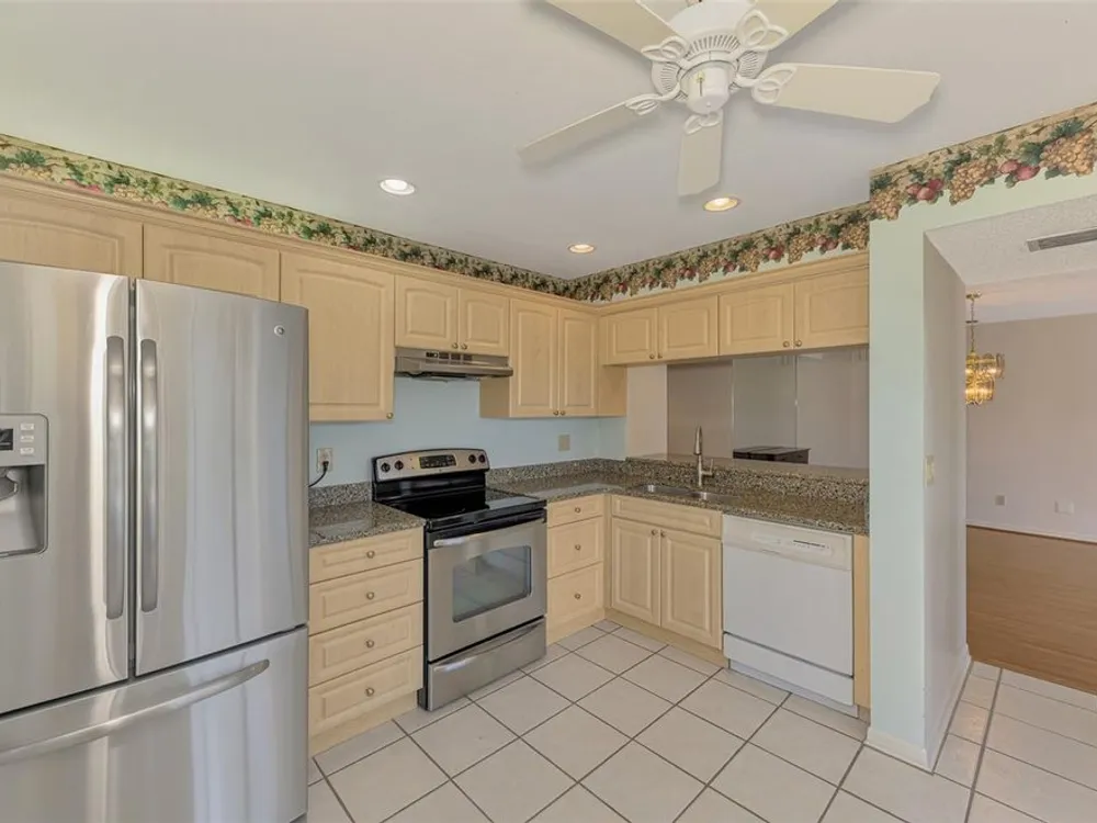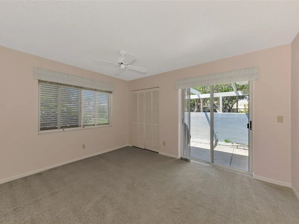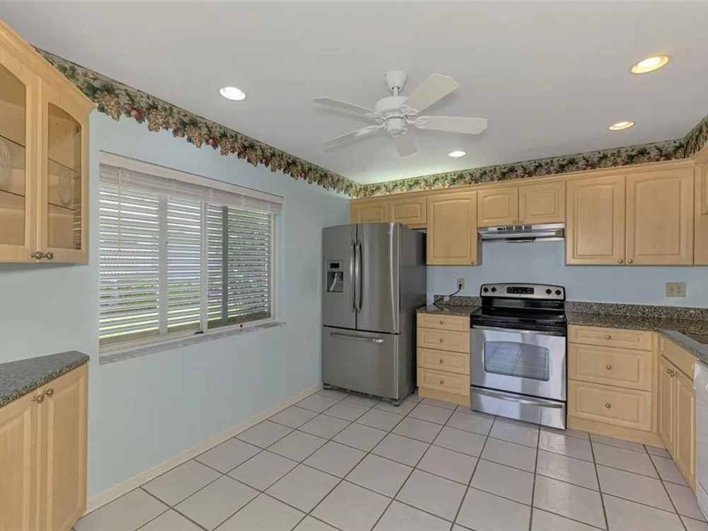 Stunning waterfront views in this villa home located in the desirable Augusta Villas community! Not one but two lake views and the wonderful planation golf course just beyond makes this home among the best locations and best views in all of August Villas. This 3 bedroom, 2 bathroom home is currently setup with one of the bedrooms extending the living area, giving you additional lighting and living space. The primary bedroom is unique featuring an additional den/office, or flex space. This space serves as an added benefit by connecting the previously detached laundry room directly to the interior of the home for added convenience. The primary bedroom features an updated en-suite bath with dual vanities and sinks, a walk-in roman style shower, plus a large walk-in closet. Updated kitchen with granite counters and stainless-steel fridge, hood, and oven. Fantastic water views from your screened lanai area, and from the main living area. Unique front gated porch area with pergola gives you lots of additional outdoor living space. Conveniently located close to Wellen Park, Historic Downtown Venice, and Gulf Coast Beaches. The Augusta Villas community features two community pools, included lawn maintenance, and exterior home maintenance including roof replacement and cleaning. Optional golf, social, or fitness membership to the Plantation Golf and Country Club just down the road. Come and see this wonderful home today!