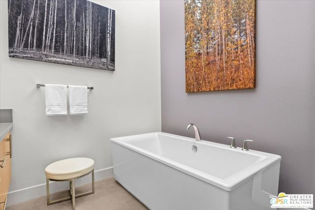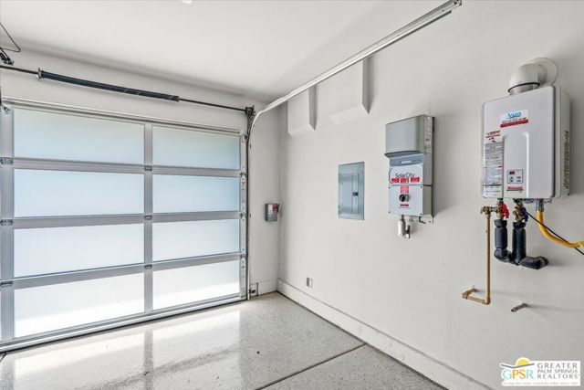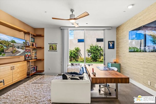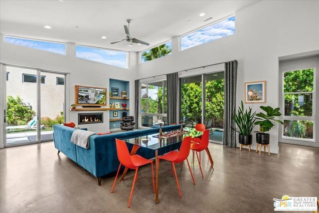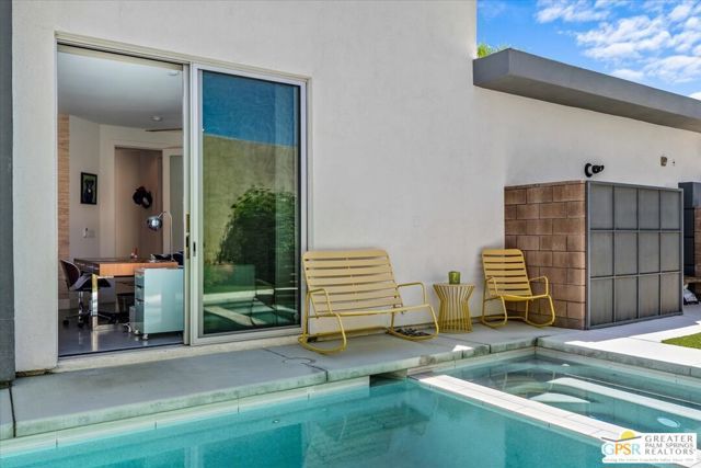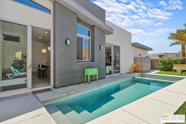 Discover the ultimate desert retreat at 4201 Amber Lane, Palm Springs in the gated Escena community! This modern oasis boasts 4 bedrooms and 3 bathrooms across a spacious 2,245 square feet of open-plan living. Step inside and let the sleek, concrete floors guide you through a home that's as stylish as it is functional. The expansive windows and sliders offer stunning pool views, filling every corner with natural light and the perfect indoor/outdoor living. The gourmet kitchen is a culinary dream, featuring a double oven, large island, pantry and ample space for entertaining. With a private saltwater pool and spa just steps away, every day is a vacation. Whether you're lounging poolside or hosting a casual get-together, the private outdoor space is your personal paradise with fruit trees and easy to maintain turf. Need a flexible space? The casita is perfect for guests or as a creative studio. Plus, with owned solar panels and a water softening system, eco-friendly living is at your fingertips. The 2 car garage has "terrazzo" epoxy floors and plenty of storage space. Some furnishings available outside of Escrow. The Escena community offers golf, a beautiful clubhouse with onsite restaurant and guard gated entry. At Amber Lane, luxury living meets modern design, offering the perfect blend of comfort and style for the discerning homeowner. Dive into your dream home today!