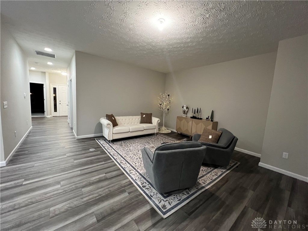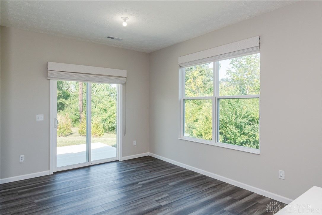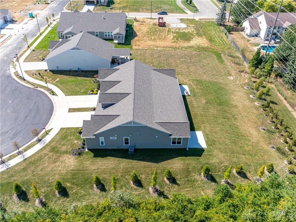 Welcome to Cornerstone Villas in one of Sugarcreek Townships most desirable communities. This nearly new Hudson model offers upscale single-level living with exceptional privacy, so many premium upgrades throughout, and it sits on a Premium Lot. You will love the lush landscaping, mature trees, and no rear or east neighbors. Such a peaceful retreat that is close to everything. Step inside to discover 1,773 sq. ft. of open, light-filled space, featuring 3 bedrooms, 2 full baths, and an oversized 2-car garage with storage space. The layout is designed for effortless living and entertaining, with a bright great room, large dining area, and sunlit Office/Library/Sitting room, that flows seamlessly to an extended rear patio, perfect for morning coffee or evening gatherings. The chef's kitchen shines with Corian countertops, upgraded custom cabinetry, and new stainless steel appliances. There's a new water softener system already in place. Every detail was thoughtfully chosen, from wider glass interior doors to custom window treatments and designer lighting. The private owners suite feels like a retreat with its lighted tray ceiling, attached bath with dual vanities, and a oversized tiled walk-in shower and built-in bench. Enjoy low-maintenance living, the HOA covers lawn care, landscaping, fertilization, mulching, and snow removal. So you can spend your time enjoying the community's walking trails, parks, and gathering spaces. Located in the Bellbrook-Sugarcreek School District, just minutes from The Greene, WPAFB, and major highways (I-675, I-35, and I-75), this home combines serenity with unbeatable convenience. No waiting for new construction, this upgraded Hudson is better than brand new, move-in ready, and truly one of a kind.