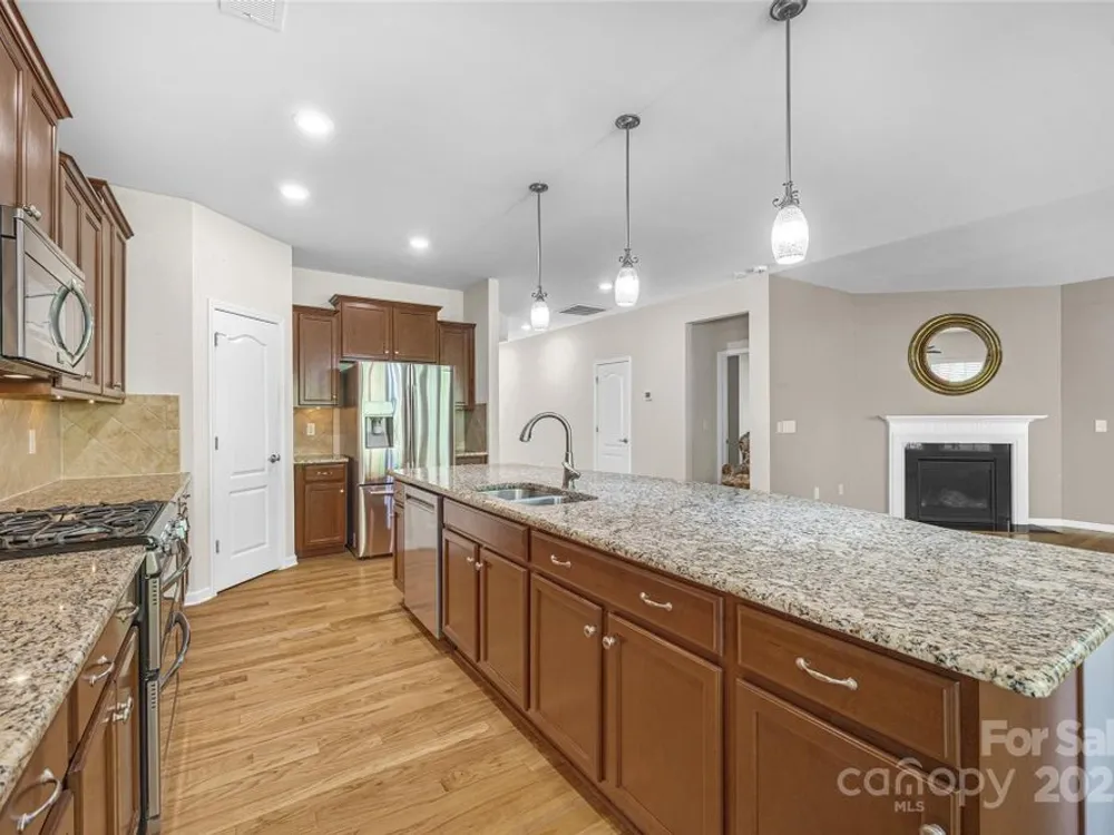 Charming single-level three-bedroom, two-bath home in the sought-after Carolina Reserve community of Indian Land. An open floor plan connects the living, dining, and kitchen areas, creating a bright and welcoming layout ideal for everyday living or entertaining. The kitchen features a large island, modern appliances, and generous cabinetry. The primary suite includes a walk-in closet and private bath, while the additional bedrooms offer flexibility for guests, office space, or hobbies. A spacious backyard provides room to relax, dine outdoors, or create your ideal outdoor setup. Sidewalks throughout the neighborhood make it easy to enjoy a stroll or access the community amenities. Carolina Reserve offers a clubhouse, pool, fitness center, dog park, playground, and social activities. Conveniently located near new shopping and dining options along Highway 521, including Costco, Lowes Foods, and Target. Quick access to major routes adds to the appeal. This home offers comfortable living in a prime location with amenities close at hand.
