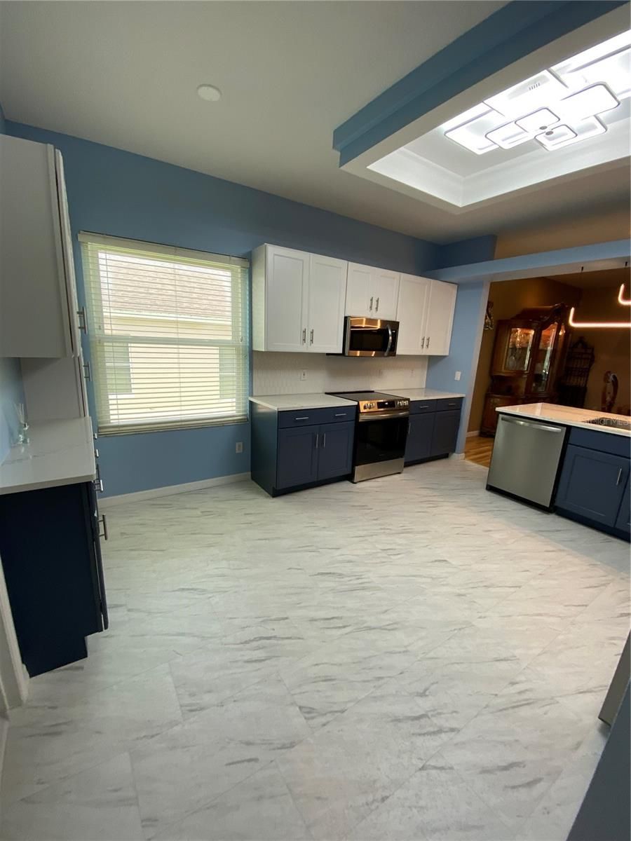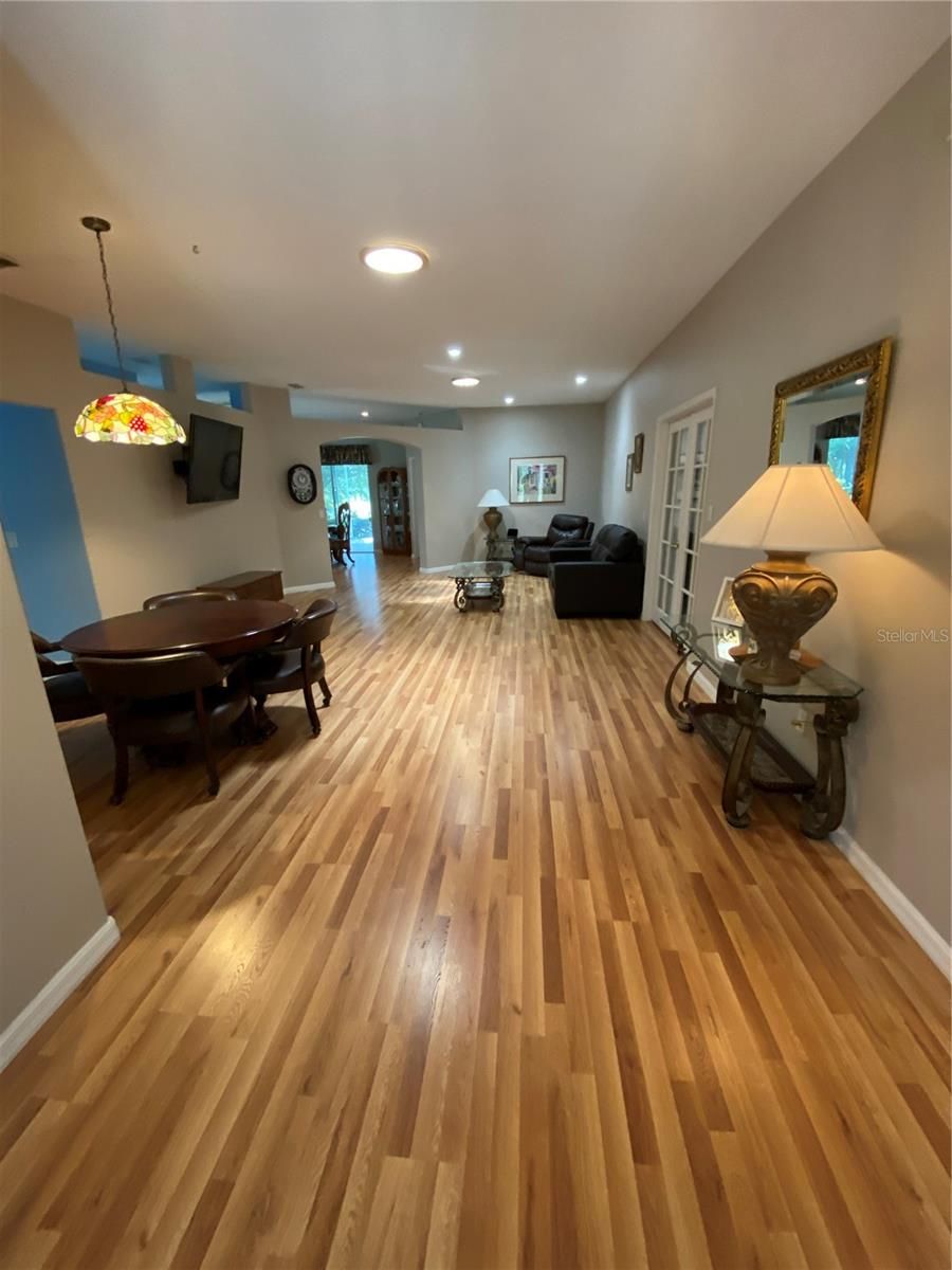 Beautiful St Regis model located on the Main Golf course. This is a very well maintained home, Roof replaced 2016, Newer A/C -Heating system, New Windows. Newly remodeled Kitchen with all Brand New Stainless steel Appliances & Master Bathroom was also remodeled, New Garage Door, New Rear Patio pavers, as well as the driveway & walk. Freshly painted 2023, New Engineered wood flooring spill proof throughout. New luxury Vinyl Flooring in Kitchen. 2 solar tubes were installed in the Livingroom / Dining area and 1 was installed in the Master Bathroom. Kings Ridge is 55+ gated community, with the spacious Club House with 3 heated pools, spas. There are many activities like tennis, pickle ball. & shuffleboard. There are also many clubs to choose from to join. You can golf cart your way to the nearby Plaza for dining and shopping.