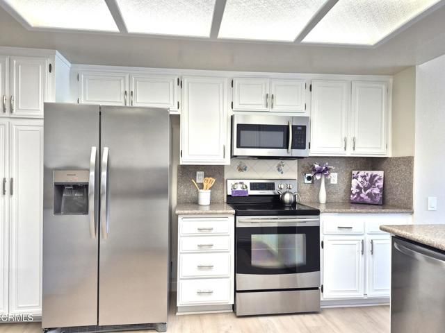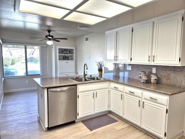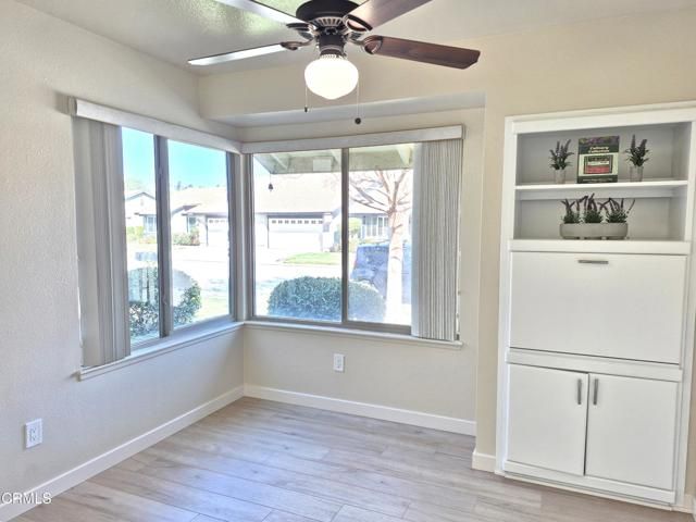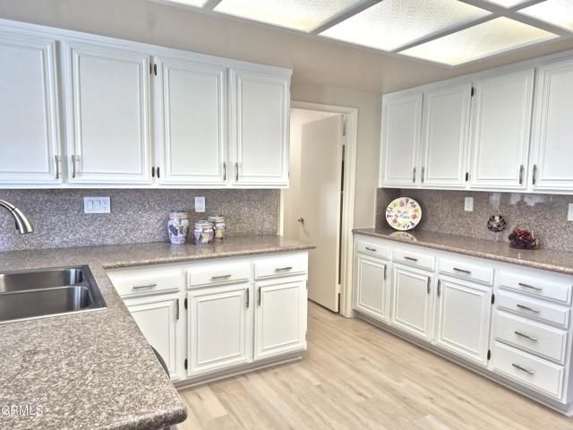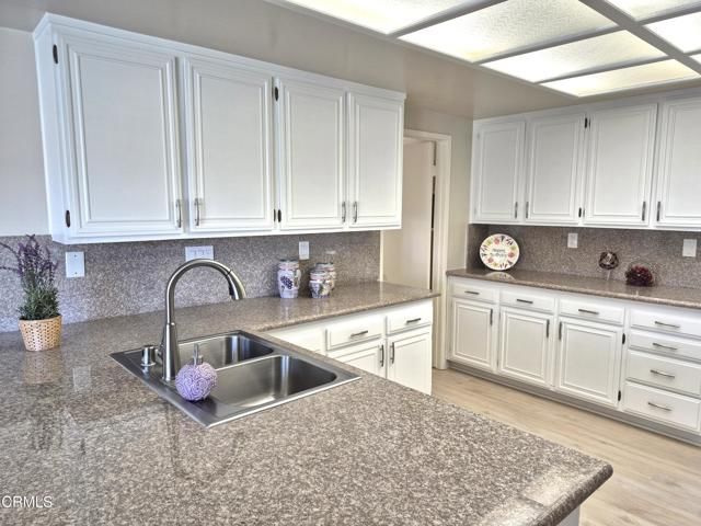 Welcome to one of the most desirable locations in Leisure Village, offering breathtaking panoramic views of the surrounding hills and greenbelt with no neighbors behind--a rare and peaceful setting you'll enjoy every single day.This highly sought-after Valencia model offers nearly 1,700 sq ft of comfortable living space with a 2-car garage and one of the largest kitchens of all 16 Leisure Village models. Recently updated, the home features new vinyl plank flooring, fresh neutral paint, updated lighting, and granite countertops, along with stainless steel appliances and a bright eat-in kitchen perfect for casual dining. The home also features an open concept layout with spacious living and dining rooms--perfect for entertaining.The spacious floor plan includes an enormous primary suite with a walk-in closet and dual sink areas, creating a private retreat. The second bedroom is generously sized with wainscoting, crown molding, and a built-in closet, making it ideal for guests or a stylish home office. The hall bathroom has been upgraded with a walk-in shower and glass doors. Additional features include an inside laundry room with cabinets and built-in storage in the garage.Step outside to your private covered patio, where the true magic happens--unobstructed, sweeping views of rolling hills and lush greenbelt provide the perfect backdrop for morning coffee or evening relaxation.Located in the guard-gated 55+ community of Leisure Village, residents enjoy an exceptional lifestyle with amenities including golf, pool & spa, fitness center, tennis, pickleball, billiards, woodshop, ceramics, and countless clubs and activities. The HOA covers water, sewer, trash, cable TV, internet, landscaping, and exterior maintenance--making life here easy and enjoyable.This is a rare opportunity to own a view property in one of Camarillo's most sought-after retirement communities--don't miss it!