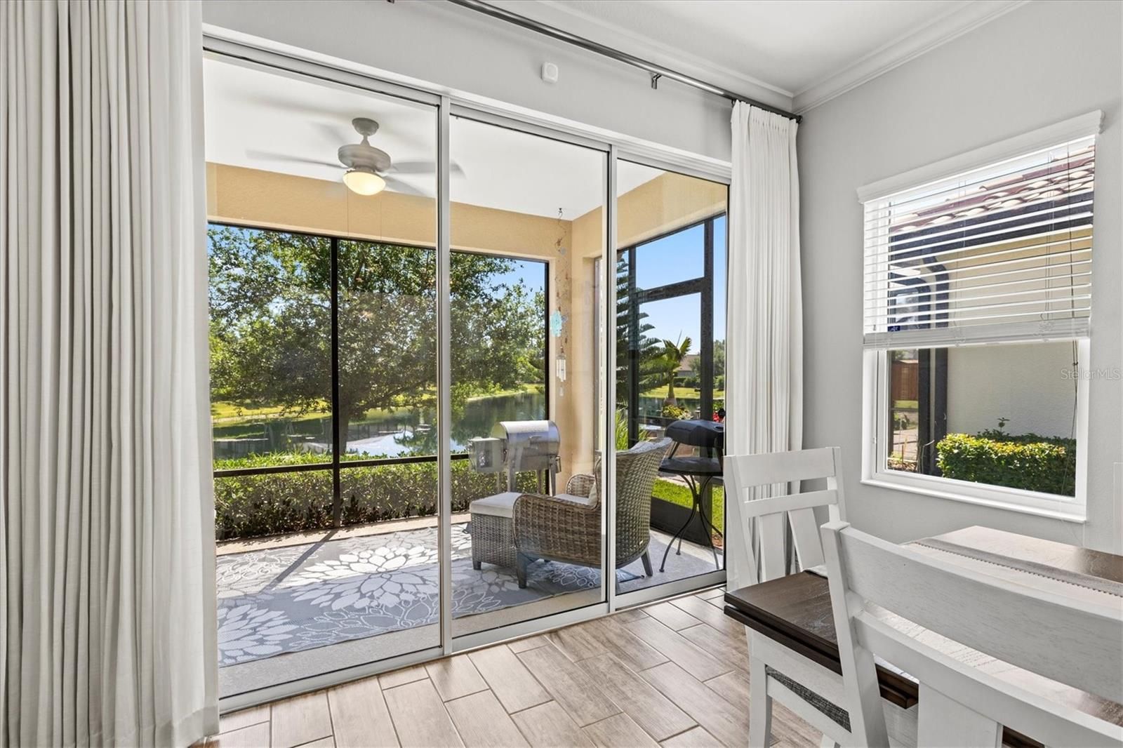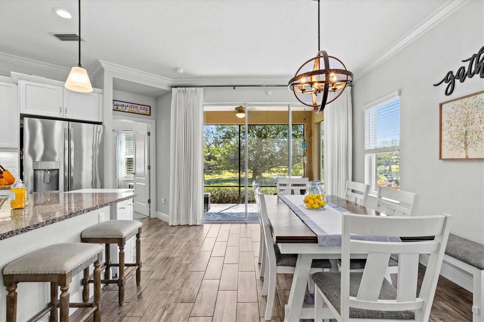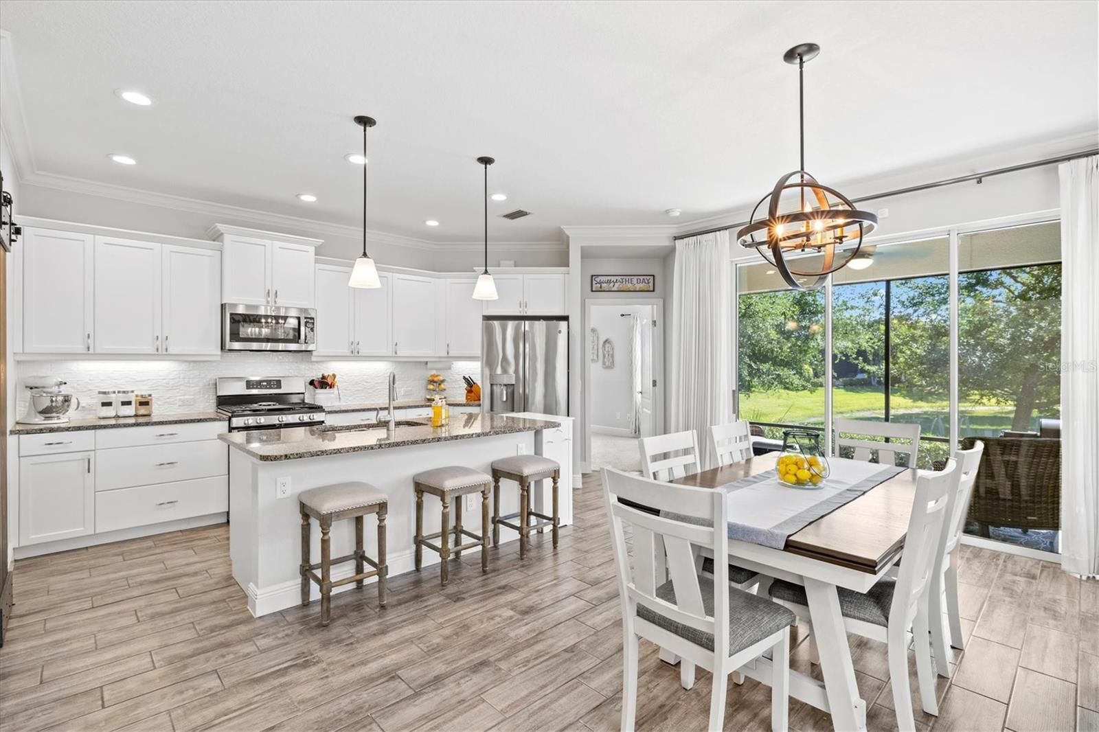 NO CDD FEE! This beautifully maintained 3-bedroom, 2-bath Neal Patriot model offers 1,682 sq ft of thoughtfully designed living space with serene pond views and enhanced backyard landscaping for added privacy. The open-concept layout features a stylish kitchen with granite countertops, gas stove, stainless steel appliances, and a versatile microwave convection air fryer. A custom farm-style pantry door with built-in shelving adds both charm and functionality. The spacious owner’s suite includes custom closet shelving, providing smart storage solutions. Enjoy peaceful mornings and evenings on the water-view lanai, perfect for relaxing or entertaining. This home combines comfort, upgrades, and value in a sought-after Indigo community. Enjoy exceptional resort-style living with access to a beautifully appointed clubhouse, sparkling pool, fitness center, and pickleball courts. Ideally situated just minutes from top shopping, premier golf courses, dining, and major roadways for ultimate convenience. Make this home yours today!