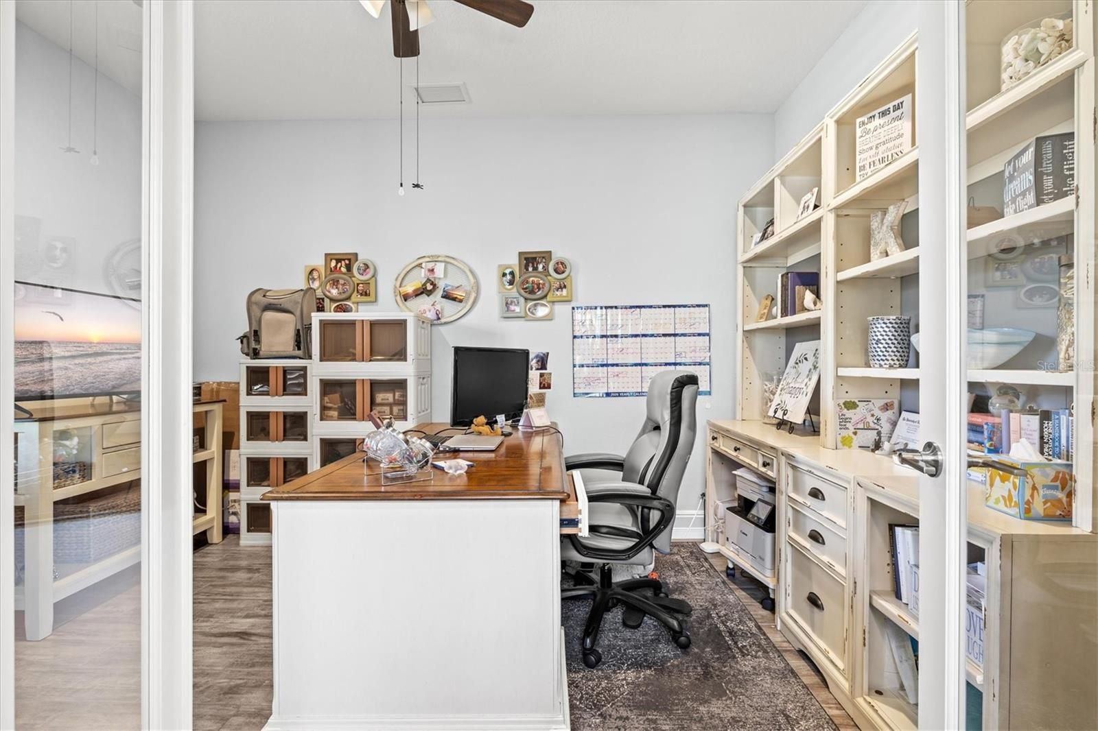 - Ceiling Fan(s), Living/Dining Room, Open Floorplan, Main Level Primary, Solid Surface Counters, Thermostat, Walk-In Closet(s)