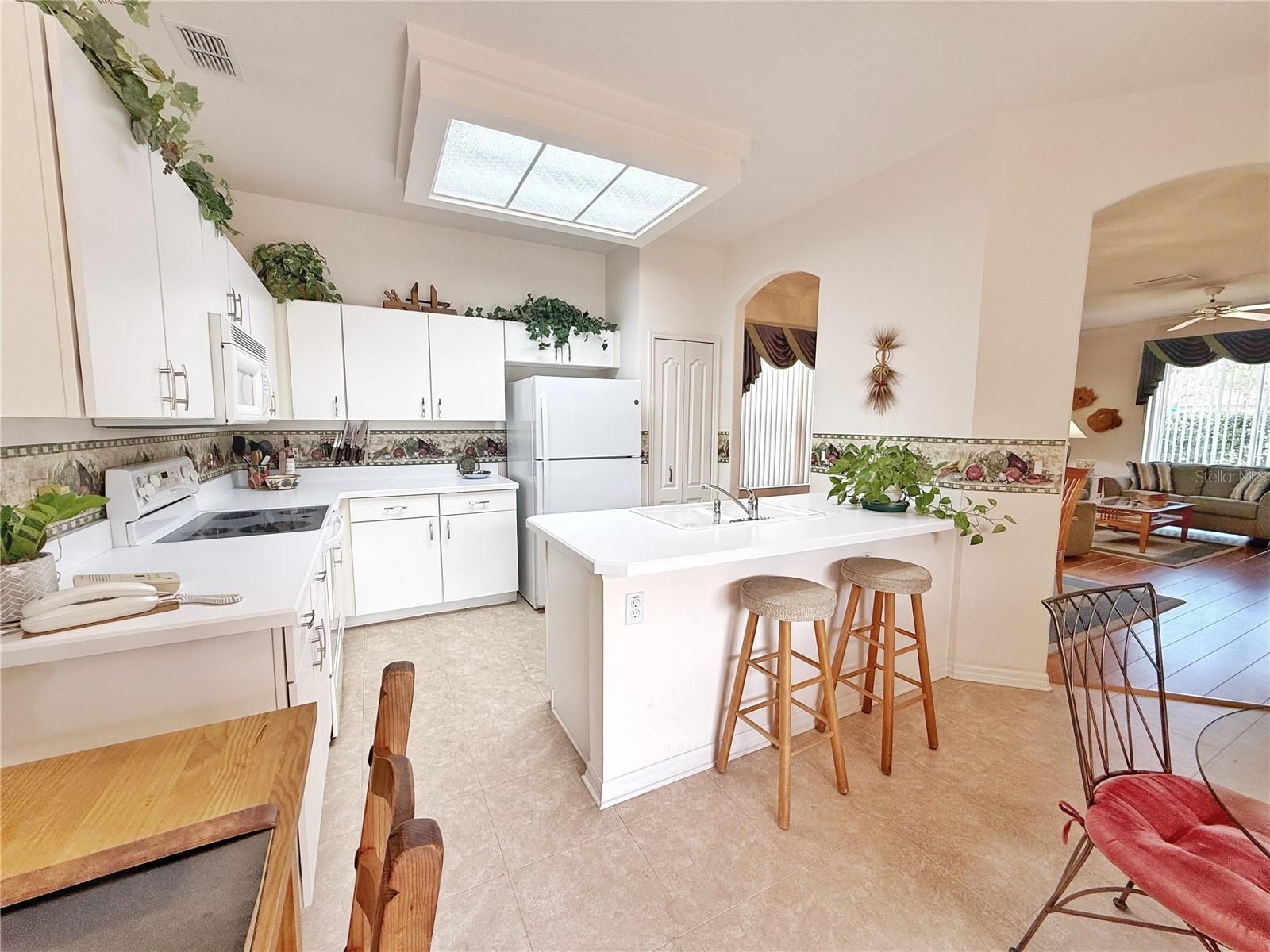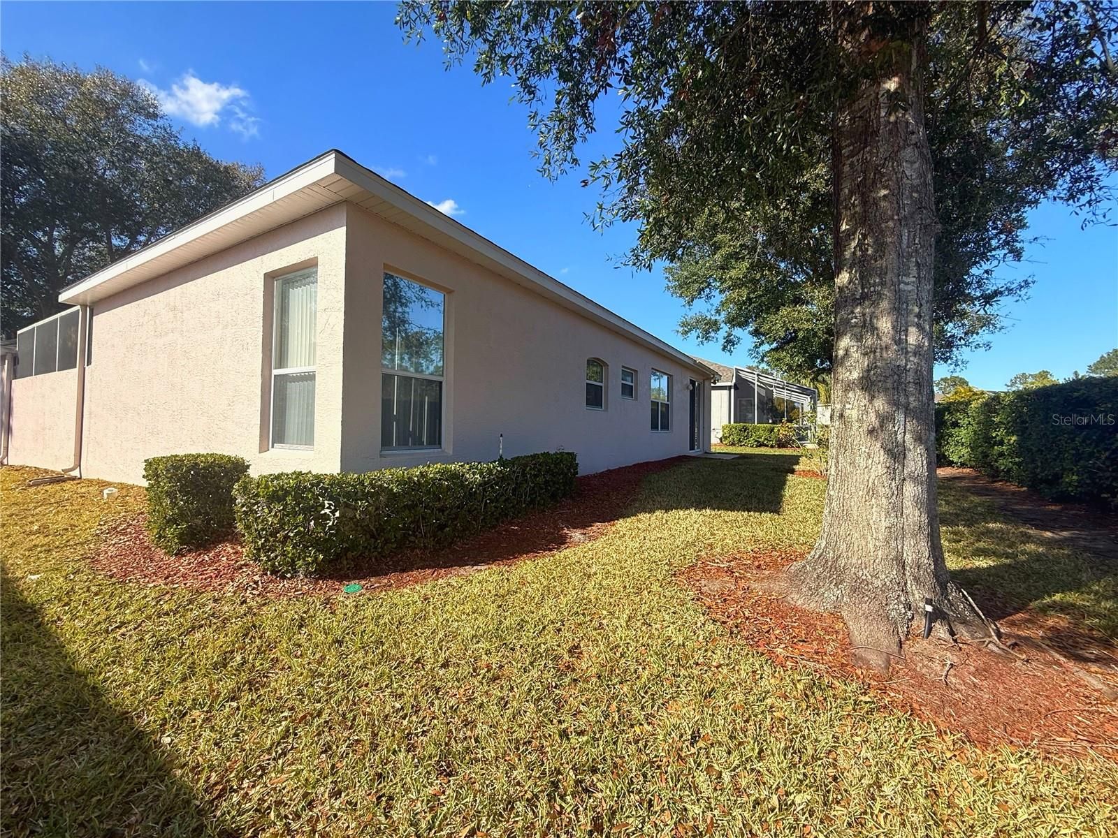 This St. Ives floor plan with screened in LANDSCAPED courtyard located in Kings Ridge a 55+ community is the perfect place to entertain gusts, family or relax in the Amazing courtyard. Welcome guests through the Front door with glass side windows into the covered Entry and Screened in Courtyard with access from the Kitchen, Primary Bedroom, Bedroom 2 and Bathroom 2. The courtyard has paths to wonder, a decorative fountain pond and bench though out to sit and enjoy. The Main house entry has a glass side window, ceramic tile flooring and a view of the OPEN floor plan. The Living room has CROWN molding, laminate flooring and sliding glass doors to the rear yard. The Dining room features laminate flooring, crown molding, and a view of the Living room and Kitchen. The Kitchen has ceramic tile flooring, BAR top seating, a closet pantry, decorative shelf and EAT in space or dinette. There are also sliding glass doors onto the SCREENED in courtyard and the Laundry is located off the Kitchen. The Primary Bedroom is located in the Main house with a EN SUITE bathroom, a walk in closet, decorative shelf and sliding glass doors onto the screened in courtyard. The Primary Bathroom has ceramic tile flooring, DUAL sinks, shower with separate GARDEN tub and a linen closet. There is a HALF bath in the Main house with ceramic tile flooring and a POCKET door. There is a Den/Study or Bedroom 3 located in the Main house with doors for privacy. Bedroom 2 is off the Front entrance separate from the Main house but still all connected has a EN-SUITE bathroom, a walk in closet and sliding glass doors onto the screened in courtyard. The en-suite bathroom has ceramic tile flooring, a tub/shower combo and a separate door onto the courtyard. The ROOF is 2023, AC is 2022. There are GUTTERS on the house, garage door springs replaced on 2022. The Homeowner dues include a 24 hour guard gated golf community, escrow reserves, basic cable, complete lawn care including watering, fertilization & mulching & use of the multi-million dollar clubhouse with its 3 pools, 2 fitness centers & tennis, basketball, shuffleboard, pickle ball & bocce courts. The grand ballroom hosts plays, dances & movies while there are craft, billiard, computer & card rooms along with a library. If classes are what you are looking for, Kings Ridge has them all from floral arranging to investing; but if travel is your desire, planned trips are available. You can even drive your golf cart to food shopping, hair, nail or doctor appointments, several banks & restaurants. If this is not enough, the exterior of your home is painted every 5-6 years. Kings Ridge also has an 18 hole Championship Course & 18 hole Executive Course.
