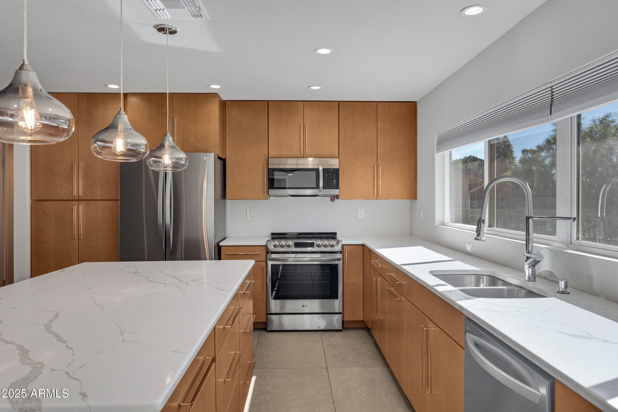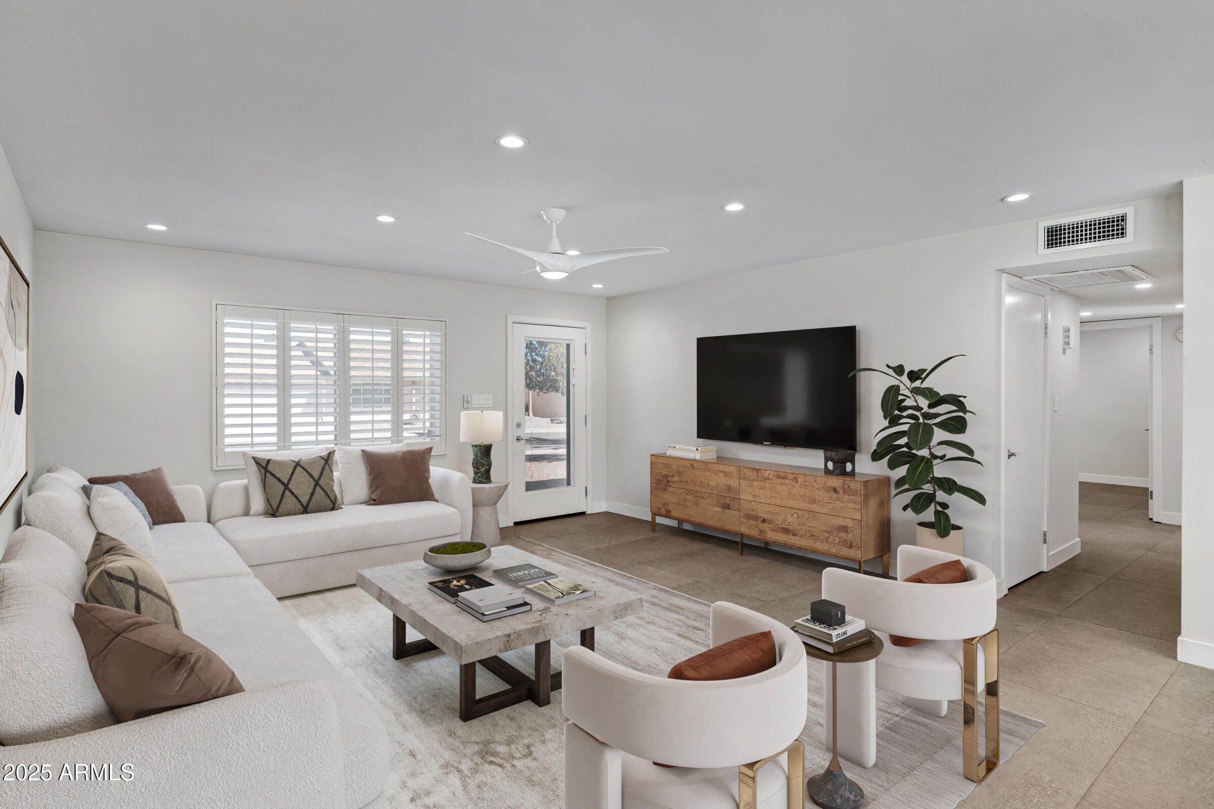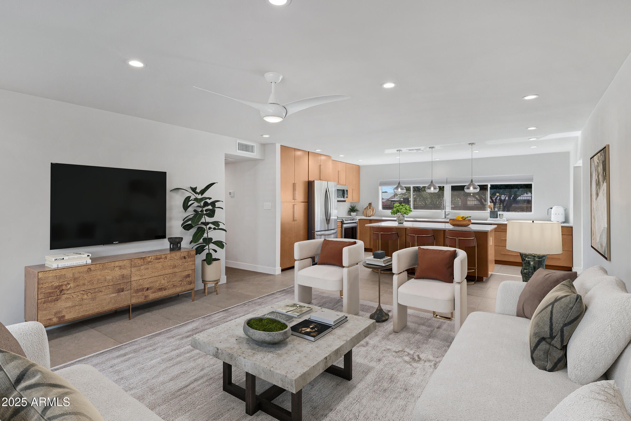Completely transformed with over $130K in high-end improvements, this 3 bed / 2 bath home perfectly blends modern design, quality craftsmanship, and thoughtful upgrades in a fantastic Ahwatukee Adult neighborhood. Step inside to an open, light-filled layout designed for both style and comfort. The remodeled kitchen steals the show with custom cabinetry, quartz countertops, stainless steel appliances, and designer lighting that ties the space together beautifully. Every detail has been elevated, from the fully renovated bathrooms featuring elegant fixtures, refinished tub and shower, and sleek finishes, to the new flooring and high-quality tilework throughout. With upgraded electrical, lighting, windows, and a new HVAC system, this home truly feels brand new. The spacious primary suite offers abundant natural light, a custom Classy Closet system, and a spa-inspired ensuite with a walk-in shower. Two additional bedrooms provide plenty of space for family, guests, or a home office. Outside, your private backyard retreat awaits, complete with a patio and grassy area perfect for entertaining or relaxing evenings under the Arizona sky. Modern, move-in ready, and minutes from everything Ahwatukee has to offer, this is the one you have been waiting for.