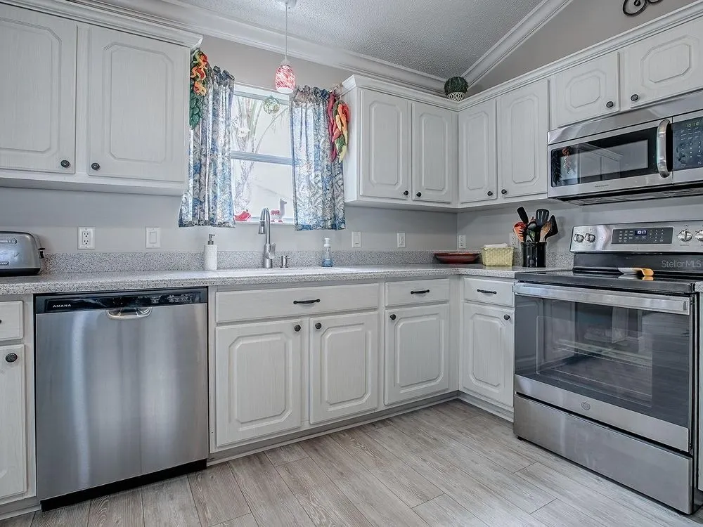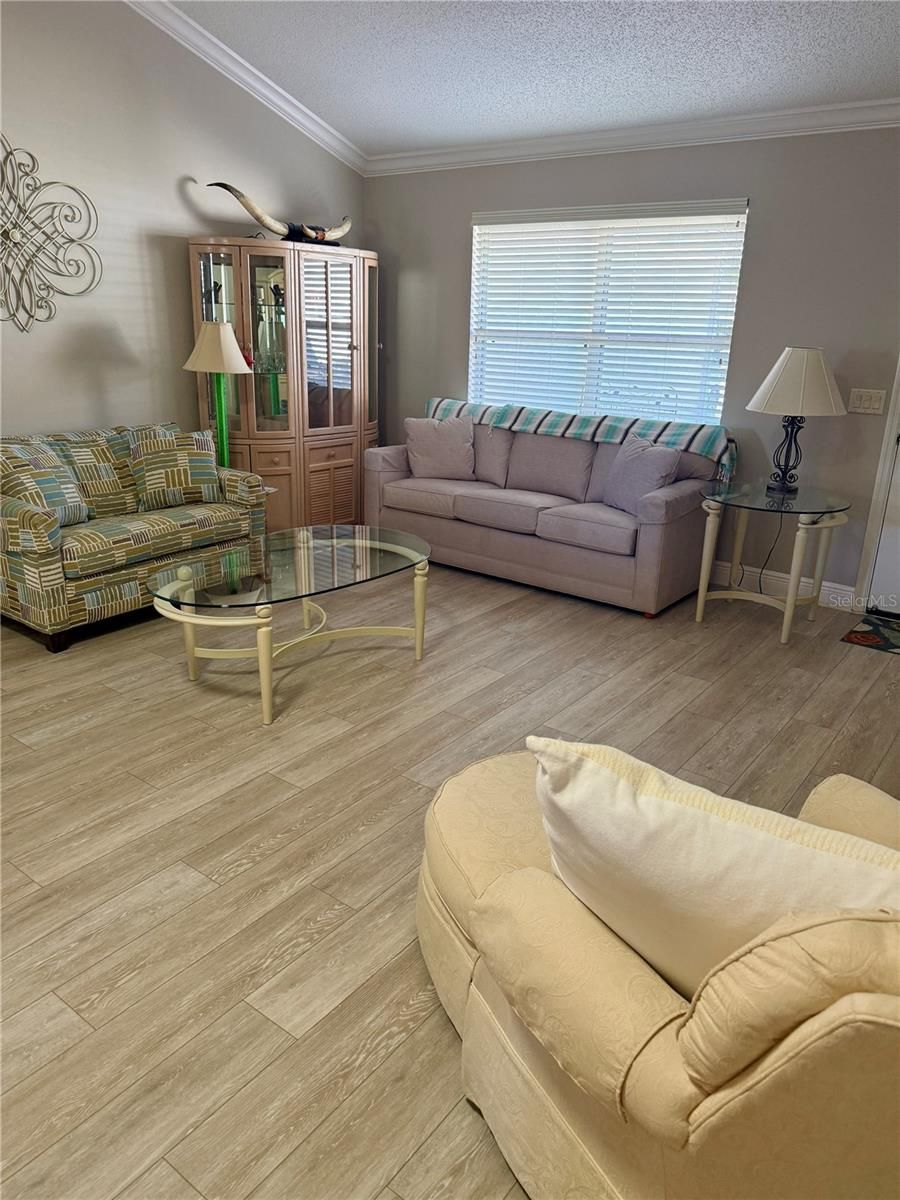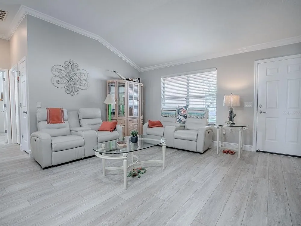 EXPECT THE UNEXPECTED!!! Welcome to this beautifully appointed 3-bedroom, 2-bath residence perfectly situated im the Village of De La Vista West. Enjoy effortless living in a home that seamlessly blends style, comfort, and convenience. Step inside to discover luxury vinyl plank flooring stretching gracefully throughout the entire home, offering durability and elegance in every room. The modern kitchen features stunning granite countertops, newer stainless steel appliances and is thoughtfully designed to be open to the spacious living area, making entertaining family and friends both easy and enjoyable. Crown molding accents add a touch of sophistication across the living spaces, elevating the overall ambiance. Relax year-round in the enclosed lanai, complete with acrylic windows that allow for natural light while providing comfort and versatility—perfect for morning coffee or evening gatherings. This residence offers three comfortable bedrooms and two well-appointed bathrooms, ideal for accommodating guests or creating your own hobby or office space. The two-car garage provides ample parking and storage. Situated in a coveted location between Spanish Springs and Lake Sumter Landing, you’ll have quick access to all the shopping, dining, and entertainment that make The Villages such a special community. You are nearby the Chula Vista Recreation Center and flanked by two executive golf courses: Chula Vista and Mira Mesa. The Rio Grande family pool is nearby also. Don't miss the opportunity to make this stunning home your new retreat in Central Florida! Did we mentioned the home will be FURNISHED!! EXPECT THE UNEXPECTED! ROOF 2014, AC 2018, WATER HEATER 2021