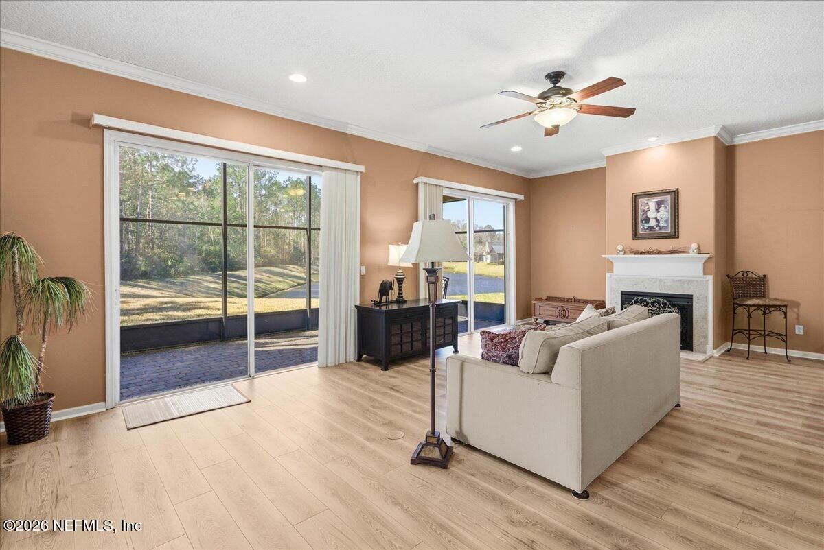 Discover the perfect blend of comfort and leisure in this meticulously maintained residence located in Cascades at World Golf Village, one of St. Augustine's premier active-adult communities. This 3-bedroom, 2-bathroom home spans over 2,000 square feet & offers a relaxing view of the pond & preserve, making it one of the most desirable homes in Cascades. This home features new flooring throughout, lighted ceiling fans, crown molding in the main living area, and a spacious kitchen with a breakfast bar & breakfast nook. All appliances convey with the property, including a washer, dryer & brand new stove and microwave. The primary suite offers a bay window, two walk-in closets, his-and-hers vanities, a garden tub and separate shower. Formal dining opens to a spacious great room with an electric fireplace. Sliders in the great room access the screened lanai where you can enjoy the views & catch the evening sunset. The roof was replaced in 2022, and the AC in 2014. Living in Cascades means you aren't just buying a home, you're joining a vibrant community. This property is within walking distance of the Clubhouse, a social hub featuring a fitness center, indoor and outdoor pools, and tennis courts. Forget the mower! Yard and lawn maintenance are included, giving you more time to enjoy the nearby World Golf Village courses or the historic charms of downtown St. Augustine. Cascades is perfectly situated just minutes from I-95, giving you easy access to both Jacksonville and the pristine beaches of the East Coast.