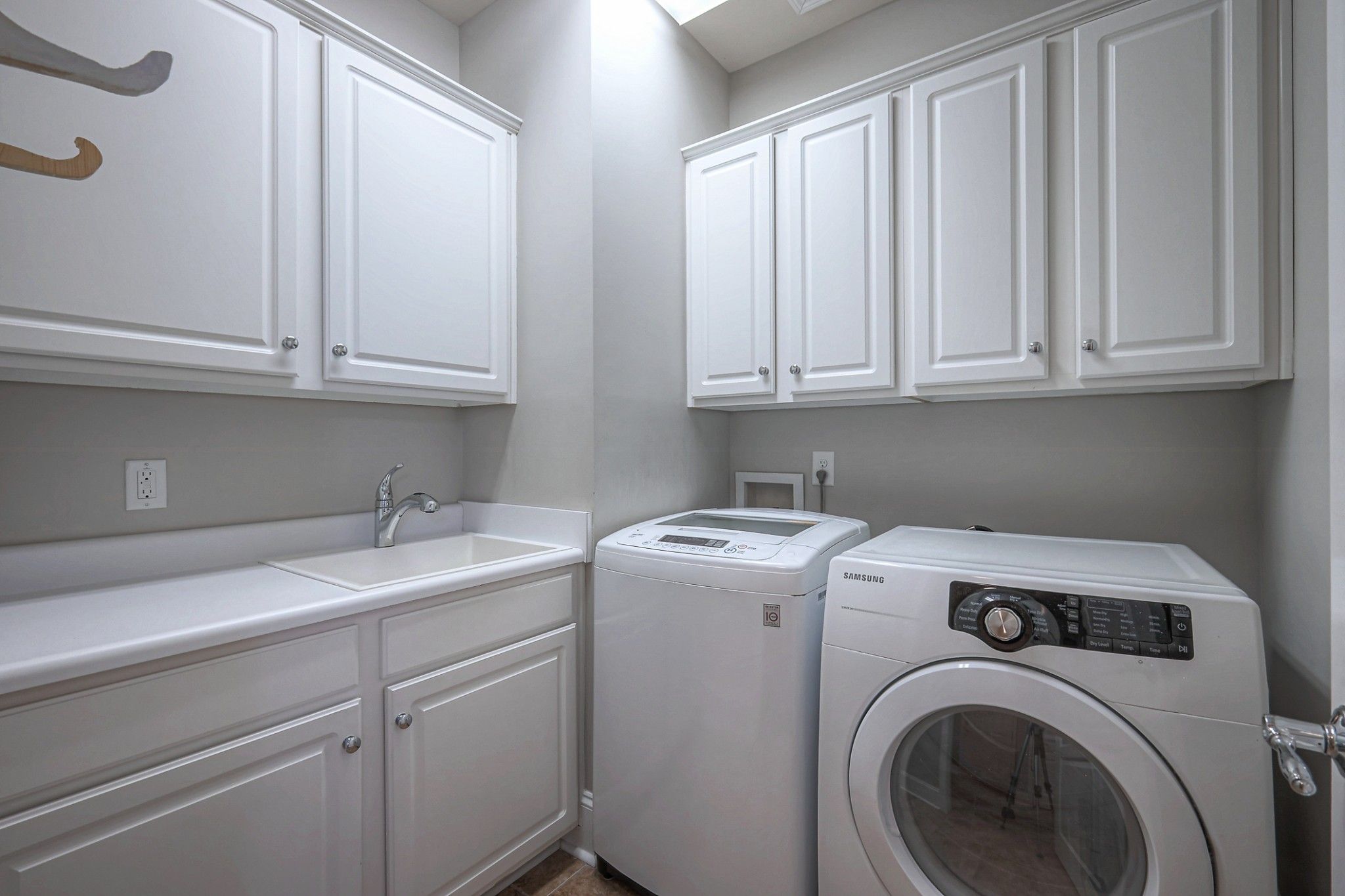 - Built-In Electric Oven, Cooktop, Dishwasher, Disposal, Dryer, Microwave, Refrigerator, Stainless Steel Appliance(s), Washer