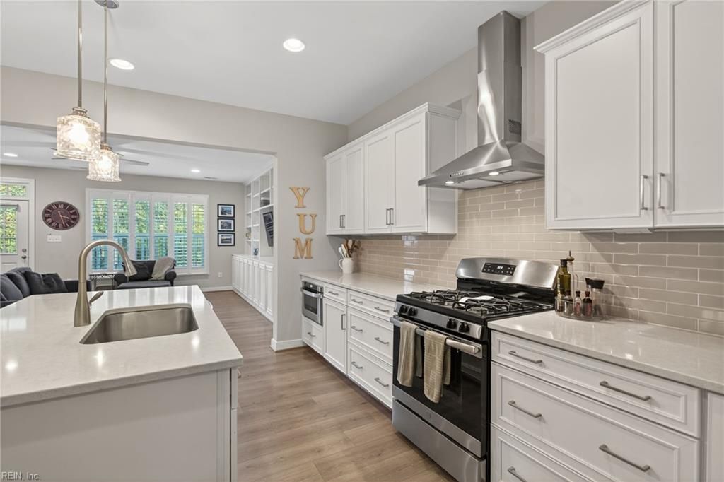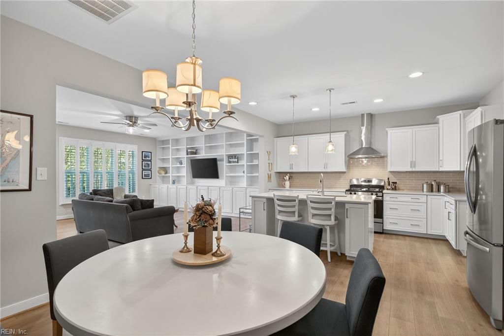 Welcome to New Town in the heart of Williamsburg, Virginia. Just what you have been looking for, a 3-bedroom 3-bath townhouse with a 2-car garage. Beautiful open floor plan with kitchen open to the family room and dining area. Kitchen island is for all your entertaining. Custom built plantation shutters and beautiful custom built-in bookcases and cabinetry in the family area. Bedroom and Full bath on the first floor. There are 2 bedrooms on the second floor each with a full bath on suite. Large laundry room. New carpet in upstairs hallway, bedrooms, and closets. Large closets and plenty of storage. Programmable thermostat. Front entrance and family room overlook greenspace. Shopping, recreation, and entertainment are convenient by sidewalks throughout New Town. This well-maintained home could be your next move.