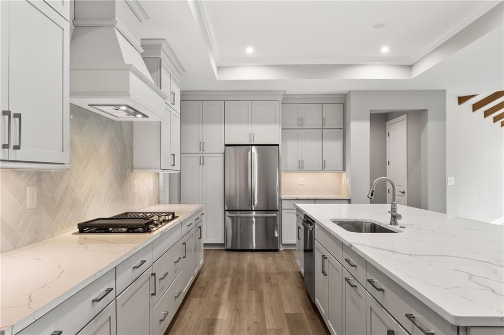 - Dishwasher, Disposal, Electric Oven, Gas Cooktop, Gas Water Heater, Microwave, Range Hood, Refrigerator