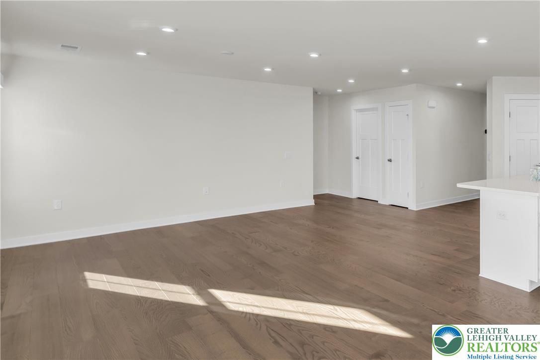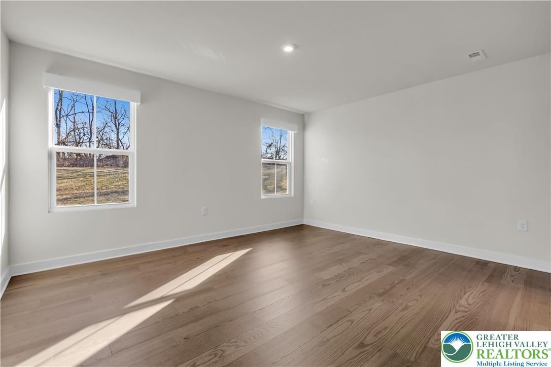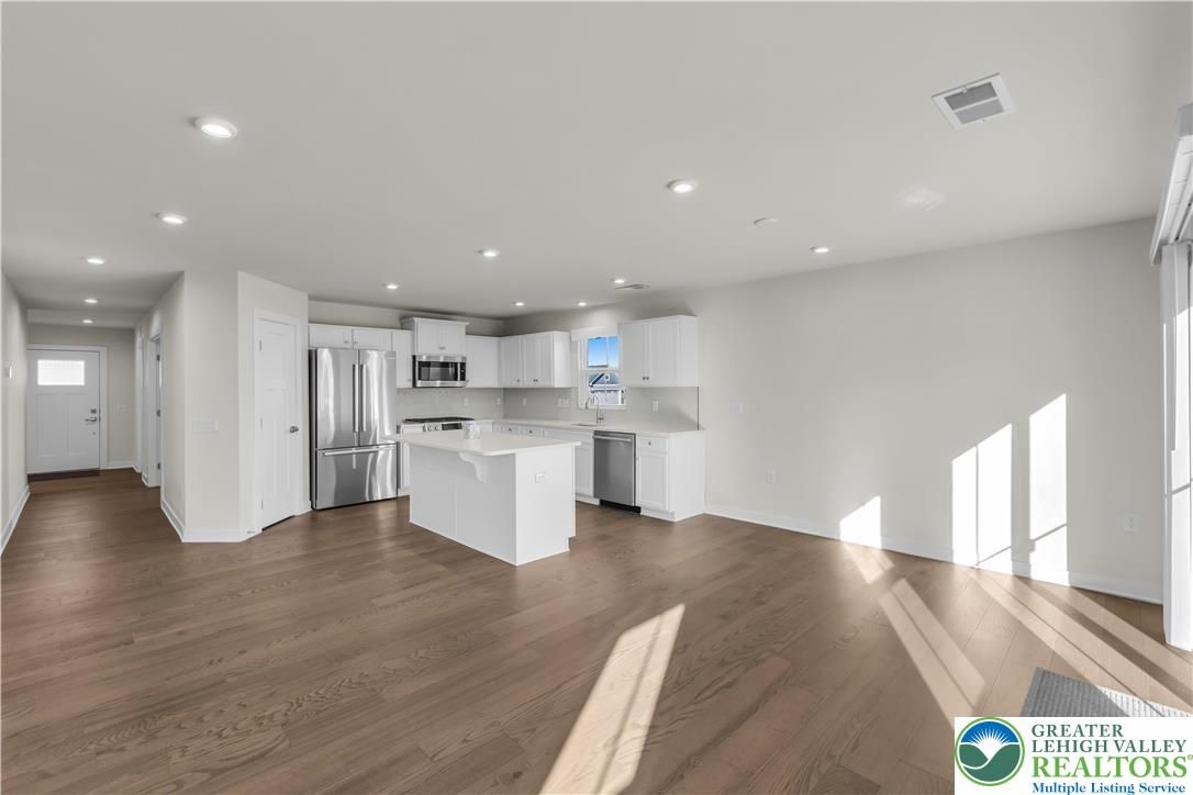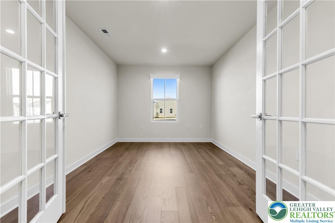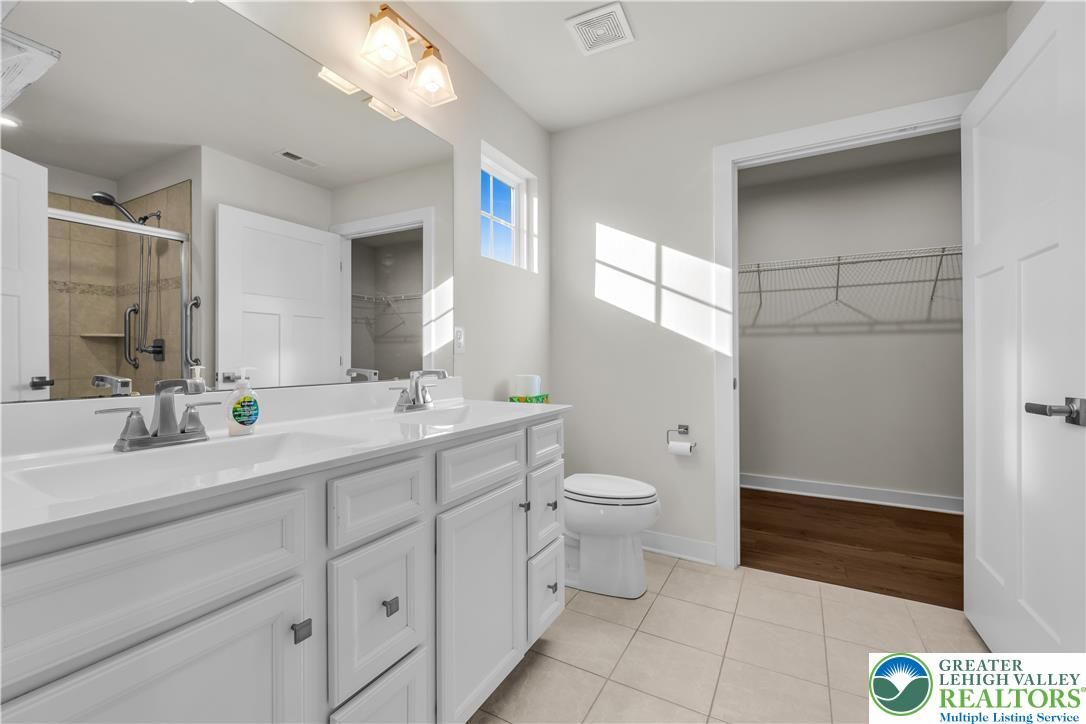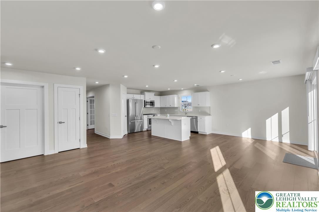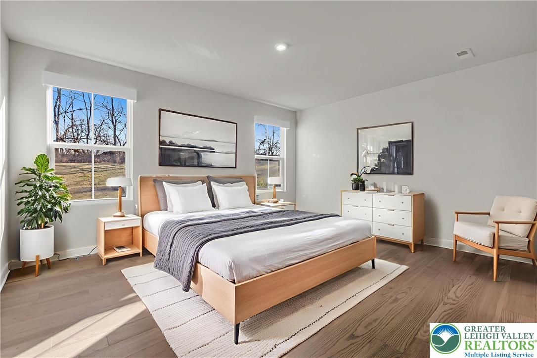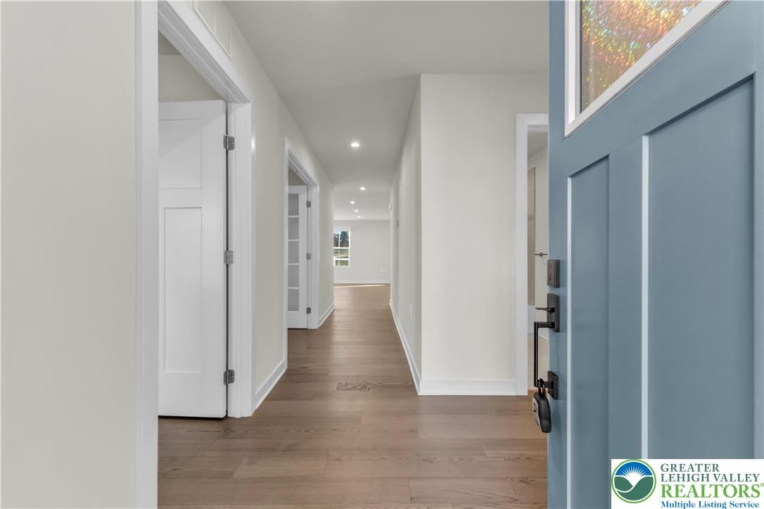Welcome to the Dominica Model, the largest floor plan in the Taylor Villas 55+ community, perfectly positioned on a premium lot backing to the Ironton Rail Trail. Offering approximately 1,720 square feet of elegant single-floor living, this beautifully upgraded home delivers the ideal balance of space, style, and low-maintenance comfort. The bright, open layout is filled with natural light & thoughtfully designed for everyday living and entertaining. The gourmet kitchen is a standout, featuring quartz countertops, a glass tile backsplash, Bosch stainless steel appliances (all included), a spacious center island, pantry, & abundant cabinetry with pull-out drawers, providing exceptional storage. The kitchen flows seamlessly into the sun-filled Great Room. Engineered hardwood flooring runs throughout, complemented by automatic window shades on every window. The flexible layout includes three bedrooms, a dedicated home office with double glass doors, a full bath, & a convenient laundry room with tile flooring in the laundry area and all full baths. The oversized primary suite offers a spacious walk-in closet & a beautifully appointed en-suite bath. Step outside to the low-maintenance Trex deck & enjoy a serene backyard backing to open space, perfect for peaceful mornings or evening strolls. HOA includes lawn care, snow removal, road maintenance, & trash/recycling—making everyday living effortless. A rare opportunity offering elegant living, ample storage, and a beautiful setting.