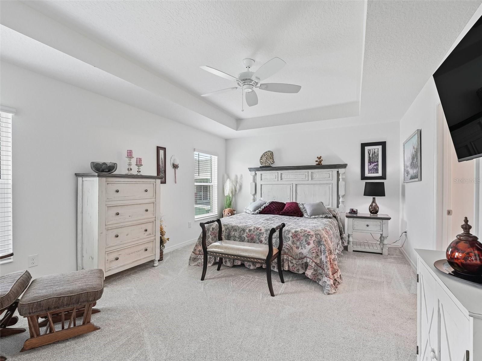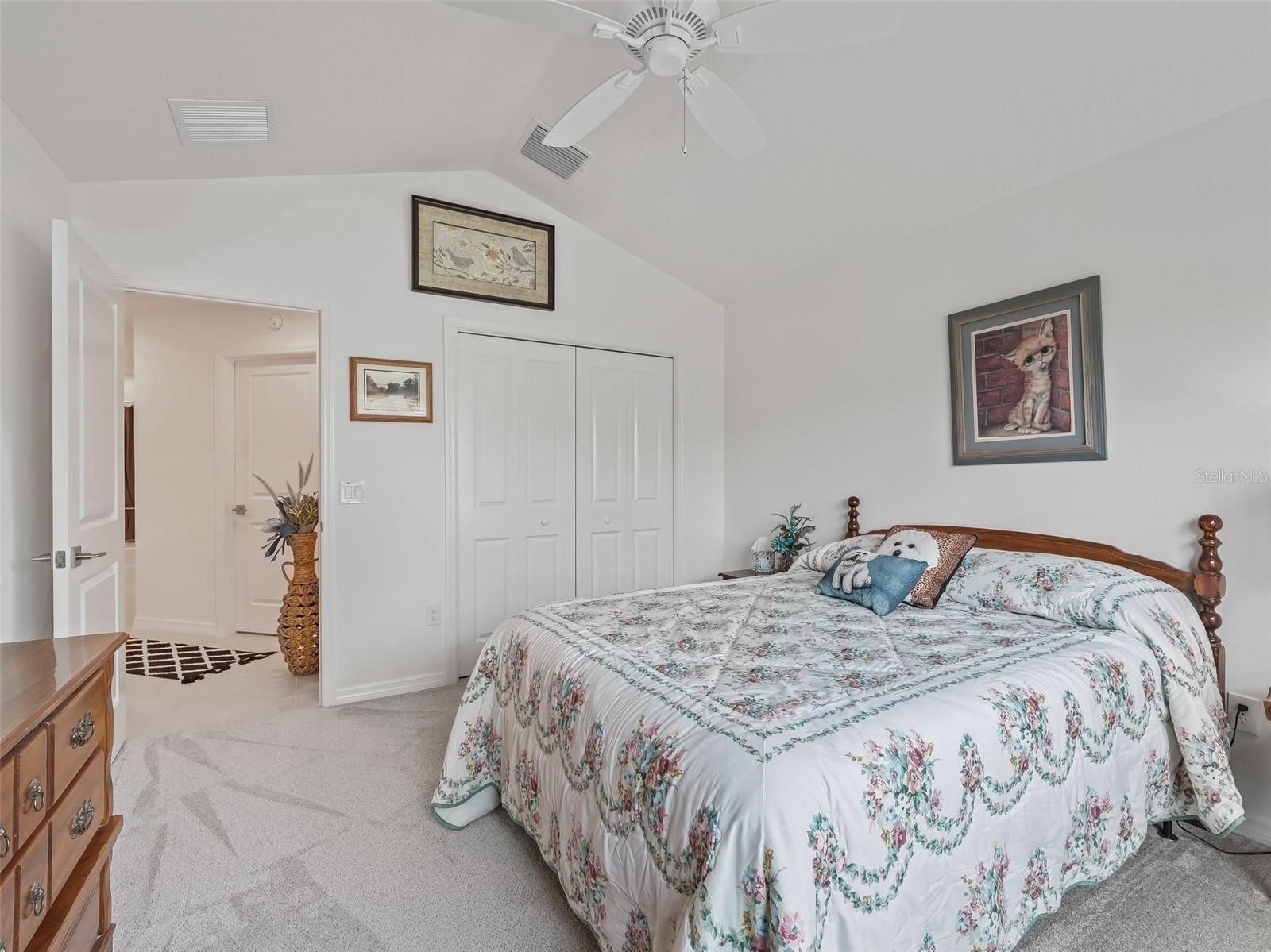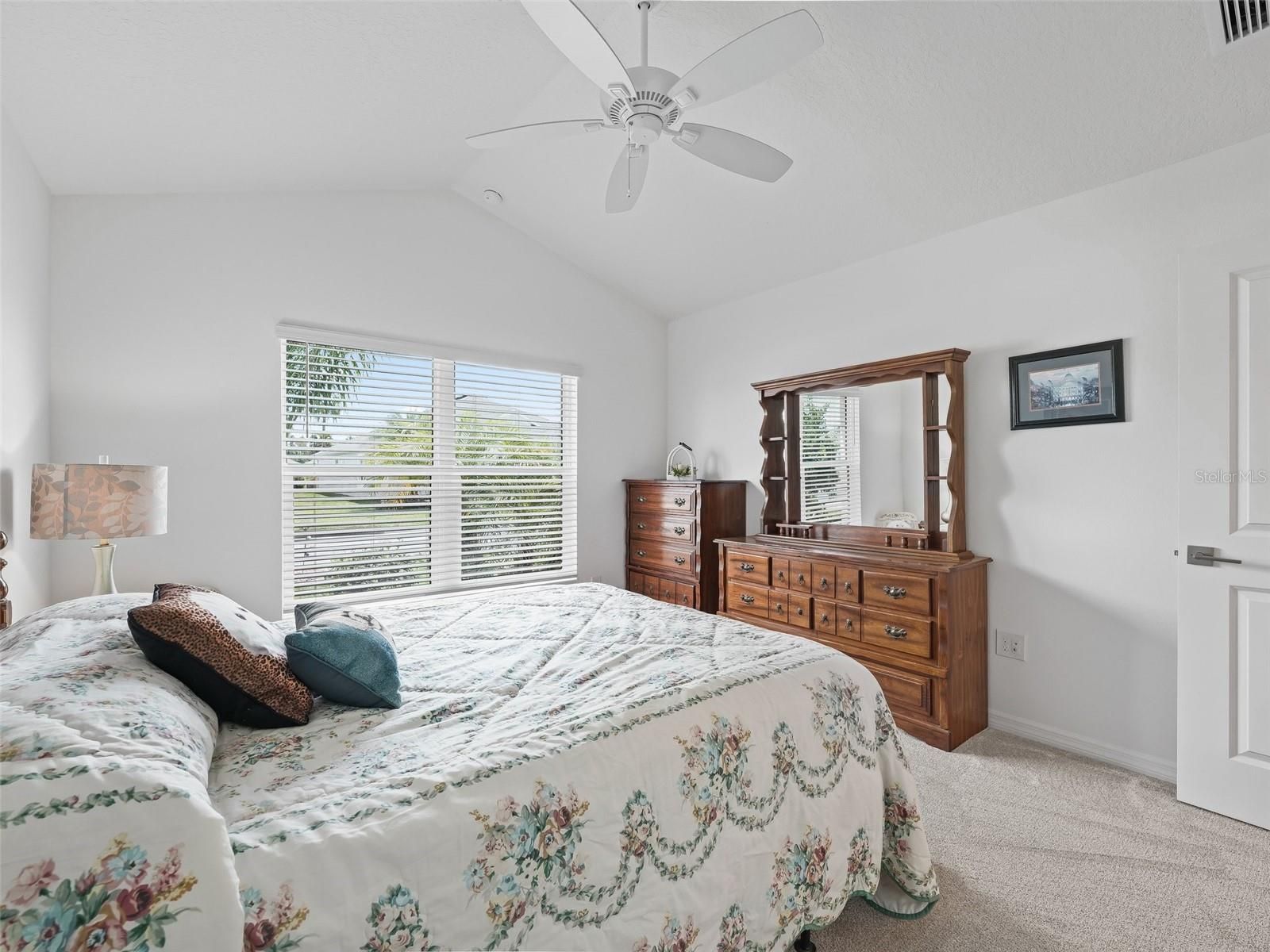 - Cathedral Ceiling(s), Ceiling Fan(s), Eat-in Kitchen, High Ceilings, Living/Dining Room, Main Level Primary, Stone Counters, Walk-In Closet(s), Window Treatments