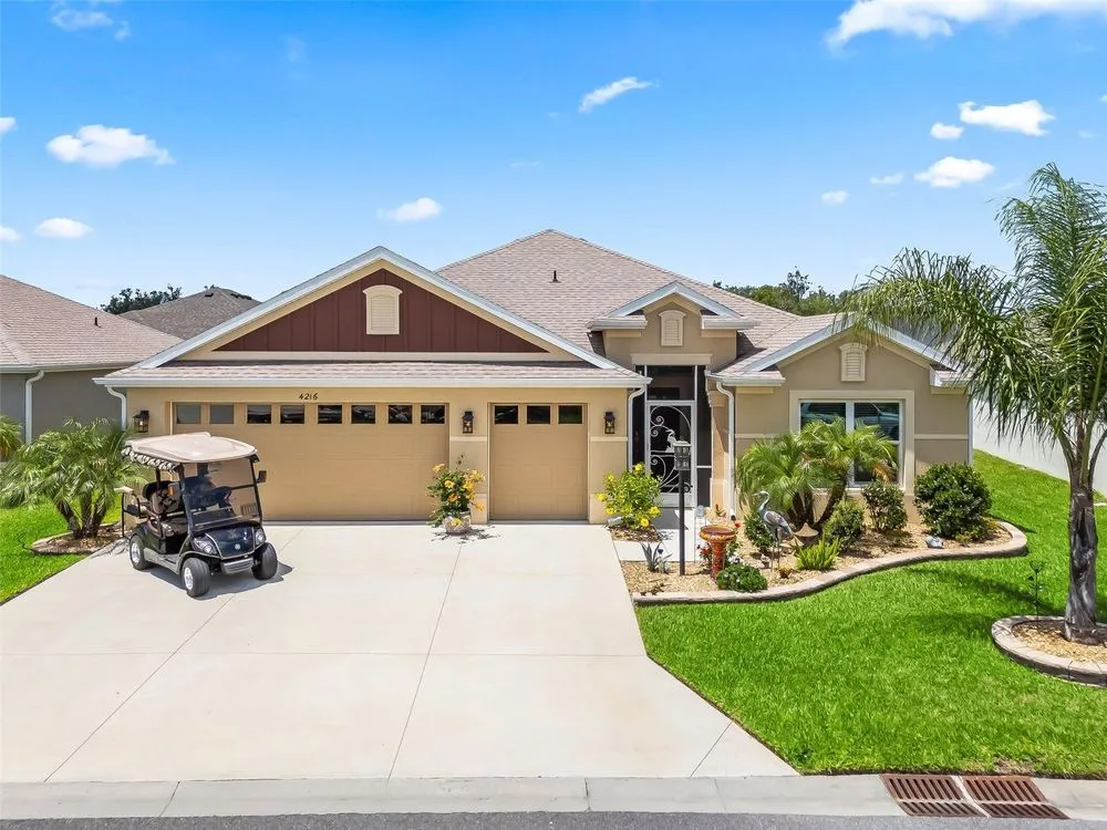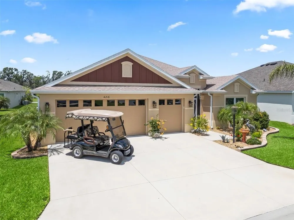 It is time to get on board. DON'T WAIT to see this popular DESIGNER IRIS HOME with easy access to major highways. If you're looking for a luxury home or one that is comfortable living, this is it. The master bedroom has a large walk-in closet. Two more bedrooms have large closets for good storage space. Additional storage space is in the garage with an overhead rack. IT IS A GREAT TIME TO BUY and with all the additions on this beautiful model, you can't go wrong at this unbelievable price. The beautiful kitchen has an eating nook and granite counters throughout. The island measures nine feet long and 46 inches wide. The beautiful cabinets have rollout shelving and easy close doors. Both bathrooms have the same granite countertops as the kitchen. The front entrance area is screened to add comfort. The lanai makes the living area much larger and has roll down blinds. There is a two-car garage with an additional golf cart garage. The landscaping has been professionally done with the addition of a Queen Palm tree. Don't miss your chance to see and own this beautiful home that is very close to the postal area and swimming pool, with a short distance to Water Lily Recreation. The Seller is willing to pay $1,500 toward closing cost to the buyer.