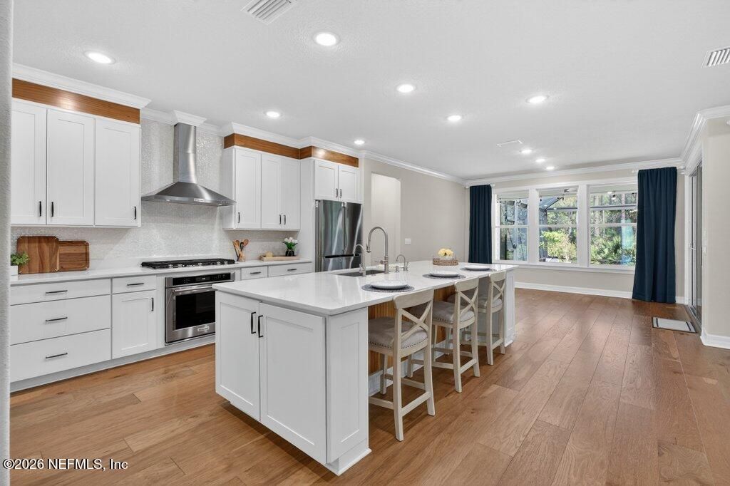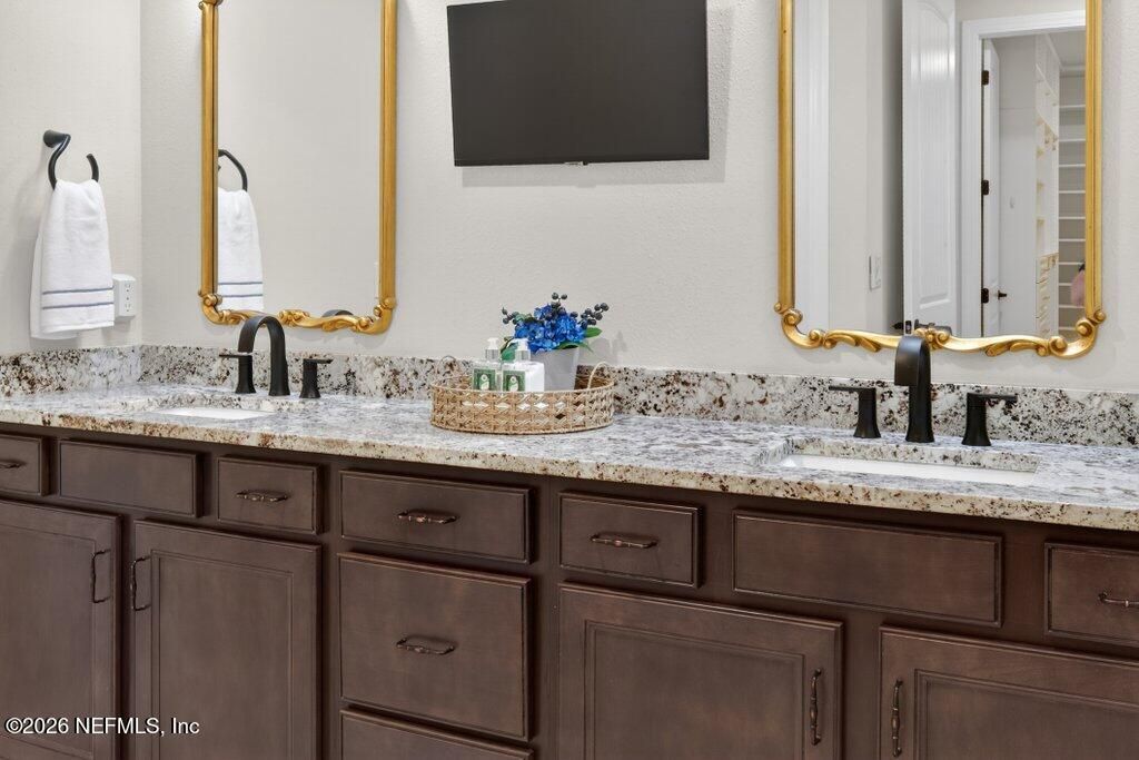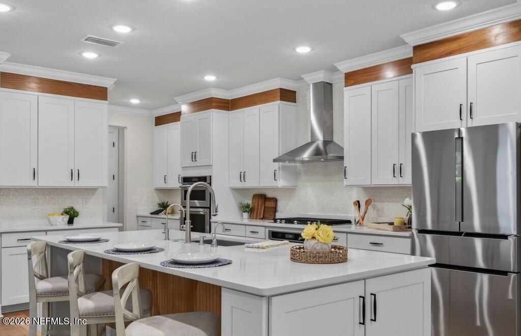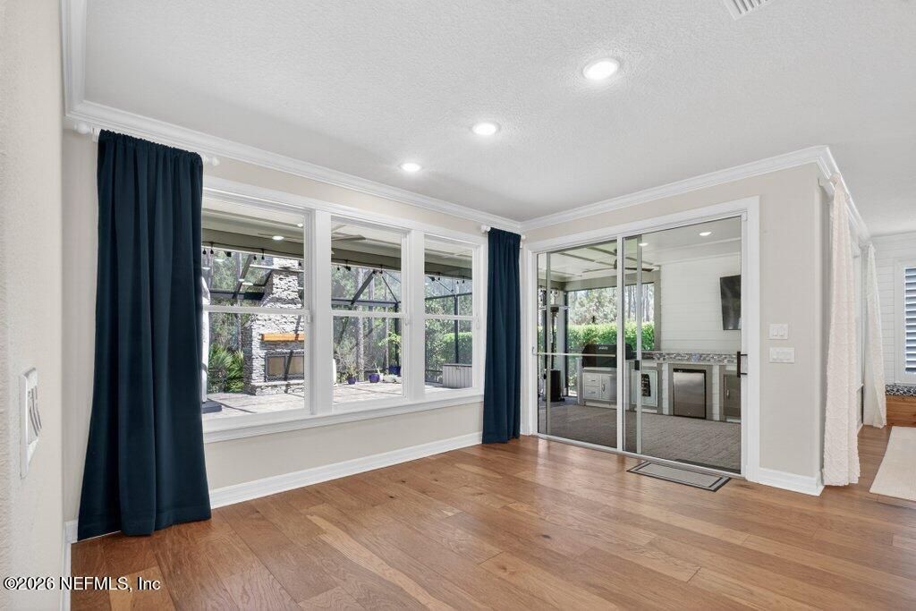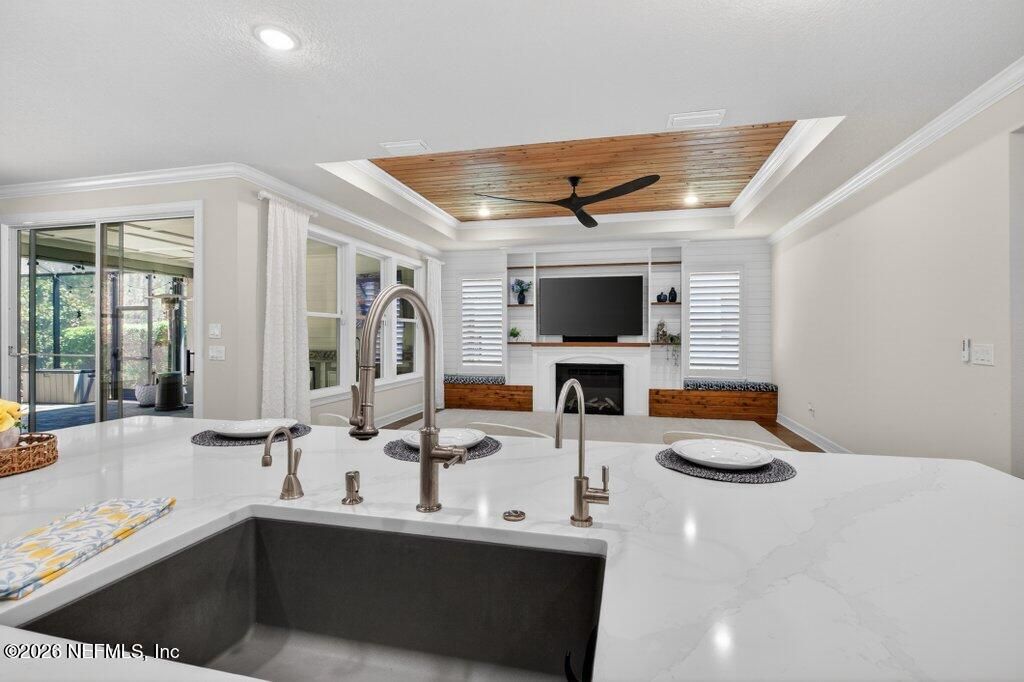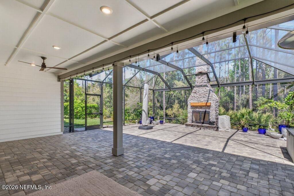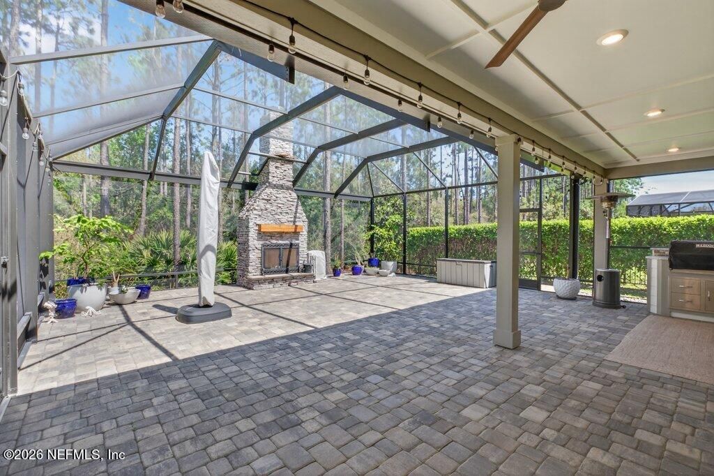 Set within Del Webb Nocatee, this extensively customized residence stands apart for its level of finish, thoughtful design, and attention to detail throughout. Nearly every space has been enhanced, with built-ins, upgraded materials, and purposeful improvements that elevate both function and daily living. Inside, the main living area is anchored by a custom feature wall with fireplace, creating a warm and defined focal point within the open layout. The kitchen connects seamlessly to the living and dining spaces, designed for both everyday ease and gathering, with upgraded fixtures, custom storage, and clean, intentional lines. Storage and organization have been carefully considered across the home. The primary suite offers two fully built-out walk-in closets, while each additional bedroom also includes walk-in storage with custom organization. Solid core doors, wood trim detailing, and a remodeled family room and guest bath continue the consistent level of finish throughout. The home is also equipped with a full smart home system, including Google Home integration in every room and a camera security system, along with a whole house dehumidifier, conditioned attic space, and water conditioning system. Outdoor living has been expanded into a true extension of the home, with a large screened lanai featuring a fireplace, full outdoor kitchen, and an extended paver patio designed for both quiet evenings and hosting. The setting offers privacy, flexibility, and space for future enhancements. Located within Del Webb Nocatee, residents have access to a private amenity center with pickleball, fitness, pool, and an active social environment, all positioned close to shopping, dining, healthcare, and the beach.