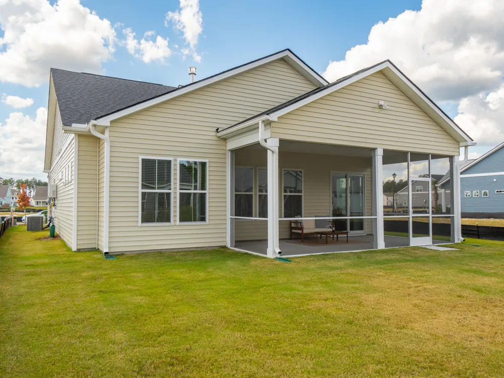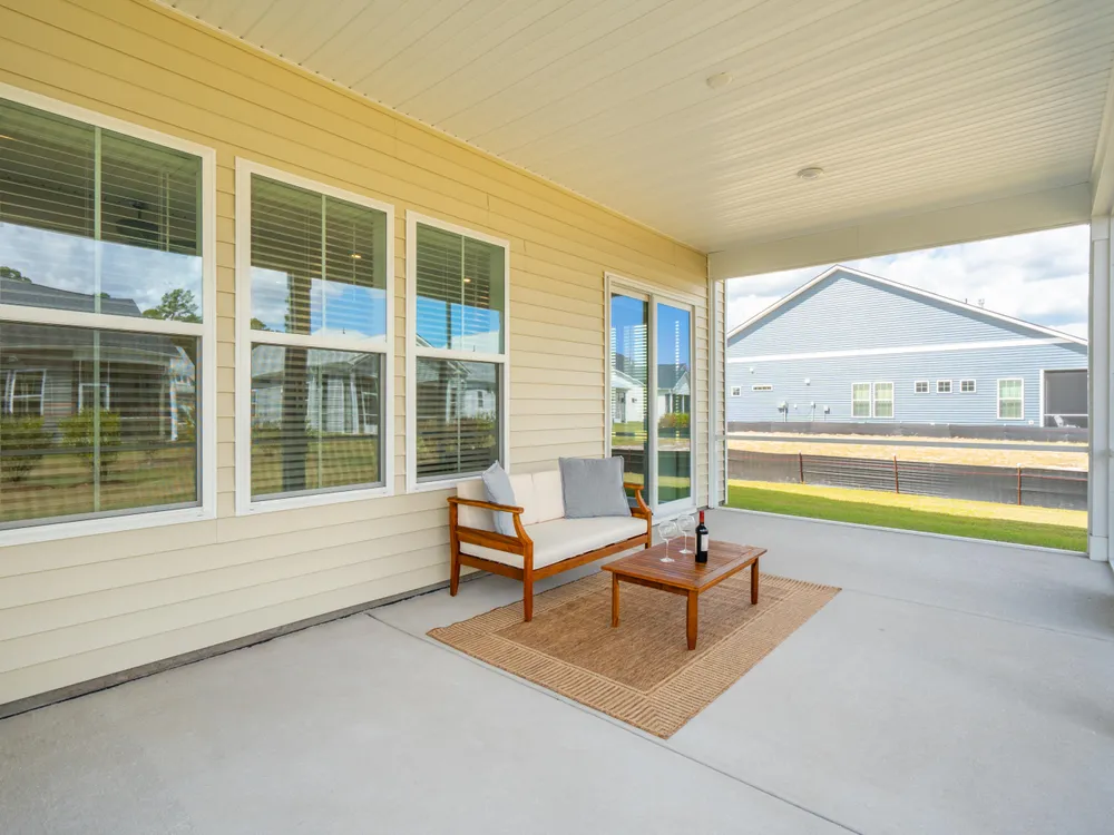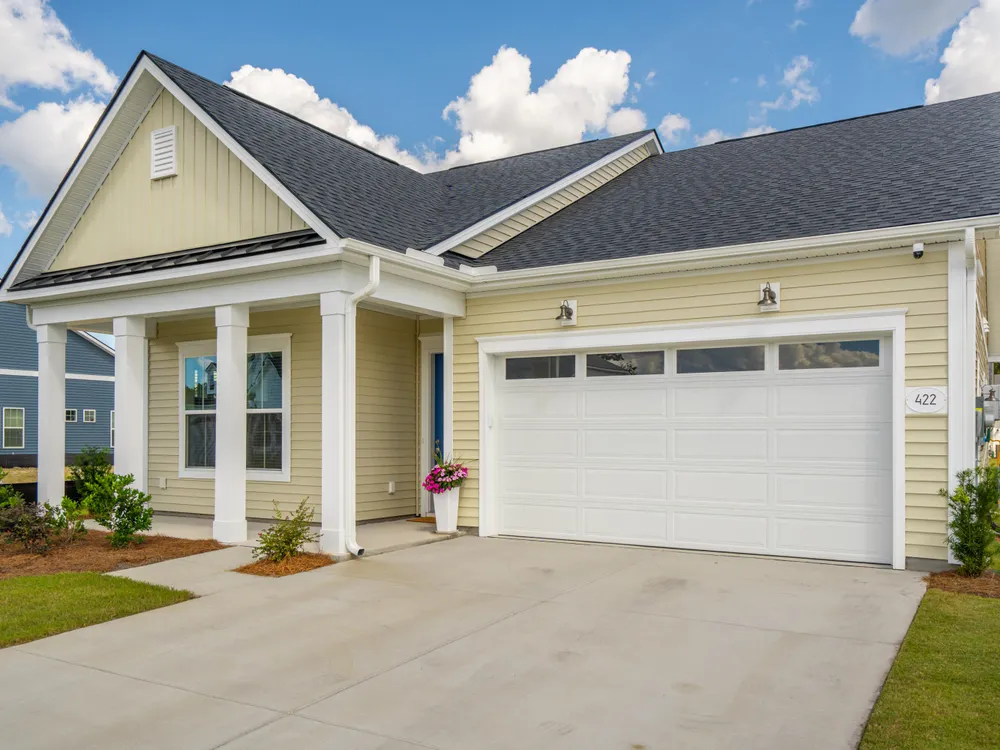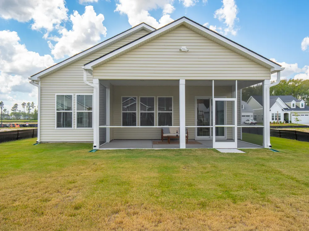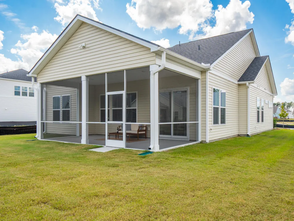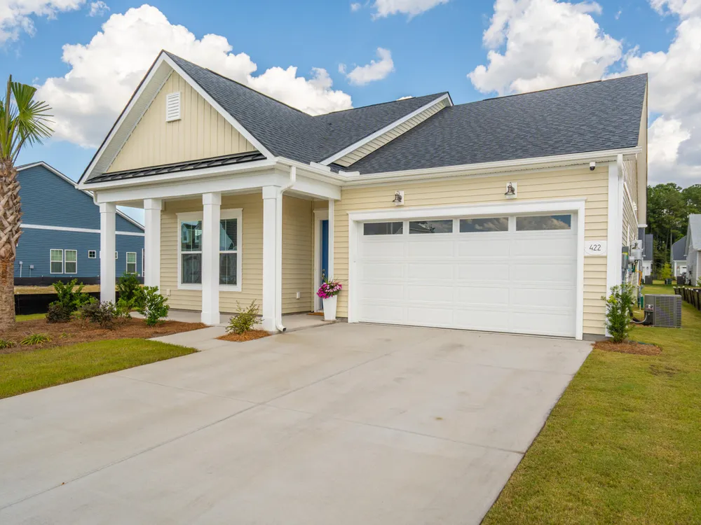 Welcome to Summerwind Crossing, a charming community where 422 Evening Glow Lane stands out as one of the best lots in the neighborhood with an extra approximate 3' on each side of the home. This thoughtfully designed beauty offers comfort, style, and convenience -- all without the wait or stress of new construction.Highlights of the Home Inviting Exterior: Full front porch perfect for relaxing evenings. Welcoming Entry: Foyer with drop zone and coat closet. Flexible Living Spaces: Spacious secondary bedroom and bath opposite the owner's suite for privacy. Large flex room with French doors, perfect for an office, playroom, or third bedroom. Garage Extras: 2-car garage with remote, exterior keypad, utility sink, storage, side door, finished/painted walls, attic pull-down stairs, and special floor coating. Stylish Laundry Room: Beautifully crafted tile flooring, shelving, and large closet. Gourmet Kitchen: Quartz countertops, 42" shaker cabinetry in a rich, soft tan with soft-close drawers, dovetail construction, and trash drawer, gas stove with griddle, tile backsplash, pendant lighting, large walk-in pantry, and generous island overlooking the family room. Family Room: 10' ceilings, fireplace with mantle and shiplap accent. Outdoor Living: Huge screened-in porch for quiet evenings. Owner's Suite: Ensuite bath with dual vanity, tiled shower with bench, private water closet, and frameless glass shower door, and large walk-in closet. Premium Features: "X" flood zone (no flood insurance required), 8' interior doors, 8" baseboards, outlets hidden within trim, tray ceilings, crown moldings, trimmed windows, upgraded LVP throughout (tile in baths, no carpet), high-speed connections, tankless water heater, gutters, window blinds throughout. New Whirlpool side-by-side refrigerator with bottom freezer + high-end washer & dryer (over $5,000 value). Over $75,000 in builder options including extended outdoor living, extra windows, extra-wide bump outs in bedrooms & flex room, additional outdoor lighting, tiled showers, and more. New construction kinks already resolved, move in with confidence. Balance of HOA credit will convey to buyer ($3,510 as of 9/1/25, with $250/month being applied) Selling below original purchase price of $422,203 despite upgrades. $2500 contribution towards closing costs/prepaids/rate buy down with use of preferred lender. Community resort-style amenities: Pool, pavilion with public restrooms, event lawn, dog parks (large and small dogs), pickleball courts. The monthly HOA fee covers not only the amenities but also: home lawn maintenance/weeding/seeding/ mowing/fertilizing/edging/pine straw and community common areas; and Cane Bay Plantation lake access (300 acre lake ideal for kayaking, paddleboarding, fishing and more). Close proximity to top schools, restaurants, shopping, downtown Charleston, and area beaches. This home truly beats the competition, move-in ready, fully upgraded, and priced to sell. Don't miss the chance to call 422 Evening Glow Lane your new home!