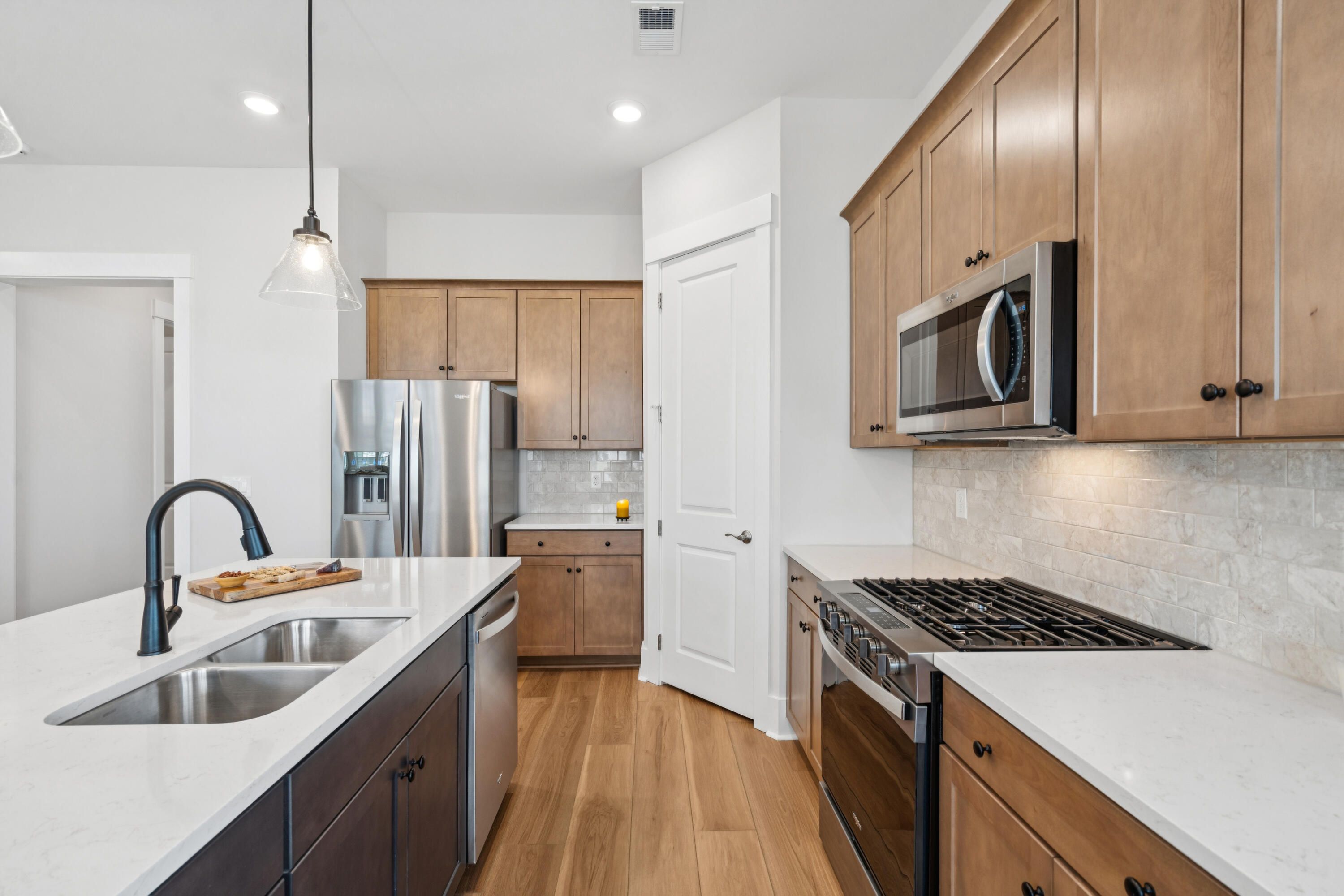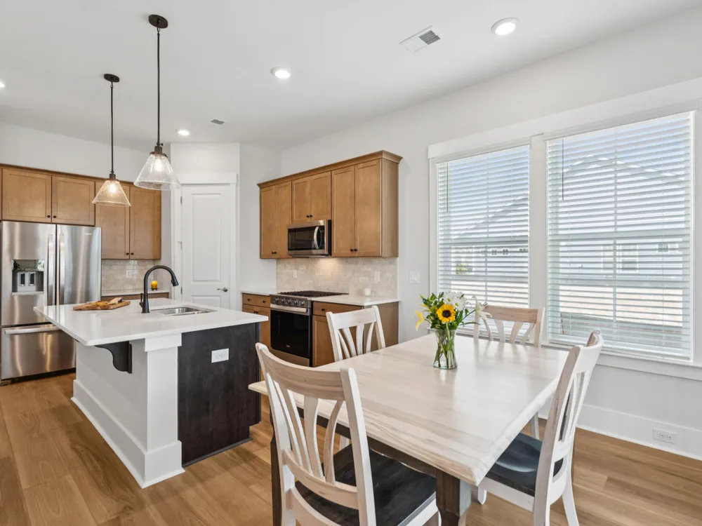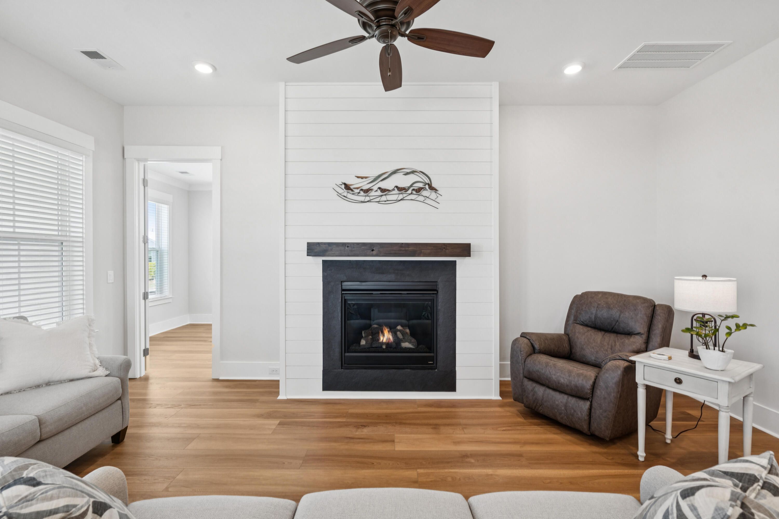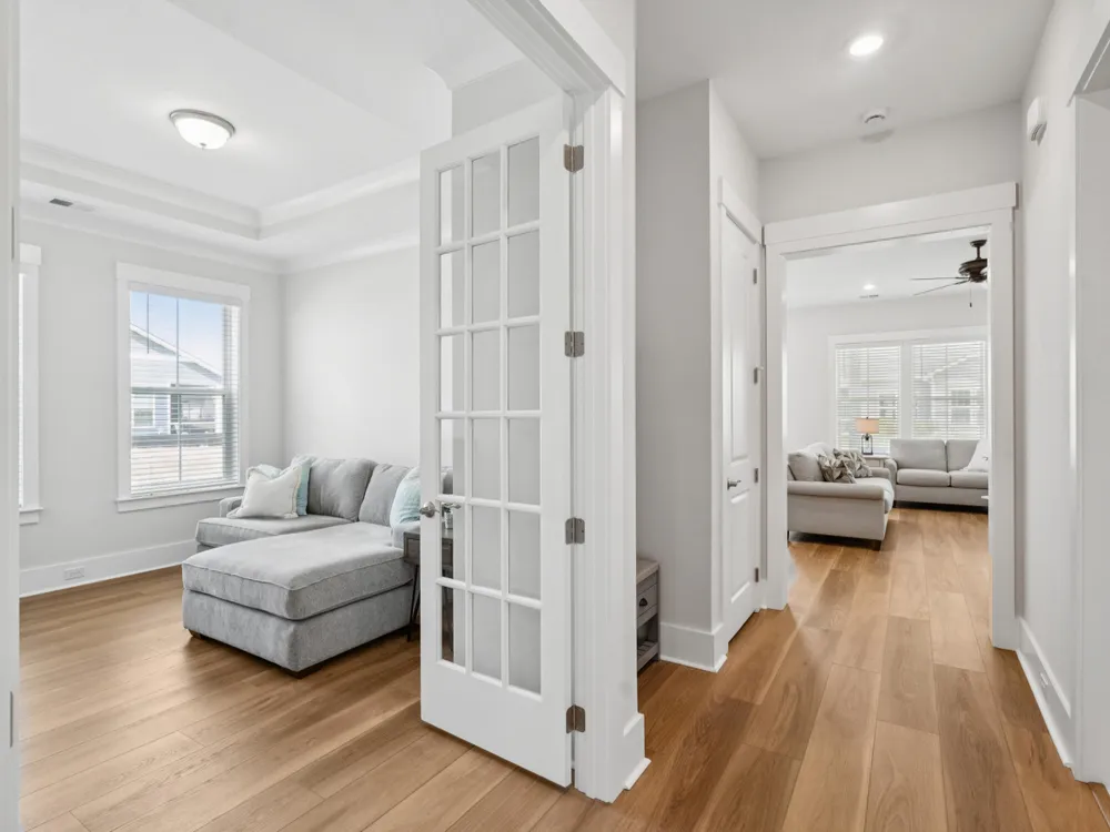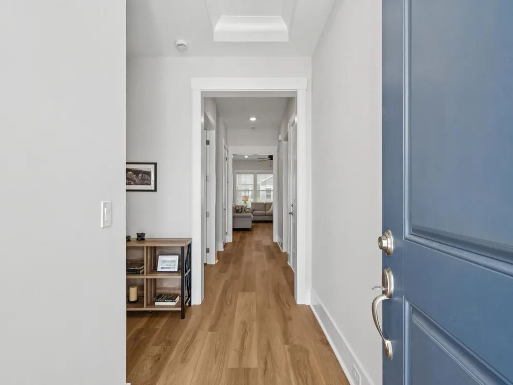 Welcome to Summerwind Crossing, a charming community where 422 Evening Glow Lane stands out as one of the best lots in the neighborhood with an extra approximate 3' on each side of the home. This thoughtfully designed beauty offers comfort, style, and convenience -- all without the wait or stress of new construction.Highlights of the Home Inviting Exterior: Full front porch perfect for relaxing evenings. Welcoming Entry: Foyer with drop zone and coat closet. Flexible Living Spaces: Spacious secondary bedroom and bath opposite the owner's suite for privacy. Large flex room with French doors, perfect for an office, playroom, or third bedroom. Garage Extras: 2-car garage with remote, exterior keypad, utility sink, storage, side door, finished/painted walls, attic pull-down stairs, and special floor coating. Stylish Laundry Room: Beautifully crafted tile flooring, shelving, and large closet. Gourmet Kitchen: Quartz countertops, 42" shaker cabinetry in a rich, soft tan with soft-close drawers, dovetail construction, and trash drawer, gas stove with griddle, tile backsplash, pendant lighting, large walk-in pantry, and generous island overlooking the family room. Family Room: 10' ceilings, fireplace with mantle and shiplap accent. Outdoor Living: Huge screened-in porch for quiet evenings. Owner's Suite: Ensuite bath with dual vanity, tiled shower with bench, private water closet, and frameless glass shower door, and large walk-in closet. Premium Features: "X" flood zone (no flood insurance required), 8' interior doors, 8" baseboards, outlets hidden within trim, tray ceilings, crown moldings, trimmed windows, upgraded LVP throughout (tile in baths, no carpet), high-speed connections, tankless water heater, gutters, window blinds throughout. New Whirlpool side-by-side refrigerator with bottom freezer + high-end washer & dryer (over $5,000 value). Over $75,000 in builder options including extended outdoor living, extra windows, extra-wide bump outs in bedrooms & flex room, additional outdoor lighting, tiled showers, and more. New construction kinks already resolved, move in with confidence. Balance of HOA credit will convey to buyer ($3,510 as of 9/1/25, with $250/month being applied) Selling below original purchase price of $422,203 despite upgrades. $2500 contribution towards closing costs/prepaids/rate buy down with use of preferred lender. Community resort-style amenities: Pool, pavilion with public restrooms, event lawn, dog parks (large and small dogs), pickleball courts. The monthly HOA fee covers not only the amenities but also: home lawn maintenance/weeding/seeding/ mowing/fertilizing/edging/pine straw and community common areas; and Cane Bay Plantation lake access (300 acre lake ideal for kayaking, paddleboarding, fishing and more). Close proximity to top schools, restaurants, shopping, downtown Charleston, and area beaches. This home truly beats the competition, move-in ready, fully upgraded, and priced to sell. Don't miss the chance to call 422 Evening Glow Lane your new home!