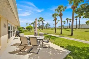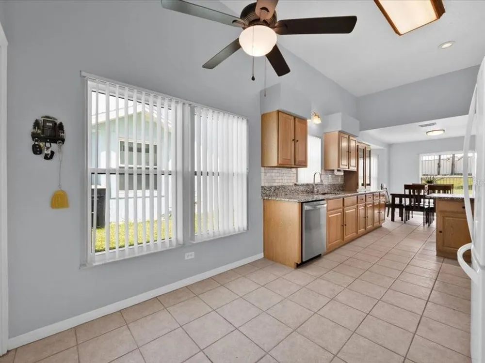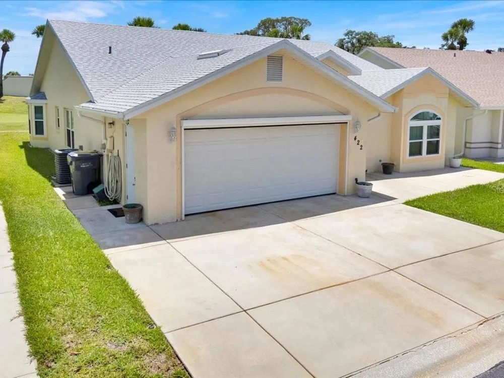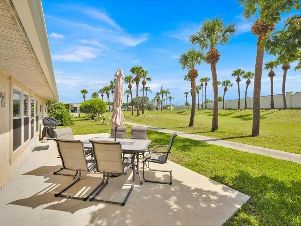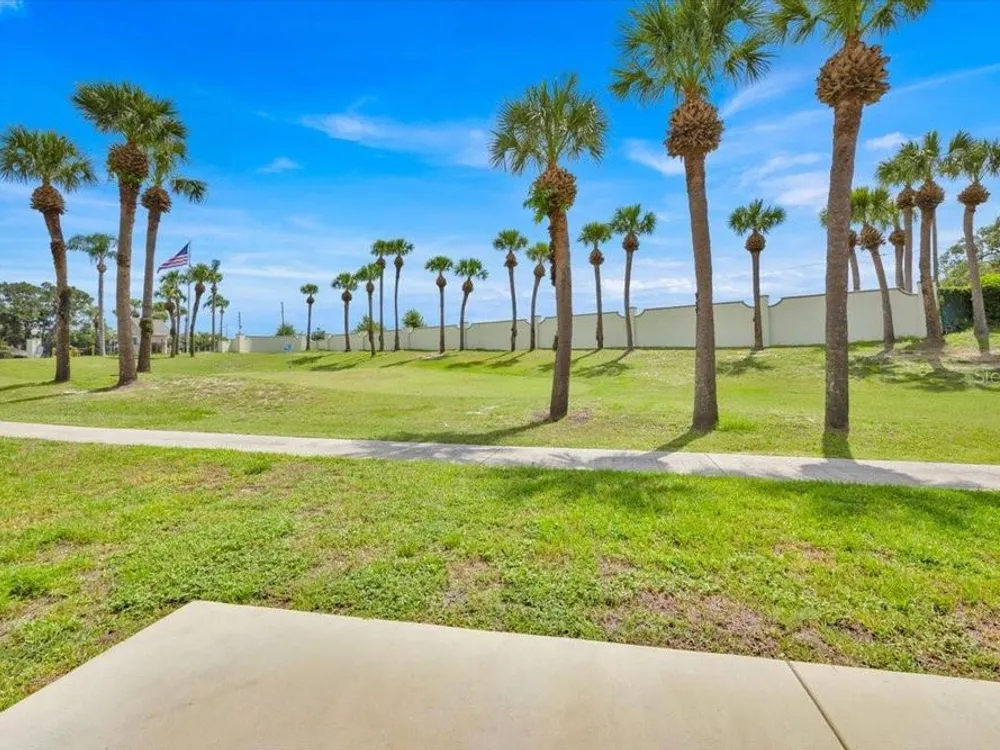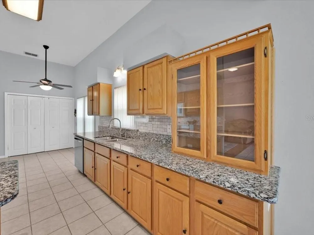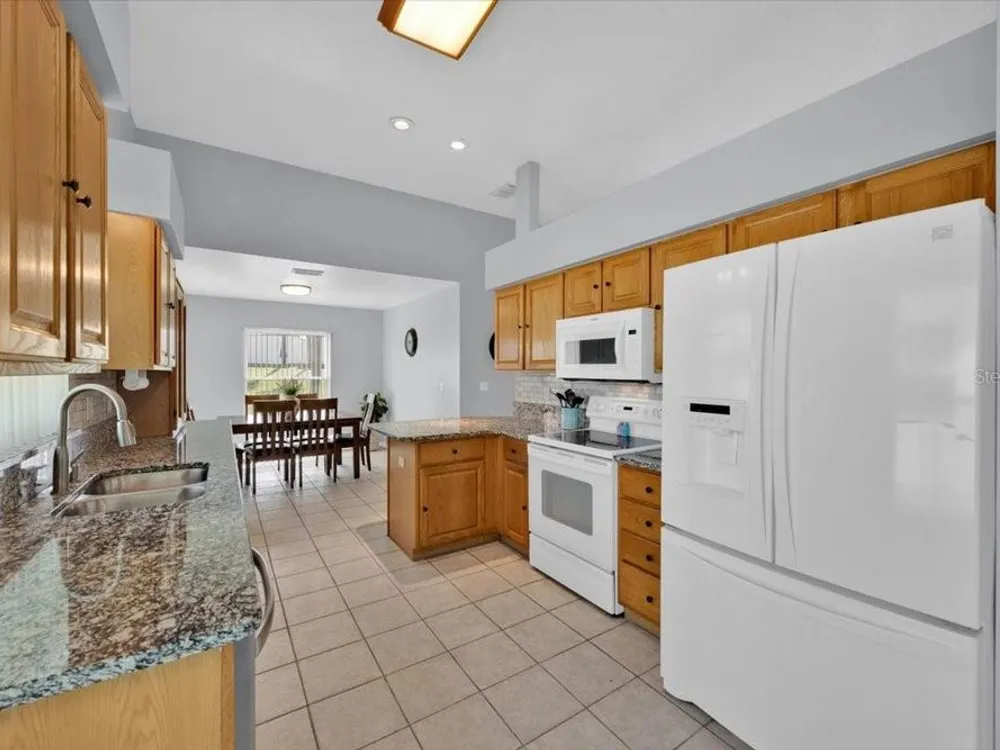 Step through the front door of this beautifully updated 3-bedroom, 2-bath home in the desirable 55+ lakefront community of Lake Henry Estates. Immediately feel the sense of space—thanks to soaring 11-foot ceilings and an open, airy layout. Your eyes are drawn straight to the back of the home, where wide windows frame stunning views of the golf course and swaying palm trees, creating a peaceful, resort-like backdrop. Tile floors run through the main living areas, while the kitchen gleams with granite countertops and modern cabinets (2021). The bedrooms includes warm laminate flooring, and both bathrooms have been stylishly upgraded with tiled showers and grab bars for added comfort. Step out to the covered lanai and soak in the beauty of the backyard—lush greens, palm trees, and the gentle rhythm of the golf course just beyond your property. It’s a picture-perfect retreat for morning coffee or sunset relaxation. Peace of mind comes built in with a new roof (2024), energy-efficient windows, a Generac whole-house generator with a 10 year warranty, three 100-gallon propane tanks, a 2023 water heater, water softener, and a freshly painted garage floor with electric screen. Lake Henry Estates offers gated, lakefront living with unmatched amenities: a 9-hole golf course, community pool, boating, tennis, pickleball, shuffleboard, bocce ball and a vibrant social calendar. The clubhouse includes a pub, library, billiards, and fitness center—everything you need for active, connected living. Just minutes from Publix, Walmart, and restaurants, this home combines beauty, comfort, and convenience. Schedule your private showing today and experience Florida living at its best—right on the golf course, under the palms.