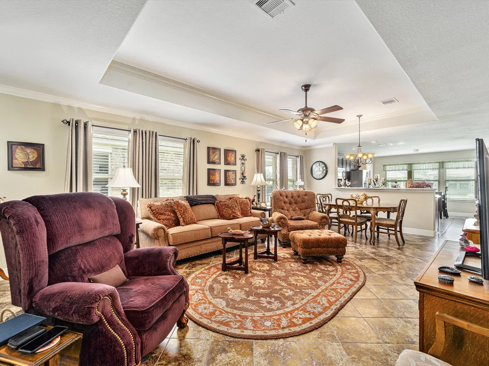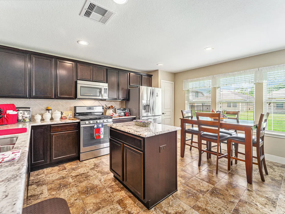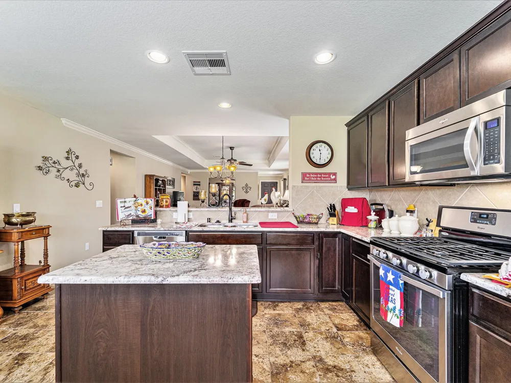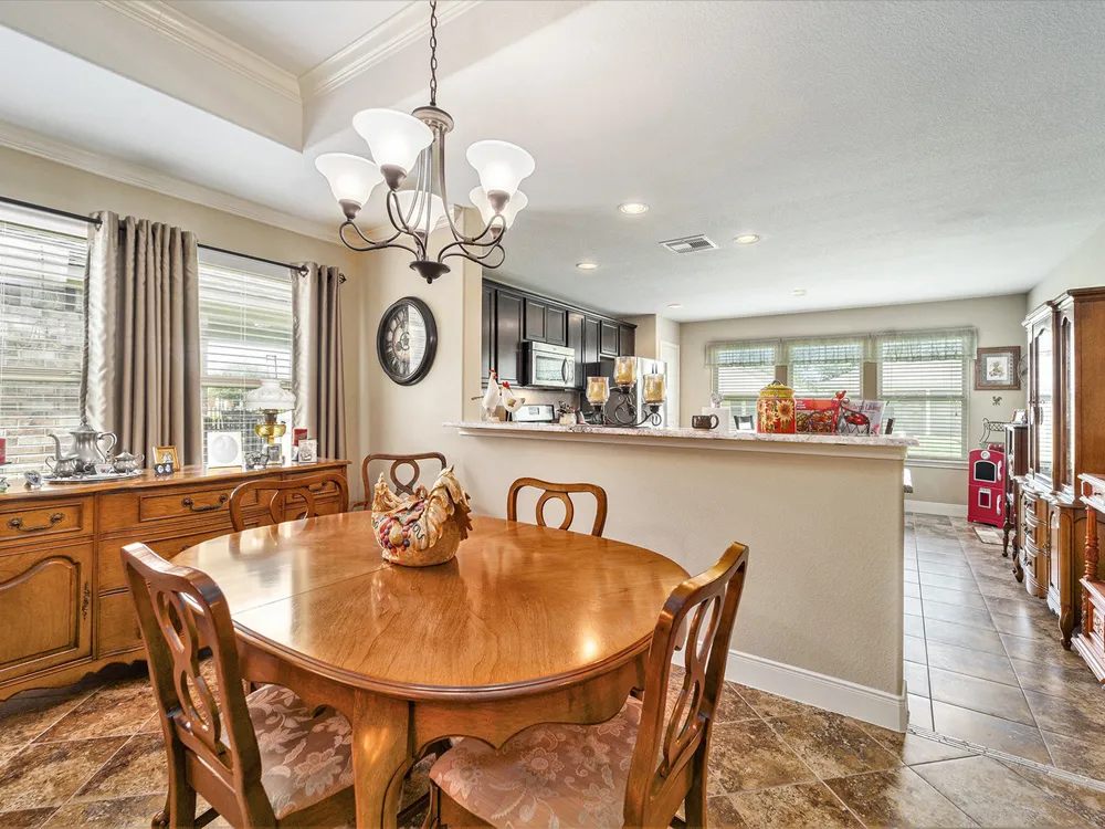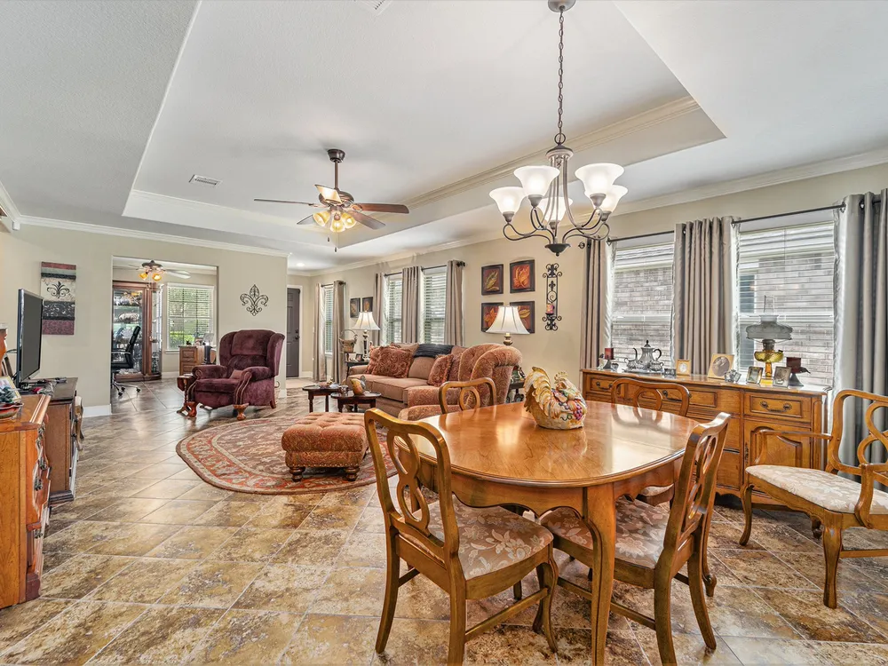 - Breakfast Bar, Crown Molding, Double Vanity, Entrance Foyer, Granite Counters, High Ceilings, Kitchen Island, Kitchen/Family Room Combo, Pots & Pan Drawers, Window Treatments, Ceiling Fan(s), Living/Dining Room, Programmable Thermostat