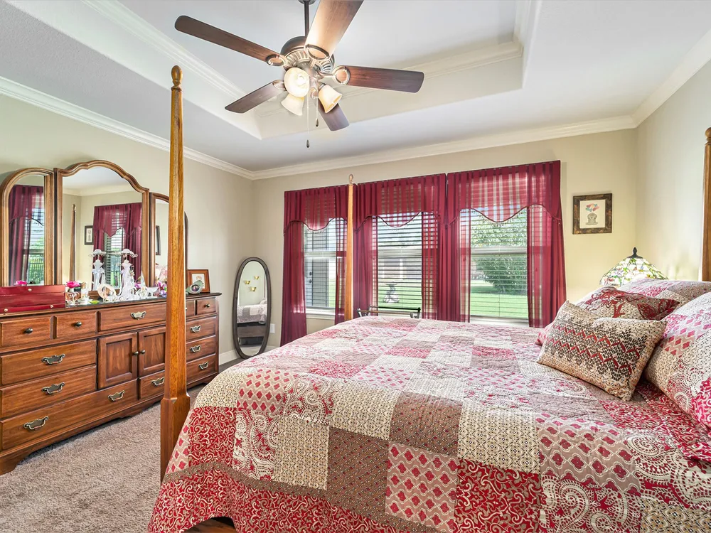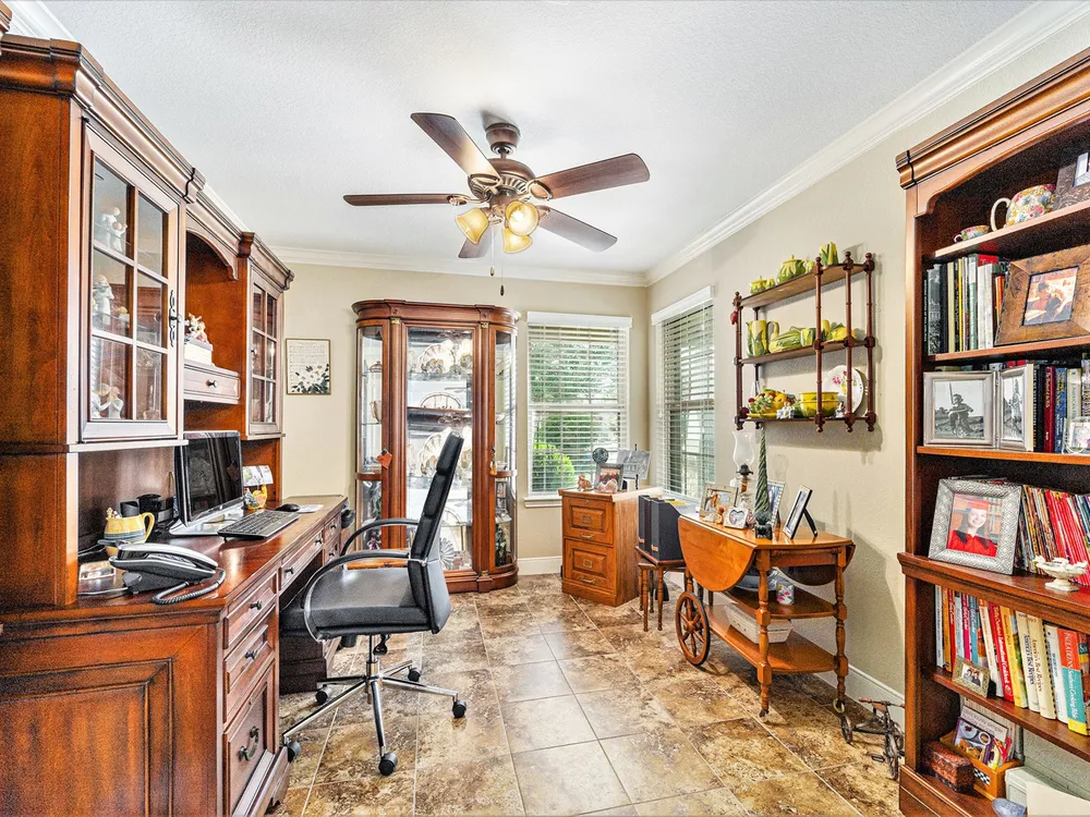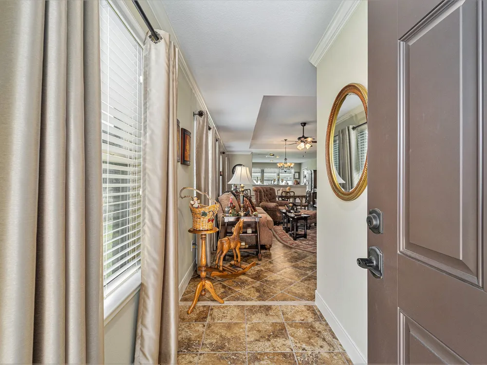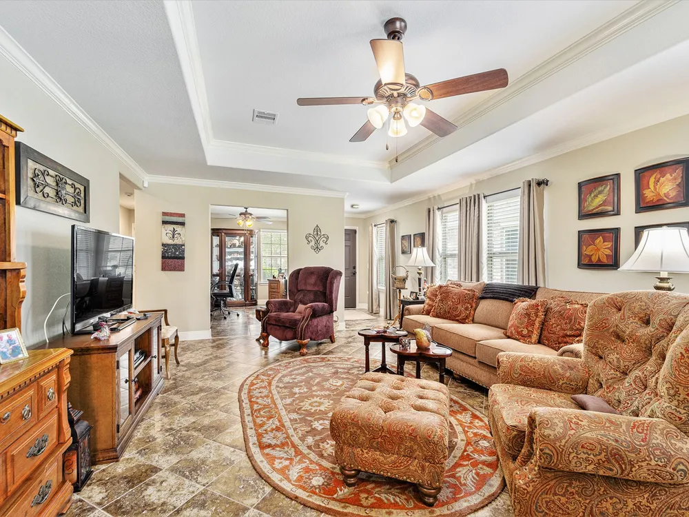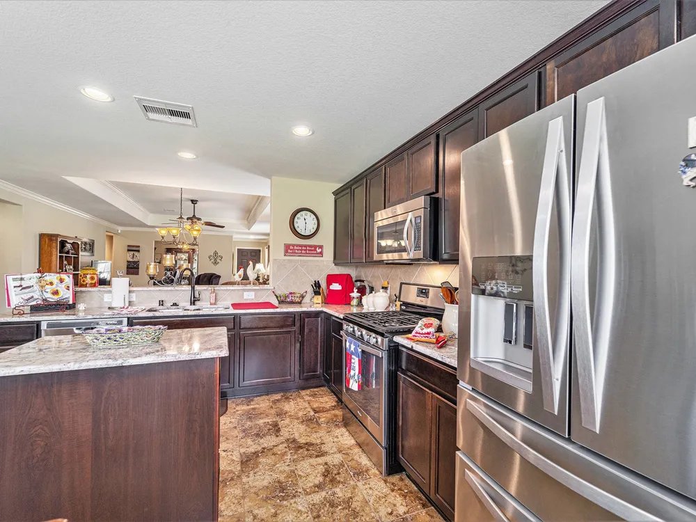 - Breakfast Bar, Crown Molding, Double Vanity, Entrance Foyer, Granite Counters, High Ceilings, Kitchen Island, Kitchen/Family Room Combo, Pots & Pan Drawers, Window Treatments, Ceiling Fan(s), Living/Dining Room, Programmable Thermostat