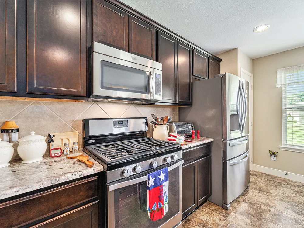 Relax and enjoy the comfortable lifestyle afforded to you in this beautiful 2 bedroom, 2 bath home with office, or flex room, located in the desirable Del Webb community of Sweetgrass in Richmond, Texas! Such a wonderful design with an open floorplan that offers a large living space with gorgeous, easy maintenance tile floors that is open to a spacious, elegant kitchen! The island kitchen features granite counters, stainless appliances and a gas range. There is a door in the breakfast area that leads to a nice, covered porch that views the back yard. The two bedrooms are private, well sized and have soft carpet! A large set of windows in the Primary Bedroom provide views of the back yard and the ensuite has double sinks, a great walk-in shower plus a large walk-in closet! Sprinkler system! Cul-de-sac street! New garage door and opener! Enjoy the nearby Sweetgrass Lakehouse with pool, tennis, pickle ball and more! Wonderfully maintained community and very comfortable home!