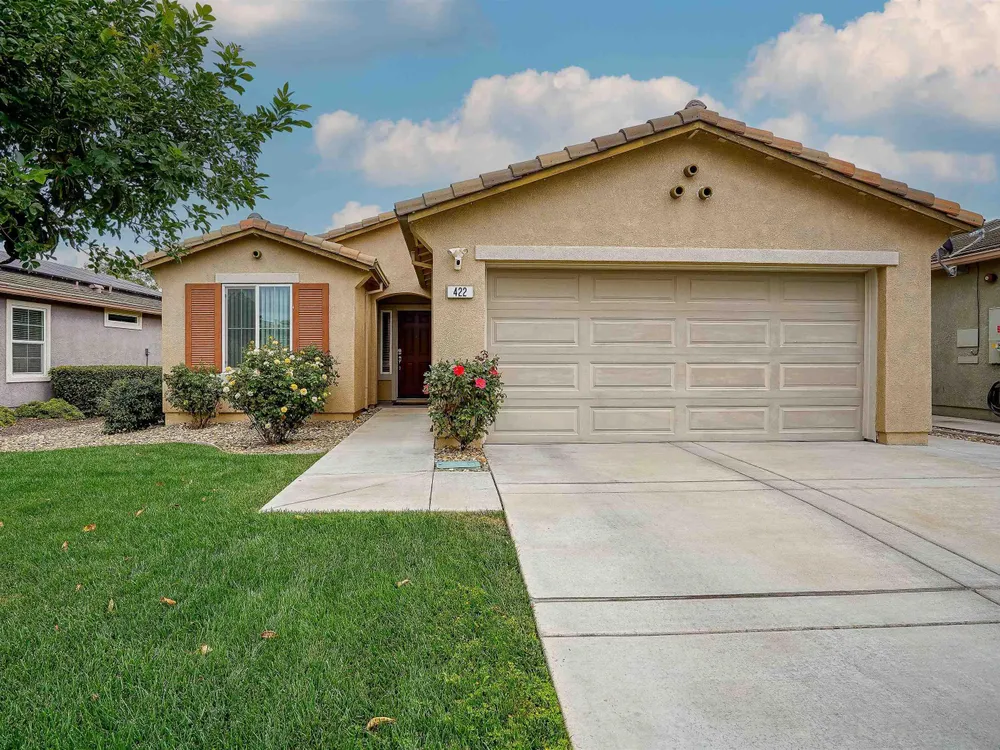 Welcome to 422 Saddle Rock Lane, a bright and inviting single-story home in Rio Vista’s sought-after Trilogy community. This well-kept 2-bedroom, 2-bath residence offers 1,172 sq. ft. of comfortable living with a thoughtful open-concept design. Attractive curb appeal greets you with fresh landscaping, rose bushes, and a welcoming walkway to the covered entry. Inside, high ceilings and abundant natural light enhance the spacious living and dining areas, while sliding glass doors extend the living space to a private, low-maintenance backyard. The kitchen features expansive countertops, ample cabinetry, modern appliances, and a convenient breakfast bar, perfect for casual dining or entertaining. The main suite includes a private bath and generous closet space, while the guest bedroom and second full bath provide flexibility for visitors, a home office, or hobbies. Outdoors, the neatly landscaped yard offers room to relax and enjoy Delta breezes. With a two-car garage, neutral finishes, and access to Trilogy’s resort-style amenities—clubhouse, pools, fitness, golf, and more—this home combines comfort, convenience, and the active adult lifestyle.