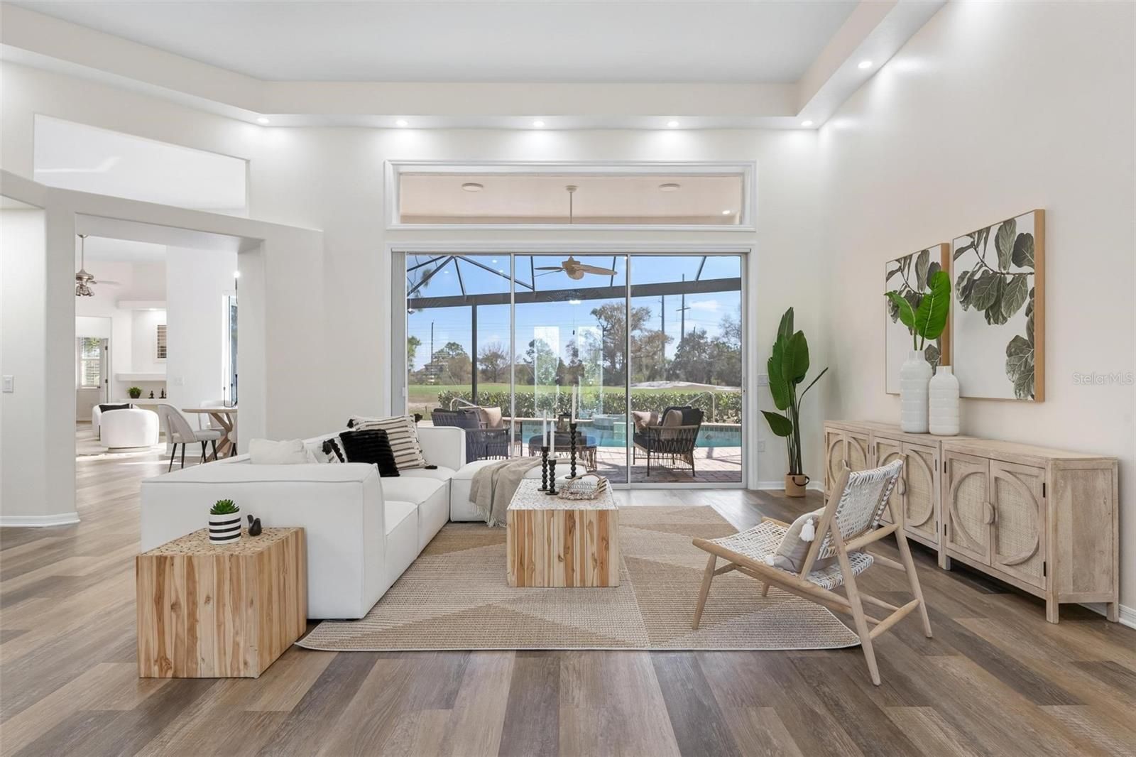 Tucked behind the gates of The Reserve at Plantation Golf & Country Club, this beautifully updated 4-bedroom, 3-bath, 3-car garage pool home offers the perfect blend of timeless elegance, modern comfort, and serene golf course living. Perfectly positioned along a tranquil canal and overlooking the 4th fairway, the setting is both peaceful and picturesque — where mornings begin with coffee on the lanai and evenings end with glowing sunsets over the course. Inside, the spacious floor plan offers formal living and dining areas, a welcoming family room, and generous bedroom accommodations filled with natural light — designed for both everyday comfort and elegant gatherings. Over the years, this home has been thoughtfully enhanced with quality upgrades throughout. The kitchen features granite countertops and a premium GE Profile appliance package, while the primary suite offers a spa-inspired retreat complete with a hydrotherapy walk-in tub, separate shower, and refined finishes. Plantation shutters and custom window treatments add warmth and polish to every room. The outdoor living space is truly exceptional. A saltwater pool, upgraded spa controls compatible with smart devices, and a custom-built wet bar with beverage refrigerator create a private resort-style setting ideal for entertaining. In 2025, a stunning panoramic pool cage with maritime aluminum hardware and a retractable lanai screen were installed, enhancing both views and functionality. Significant recent improvements continue with a new main HVAC system installed in 2025, a tankless hot water heater added in 2026, and a freshly repainted exterior completed in February 2026 — giving the home a crisp, updated presence from the moment you arrive. Additional features such as Leaf Filter gutters, Ring security cameras, and a professionally installed safe in the primary closet contribute to the home’s thoughtful design and long-term confidence. With major systems recently updated and outdoor living beautifully reimagined, this move-in ready residence presents a rare opportunity to enjoy established golf course living with modern confidence — just minutes from shopping, dining, Wellen Park, I-75, and the beaches of Venice Island.