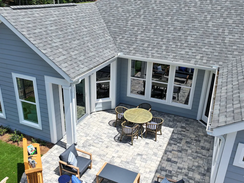 Welcome to The Courtyards at Post Road! This conveniently located 55+ community offers just 28 exclusive luxury ranch homesites. Enjoy low-maintenance living, open and thoughtfully designed floorplans, and a vibrant lifestyle, all in a prime location! The Portico Bonus Suite offers an efficient luxury ranch floor plan, designed to maximize the space in your home. The first floor features a large Owner's Suite with dual closets, a centrally located den/office, open kitchen, and additional bedroom with bath tucked away from the primary. The well-appointed Deluxe kitchen opens up to defined living and dining spaces, while looking directly out into your private, fenced side courtyard. High-end finishes include 8-foot doors, a shiplap gas fireplace, quartz countertops, zero-entry tile shower in the primary, Pella windows, and stainless GE appliances. The Courtyards at Post Road offers easy living with included lawn maintenance, a dog park, and a firepit pavilion. To be completed September 2025.