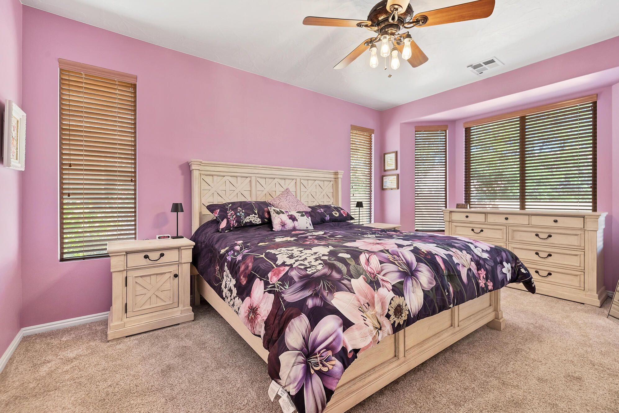 Beautiful home in SunRiver's 55+ Active Adult Community! This home features 3 bedrooms and 2 baths with bay windows in owner's suite, 2nd bedroom and dining area with bench seating. New paint and carpet throughout, granite countertops in kitchen, water purifier and water softener, insulated garage doors and lots of windows to bring in the natural light. New stove and new speed queen washer and dryer set included. Backyard is low maintenance and private! Home is equipped with Simply Safe Monitored Security System. Lifted Ferrari Red Golf Cart with Bronze wheels is negotiable.