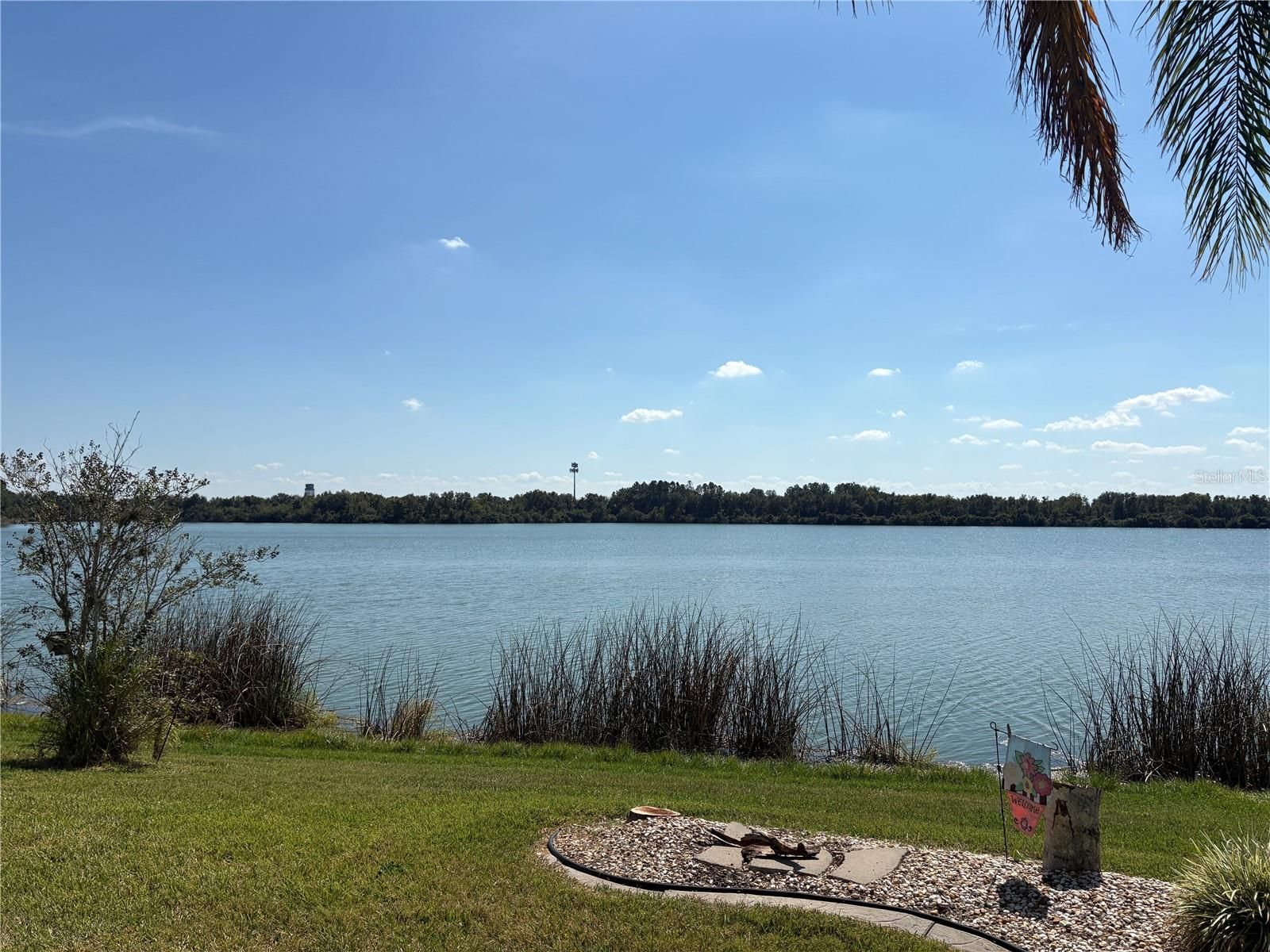 One or more photo(s) has been virtually staged. Waterfront Home in the highly sought-after community of Carillon Lakes! This beautifully maintained 3-bedroom, 2-bath lake view home offers 1,735 sq. ft. of living space and is nestled in a 24-hour guard-gated neighborhood with resort-style amenities including a sparkling pool, fitness center, tennis and pickleball courts, playground, park, and scenic walking and biking trails. Built in 2003, this home features a desirable split plan layout, double-pane windows (installed 5 years ago), hurricane shutters just inspected and serviced, roof (2019) with all gutters just cleaned, HVAC (2019) and has been serviced regularly every 6 months, Berber style carpets just freshly cleaned. The kitchen and breakfast nook showcase a custom hand-painted 3D mural, adding a truly unique and artistic touch. Enjoy lake views and stunning sunsets from the breakfast nook and fully enclosed Florida room. This former porch has been fully enclosed. Additional highlights include an irrigation system, and HOA-covered lawn care, cable, and internet. Conveniently located near Lakeland International Airport and top healthcare facilities, this home offers both comfort and peace of mind in an ideal location. A satisfactory 4-point inspection has been done.
