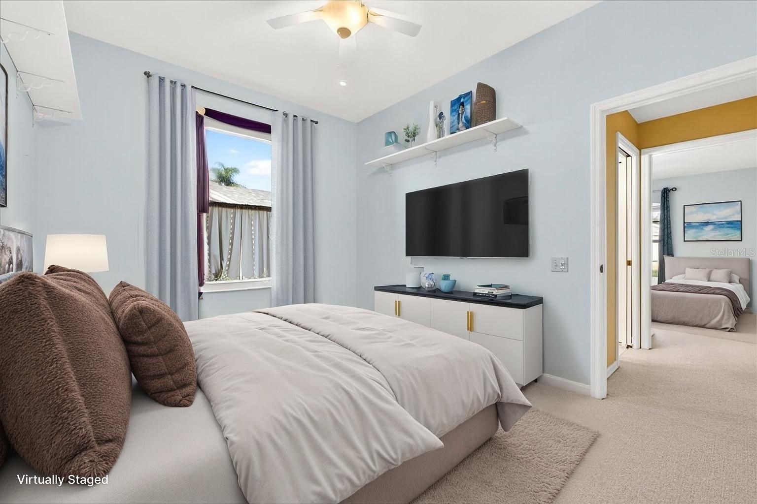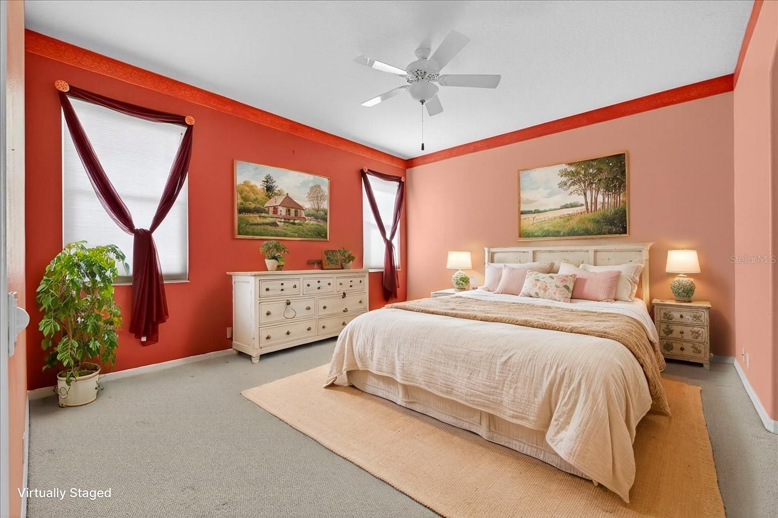 - Ceiling Fan(s), Eat-in Kitchen, Main Level Primary, Thermostat, Walk-In Closet(s), Window Treatments