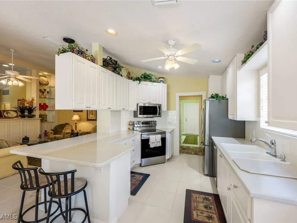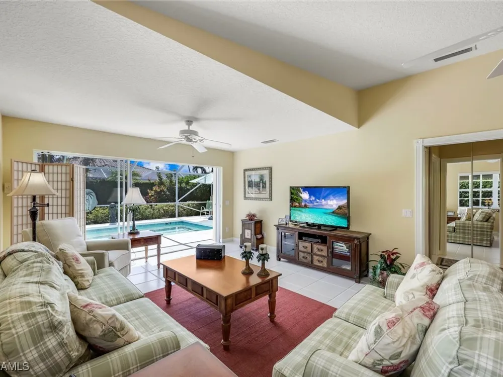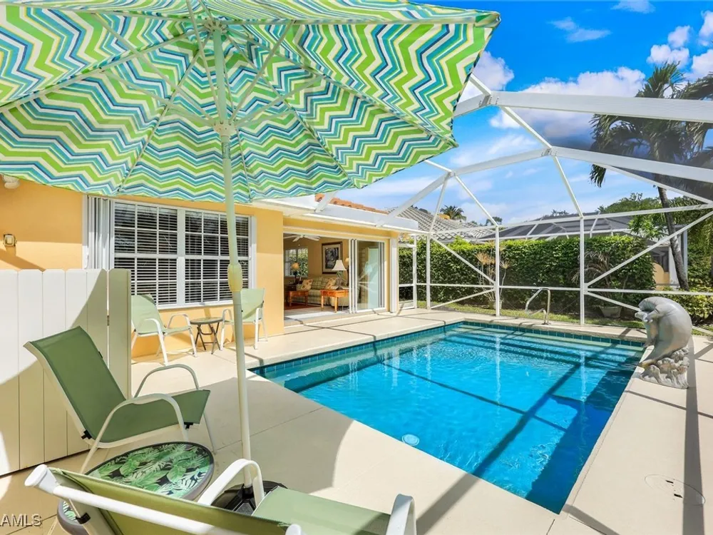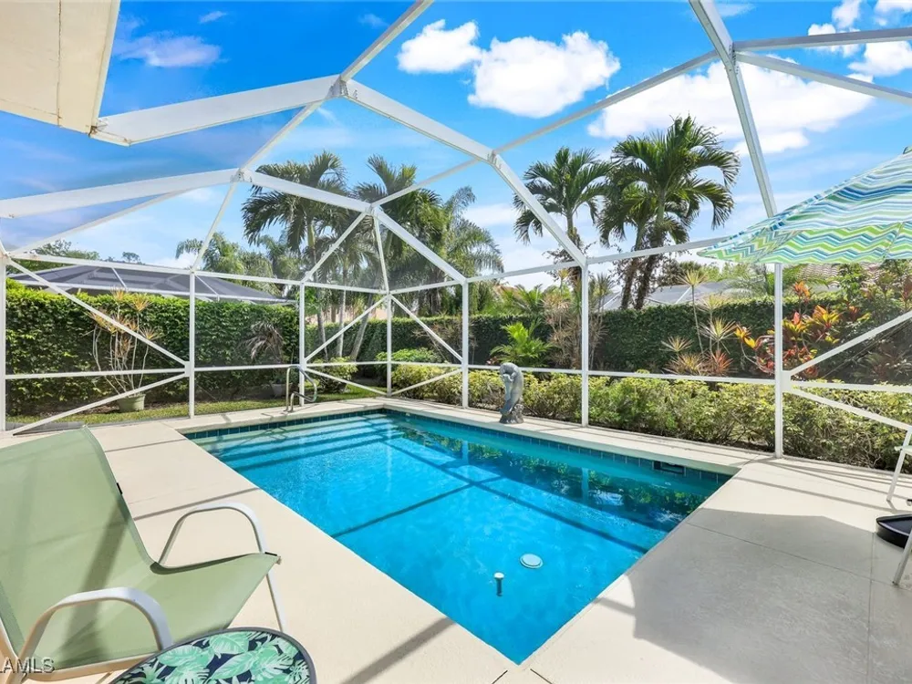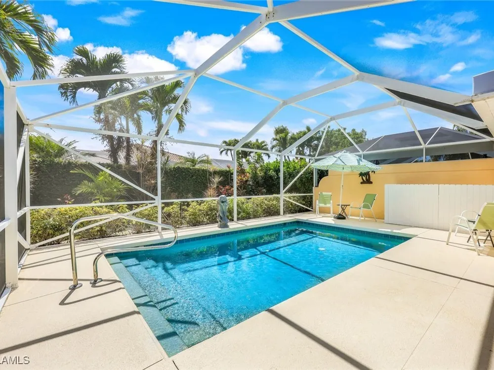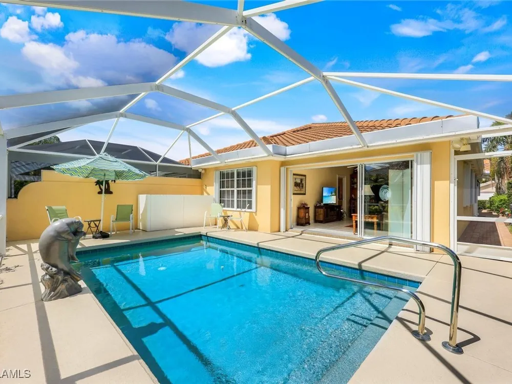 Welcome to YOUR DREAM HOME featuring your own very private pool. You will fall in love the moment you enter this one of a kind light and bright home with an Open floor plan featuring a Cooks Kitchen with Stainless Steel Appliances and Corian countertops making it ideal for entertaining. A New roof was installed in 2019. This pristine 2 Bedroom and 2 Bath Capri attached Villa has tile throughout the home, no carpet at all. Your spacious extended Capri Villa with 1680 Square Feet of Open Living under A/C making it perfect for Entertaining or Working from Home. Your Great Room is centered by a beautiful custom wall unit. Central Vacuum and Security System. Island Walk is famous for its many wonderfull Amenities that are all included in the low HOA fee. The Good Life in Naples just got BETTER!