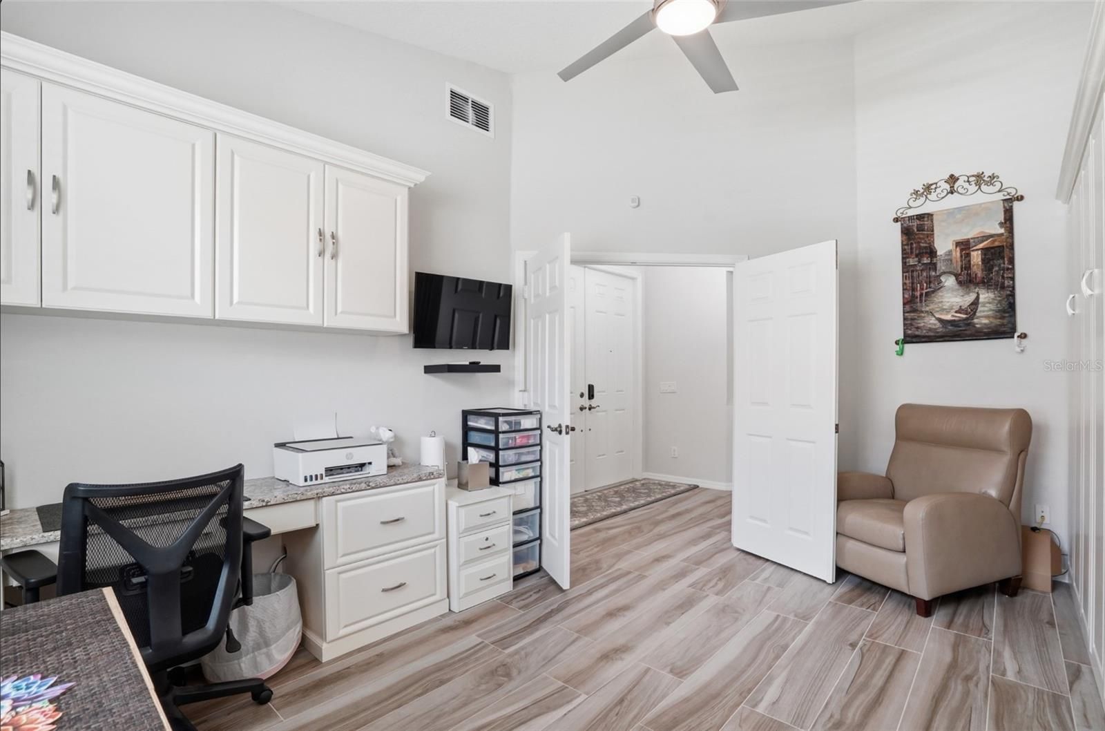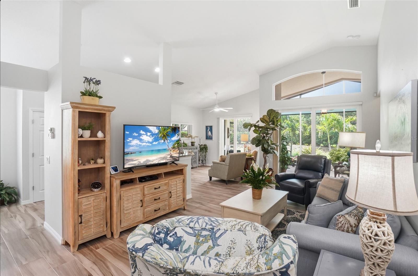 - Ceiling Fan(s), Open Floorplan, Solid-Wood Cabinets, Stone Counters, Vaulted Ceiling(s), Walk-In Closet(s), Window Treatments