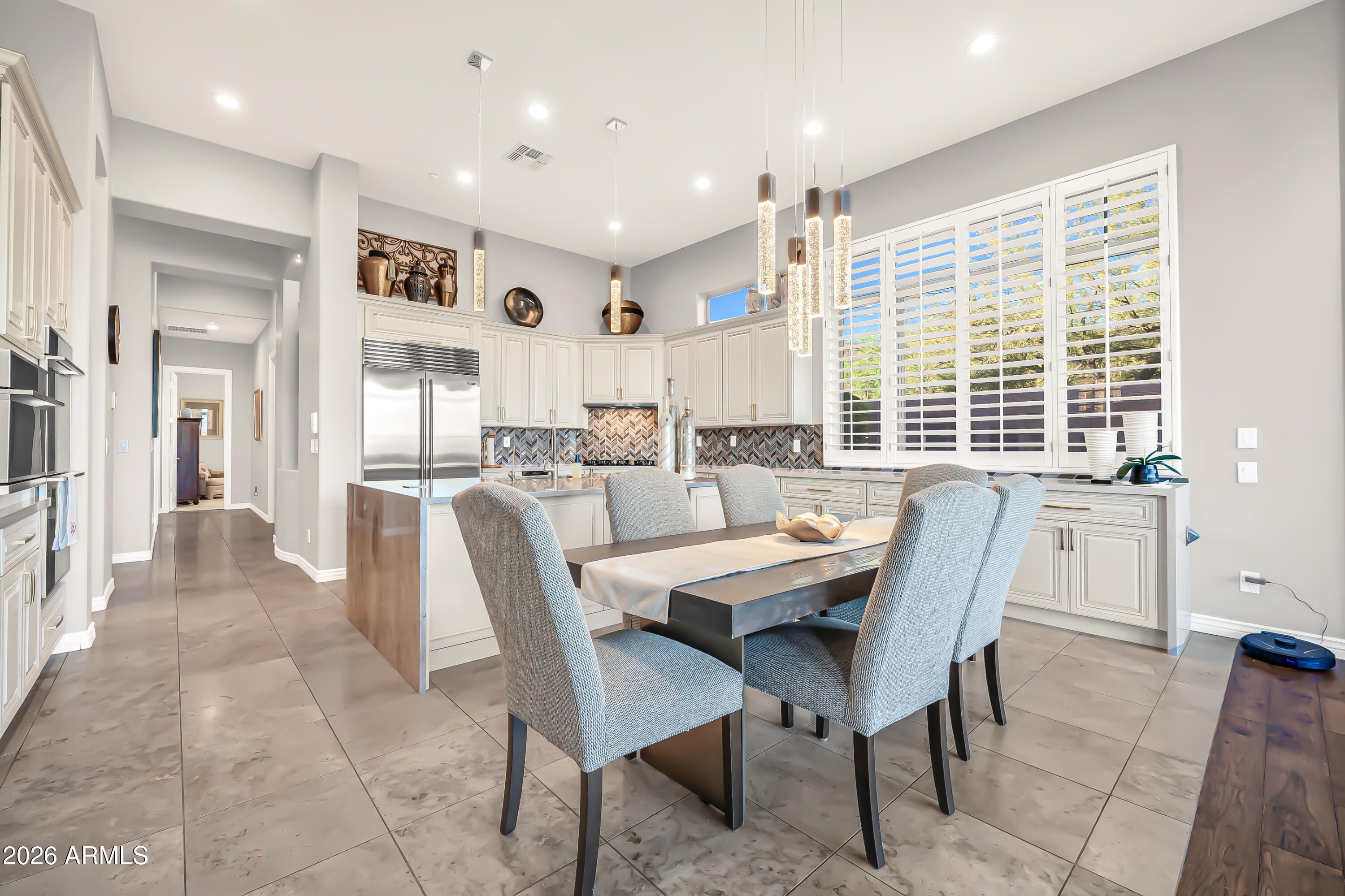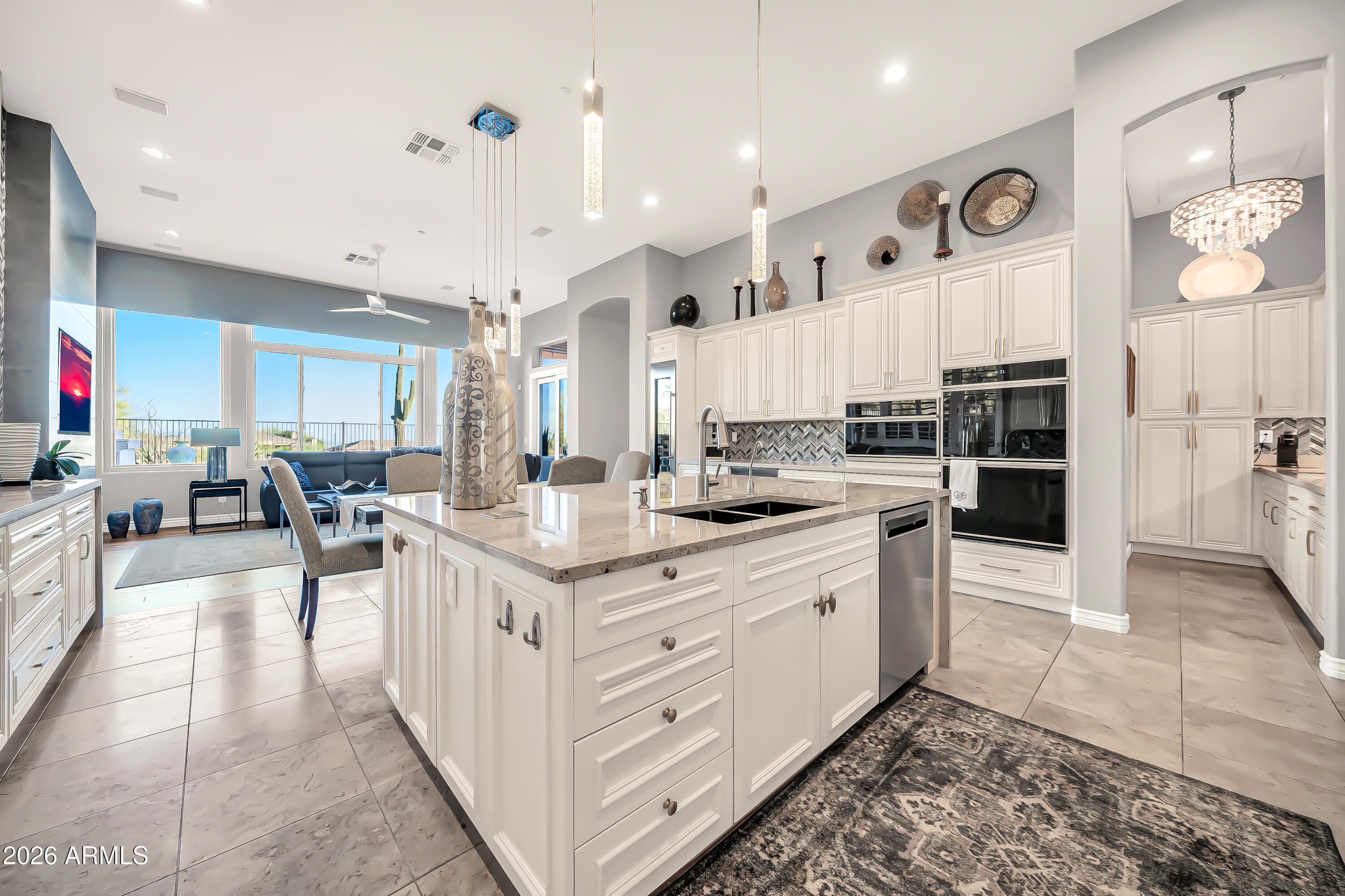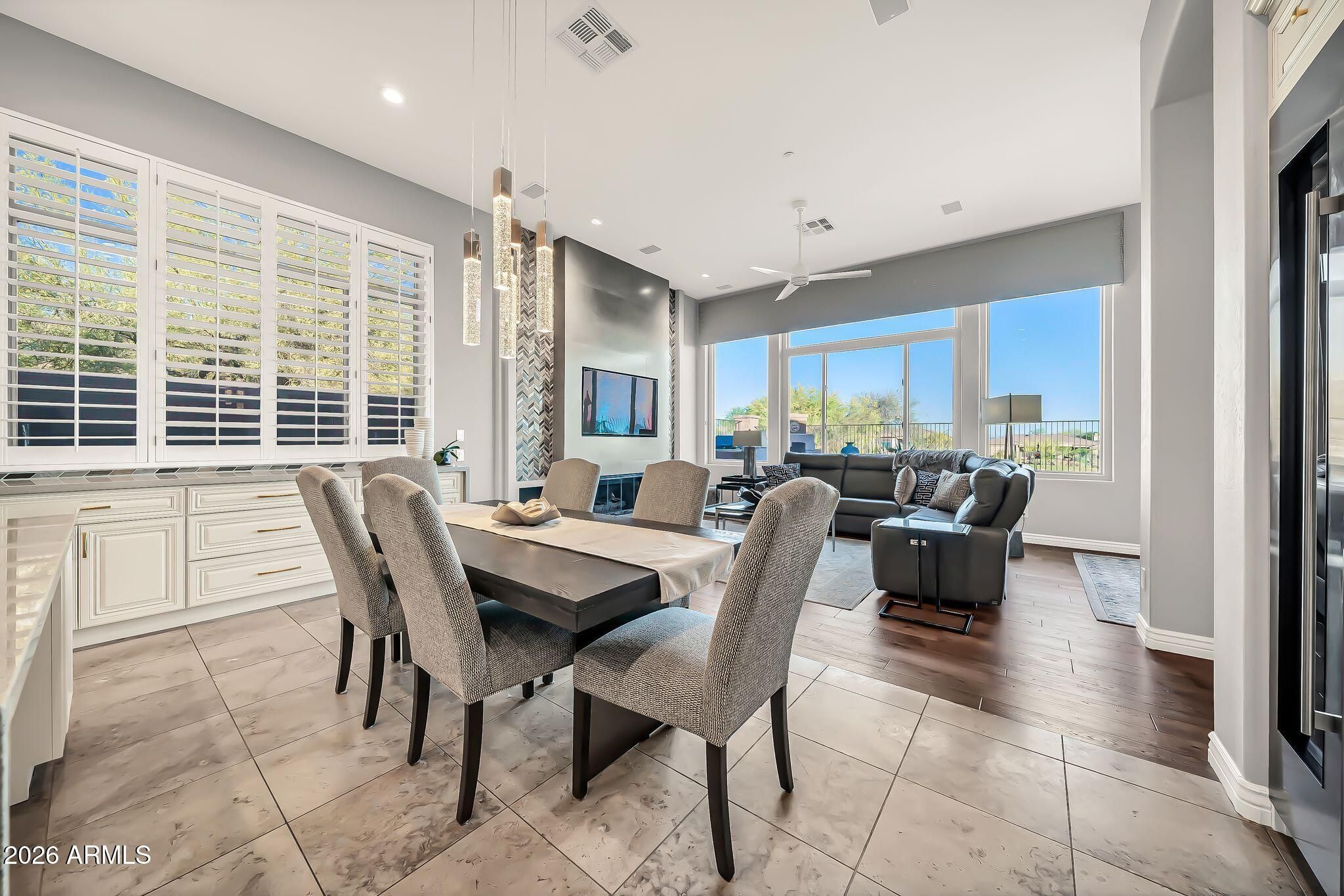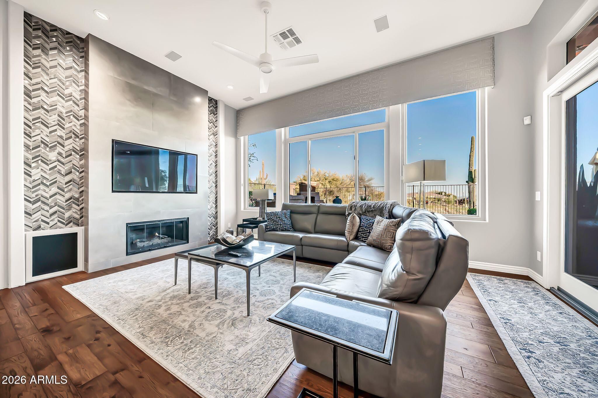 VIEWS,VIEWS,VIEWS! Experience the pinnacle of luxury in this completely renovated Anthem Country Club estate, perfectly positioned on the 14th green to capture stunning golf course views and incredible sunsets. The 4-bedroom, 3.5-bathroom plus den floor plan has been meticulously updated with the finest materials. The luxurious primary suite serves as a private retreat, offering exclusive patio access and a stunning, custom-designed closet. The home's gourmet kitchen is an entertainer's dream, featuring Quartzite counters, a large granite island, and premium stainless steel appliances, complemented by a custom wet bar and spa-like bathrooms with pristine finishings. Your private outdoor oasis is a masterpiece of resort-quality design, featuring a heated pool and spa, a covered patio with custom shades, and a built-in grill. This incredible home was transformed with extensive system and cosmetic upgrades all completed in 2021, including a new roof, new high-efficiency Anderson windows, brand new air conditioning units, and all-new pool equipment, offering total peace of mind. Living here means access to an unparalleled lifestyle, as the community includes golf, clubhouses, dining, pickleball, pools, parks, and fitness centers. This is the epitome of luxury living, crafted for those who appreciate quality, elegance, and modern efficiency.