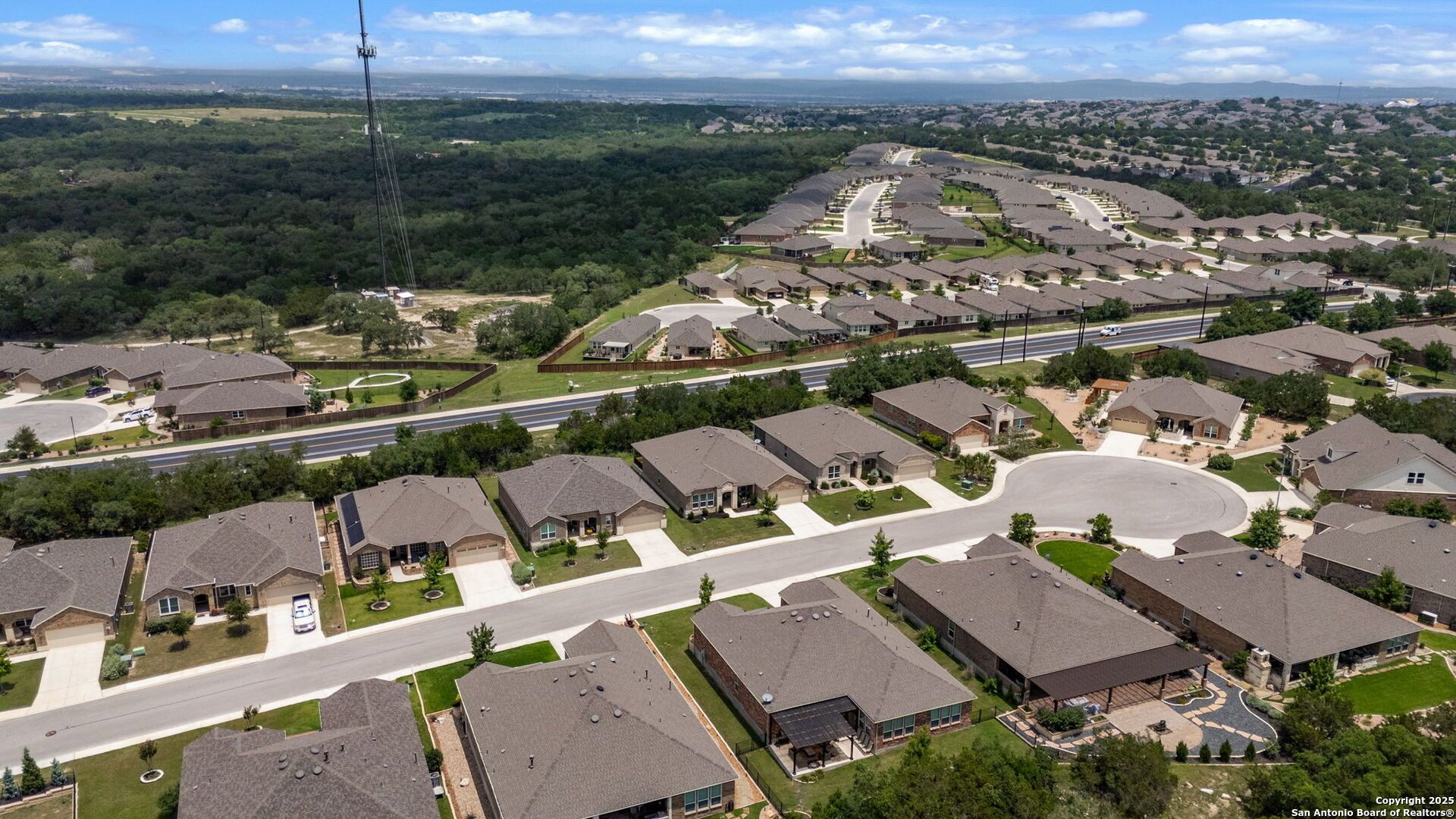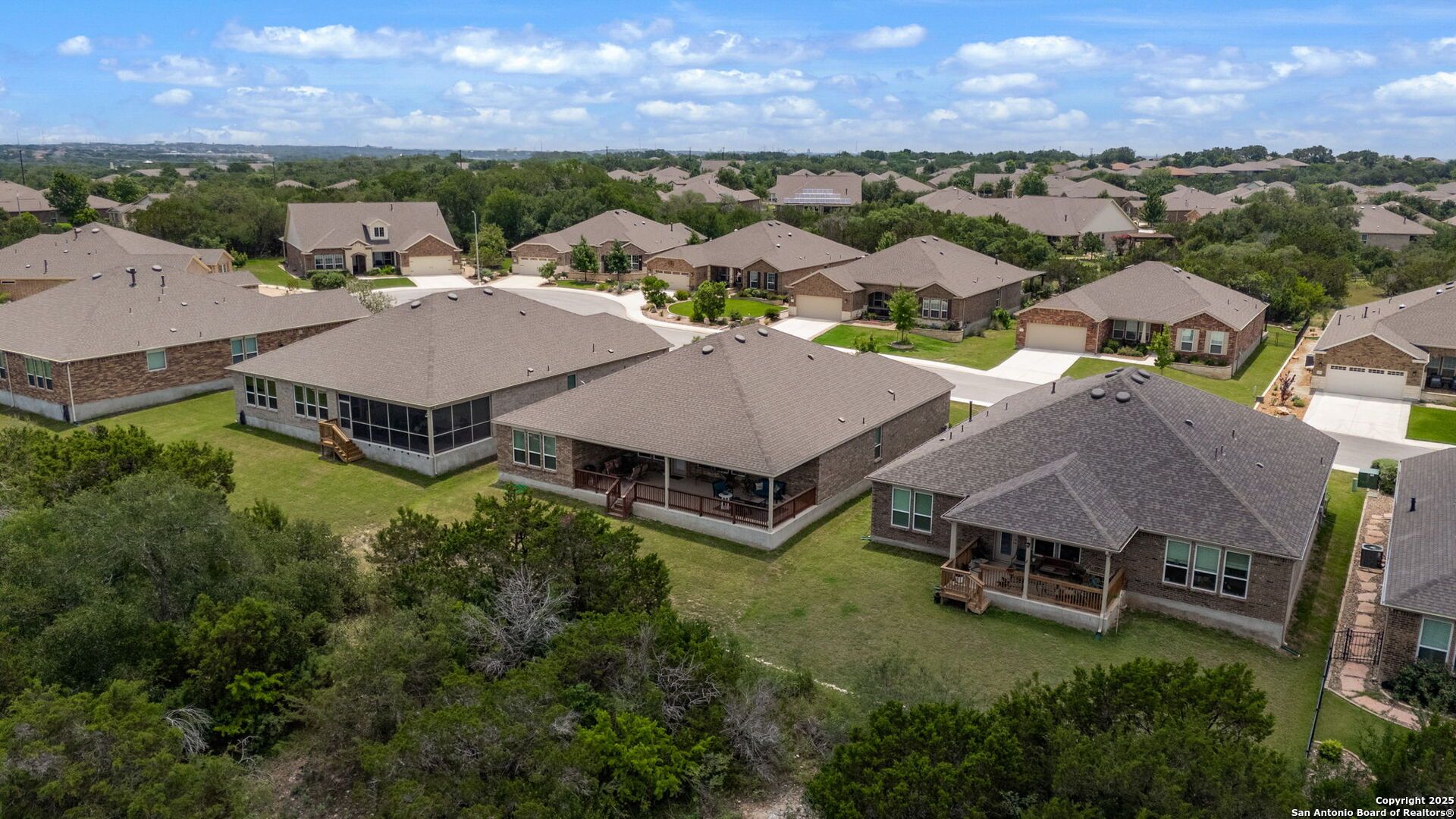 Resort-Style Living in San Antonio's Premier Active Adult Community! Welcome to Del Webb Hill Country Retreat, where comfort meets convenience in this meticulously maintained 2-bedroom, 2.5-bath single-story home, complete with an additional flex space-perfect for a home office, craft room, workout area, or guest retreat. Situated on a quiet cul-de-sac street with peaceful wooded greenspace views, this thoughtfully upgraded home is designed for easy, low-maintenance living. The open-concept layout features a welcoming chef-inspired kitchen equipped with quartz Silestone countertops, a stainless steel sink, 36" gas cooktop, built in oven & microwave, and a spacious walk-in pantry-ideal for both everyday living and entertaining. The serene primary suite offers a relaxing retreat with backyard views, a spa-like ensuite bath with walk-in shower, double vanity, and a generous walk-in closet. A private secondary bedroom with its own full bath ensures comfort for guests or family members. Step outside and unwind on the huge oversized covered patio, perfect for outdoor dining, morning coffee, or relaxing evenings surrounded by nature. The backyard features a blank slate for you to add your own touch backing to tranquil greenspace with mature trees for added privacy. As a resident of this 55+ active adult resort community, you'll have access to top-tier amenities: a 28,000 sq ft clubhouse, indoor and outdoor pools, fitness center, tennis and pickleball courts, walking trails, and a vibrant calendar of clubs and social activities tailored to retirees and active adults. Don't miss this rare opportunity to embrace the Hill Country lifestyle-schedule your private showing today!