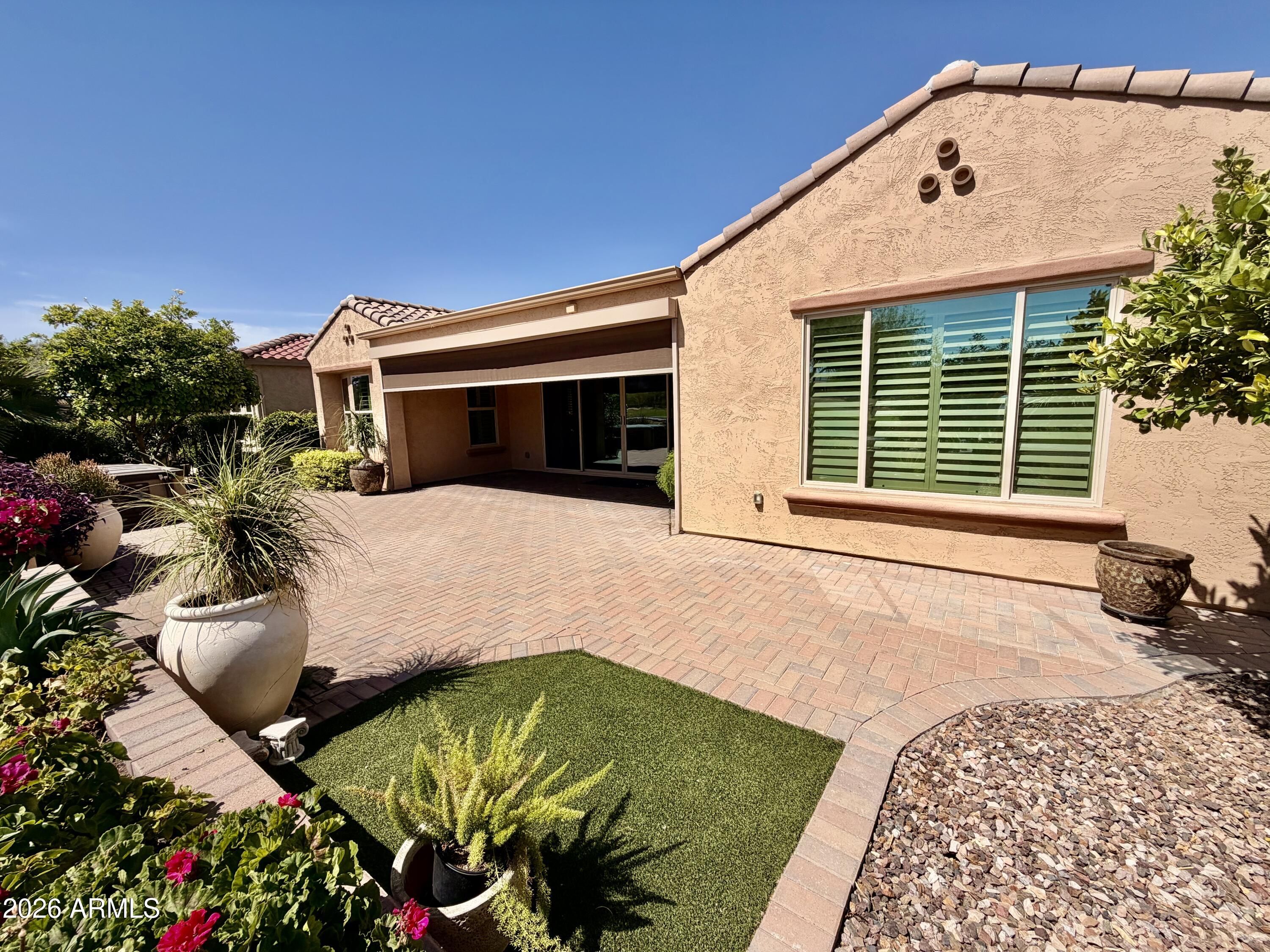 YOU WANT IT ALL? The house offers everything you want! 3 Bedrooms, 2.5 Bathrooms, 3 car garage! Enjoy the stunning views of the 12th green on the Poston Butte Golf Course in Sun City Anthem at Merrill Ranch with this beautiful ''Journey'' This gorgeous home is located on a PREMIUM golf course lot. The home offers abundance of outdoor & indoor entertainment options. The custom landscape with a paver courtyard, extended paver patio, 22' remote controlled sun screens with ceiling heaters creates a warm outdoor room. Stucco planter boxes are full of beautiful plants. The living space is just beautiful with highly upgraded details. Large open great room with large kitchen, island, premium cabinets, granite counters. Large pantry & butler's pantry! The den is extra large with door The third bedroom area offers private bathroom which is split from primary area. Could even be guest quarters or mother-in-law area. This home is beautifully upgraded inside and out! You won't be disappointed!