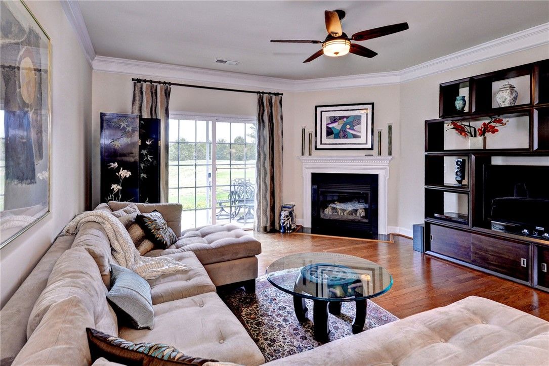 Welcome home to 4227 Harrington Commons, presenting a sought after & charming "Boxwood" home! Stunning and convenient one level living featuring a large Primary En Suite with two closets, spacious bath area, a guest bedroom adjacent to full bath and an office with custom built-in cabinetry/shelving with plenty of space for a pull out sofa for added guest space. An upgraded kitchen design provides generous cabinet & countertop space, a large island with seating, all flowing into a lovely dining area and family room. The patio overlooks an impressive panoramic view of the golf course. Enjoy a cup of coffee in the morning or a peaceful end to your day on the spacious front porch. Close proximity to the clubhouse, amenities and front gate. Time to enjoy the good life in Williamsburg's premier 55+ Resort Style community.