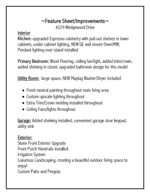 Welcome Home to 4229 Wedgewood Drive- featuring the popular Patrick Henry design- with just under 2400sf of convenient & elegant one level living. Gleaming wood floors and freshly painted rooms throughout the main living areas. The kitchen features upscale cabinetry, generous granite counter space, a NEW wall mount oven/microwave, counter seating at the island and an eat-in area with lovely outdoor views. There's a large primary en suite with upgraded bath area, two guest bedrooms and a flex room- perfect for an office. The spacious dining area and family room adds to the perfect flow & design of this home. There's even a storage room for all your special extras! Plenty of outdoor living space to enjoy on the charming covered front porch or lush patio/pergola out back, surrounded by an upscale landscaped setting. Time to enjoy resort style living in Williamsburg's premiere 55+ community.