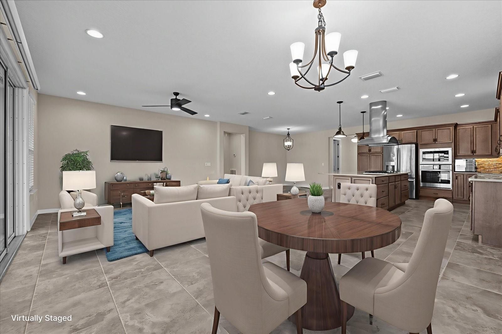 Welcome home to this stunning Shea Refresh home in Ocala Preserve - where comfort, convenience, and lifestyle come together effortlessly. Here you’re not just buying a home – you’re embracing a lifestyle. Thoughtfully designed, this home features open concept living with a spacious great room, dining area, and a flex/office space. The spacious chef’s kitchen includes upgraded cabinets, and gas cooktop on the large island with quartz countertops. The sliding glass doors include a remote-controlled shade for privacy and temperature efficiency. The large primary bedroom, ensuite bathroom and walk in closet add to the luxurious resort feeling of this home. The laundry room has two doors with one conveniently connecting to the walk-in closet simplifying your life. The screened in lanai offers privacy and shade with remote controlled shades. The large beautifully landscaped backyard includes privacy and is spacious enough for entertaining and your fur babies. The community offers exceptional resort-style amenities, including a clubhouse, golf course, restaurant, spa, multiple pools, private lake access, and sports courts including pickleball and tennis. Only 5 miles from the World Equestrian Center and 12 miles from HITS. The WEC not only hosts top-level horse competitions but offers boutique shopping, diverse dining options, stylish hotel accommodations, and many community events. Also, close to grocery stores, Starbucks, banks, Gold’s Gym, and dining out. Whether you prefer a quiet morning strolling through the beautiful grounds, a round of golf, an active day using the many amenities, participating in or watching a horse show, the choice is yours. Ocala Preserve: It’s more than a home…it’s a lifestyle! ONE OR MORE PHOTOS HAVE BEEN VIRTUALLY STAGED.