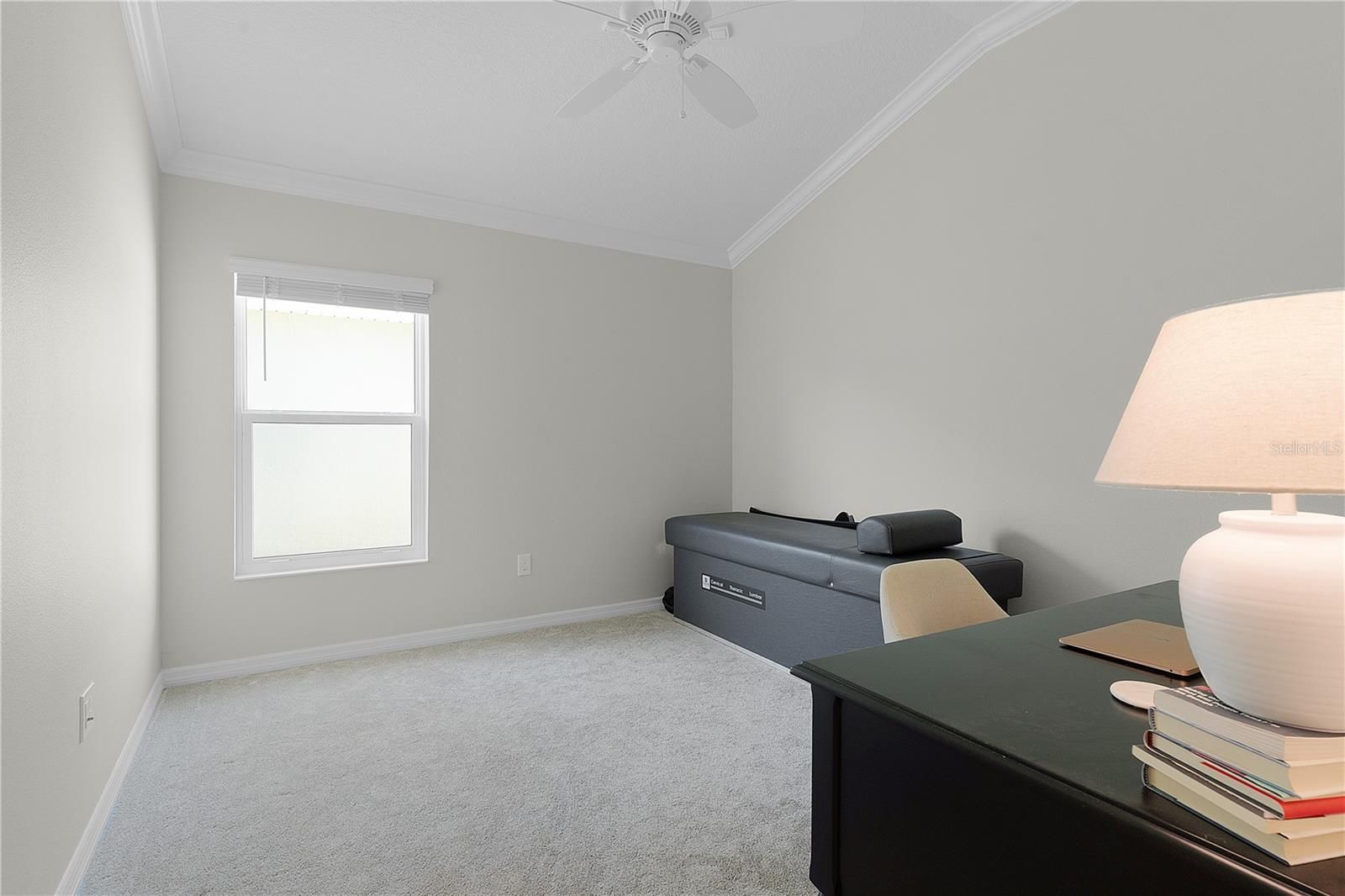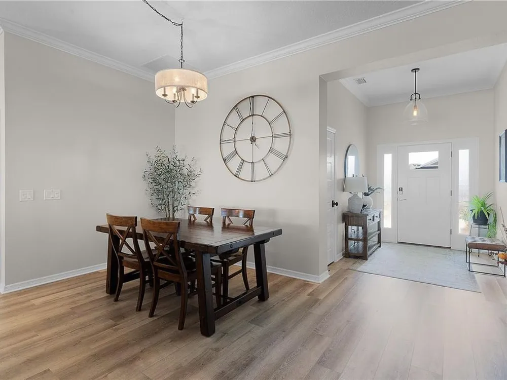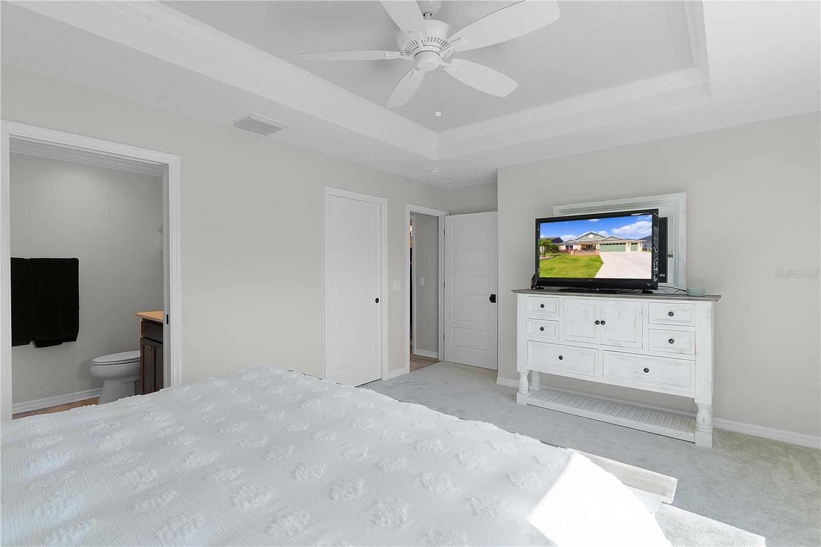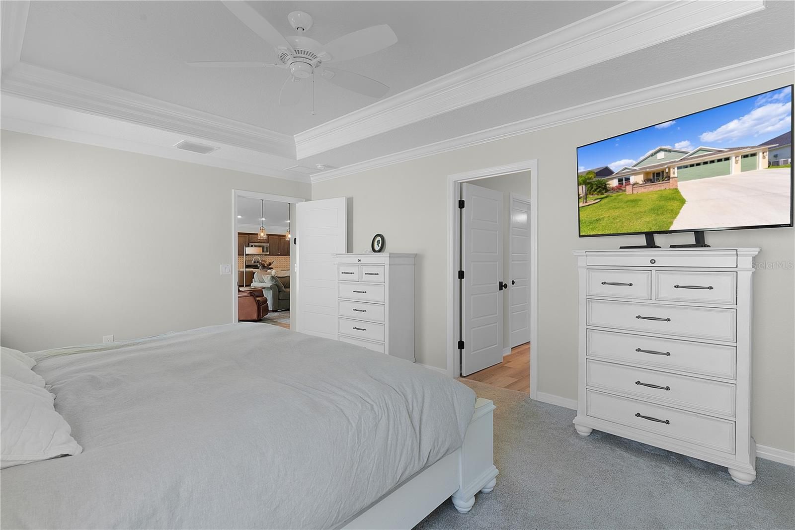 - Ceiling Fan(s), Crown Molding, Open Floorplan, Main Level Primary, Stone Counters, Thermostat, Vaulted Ceiling(s), Walk-In Closet(s), Window Treatments