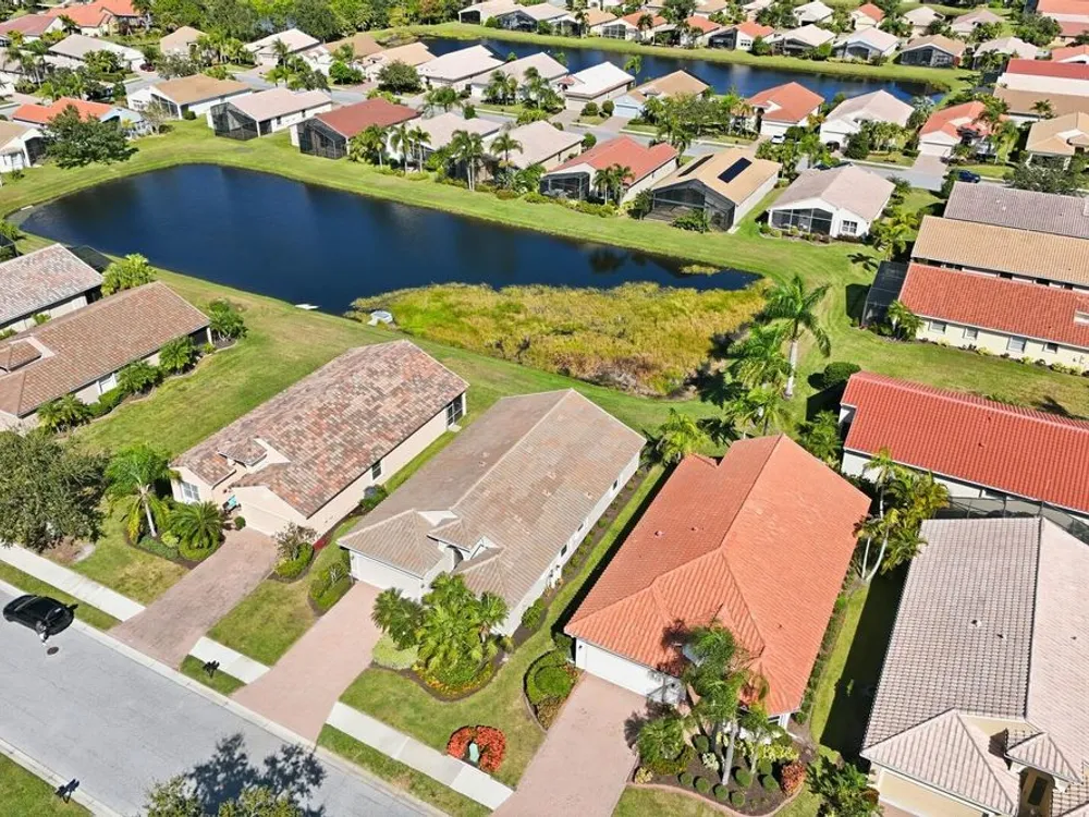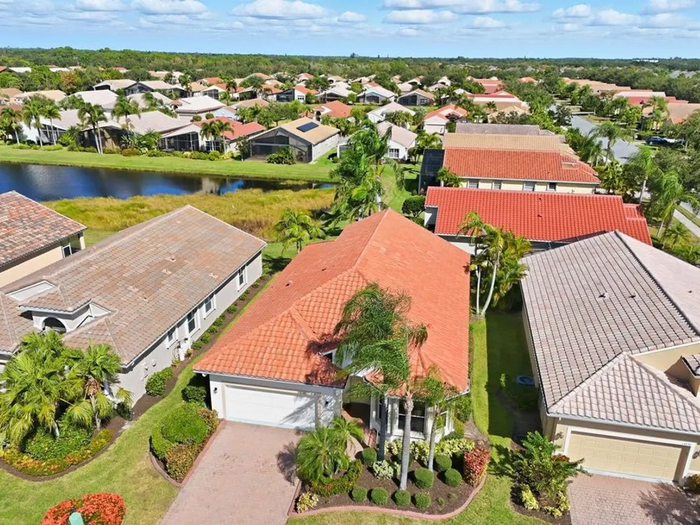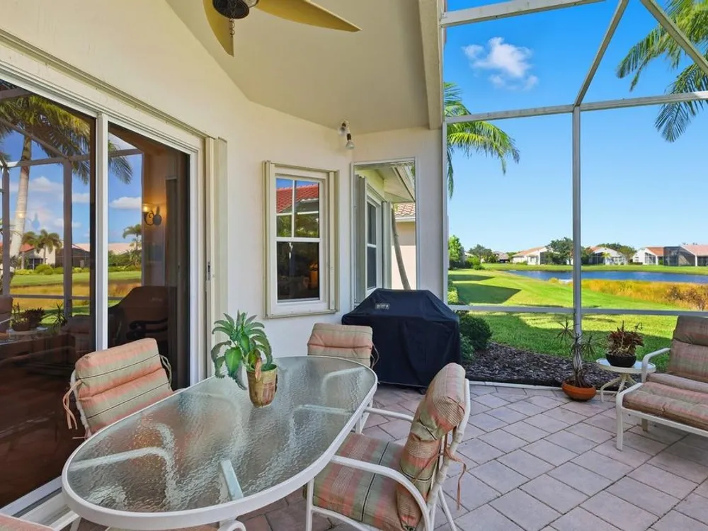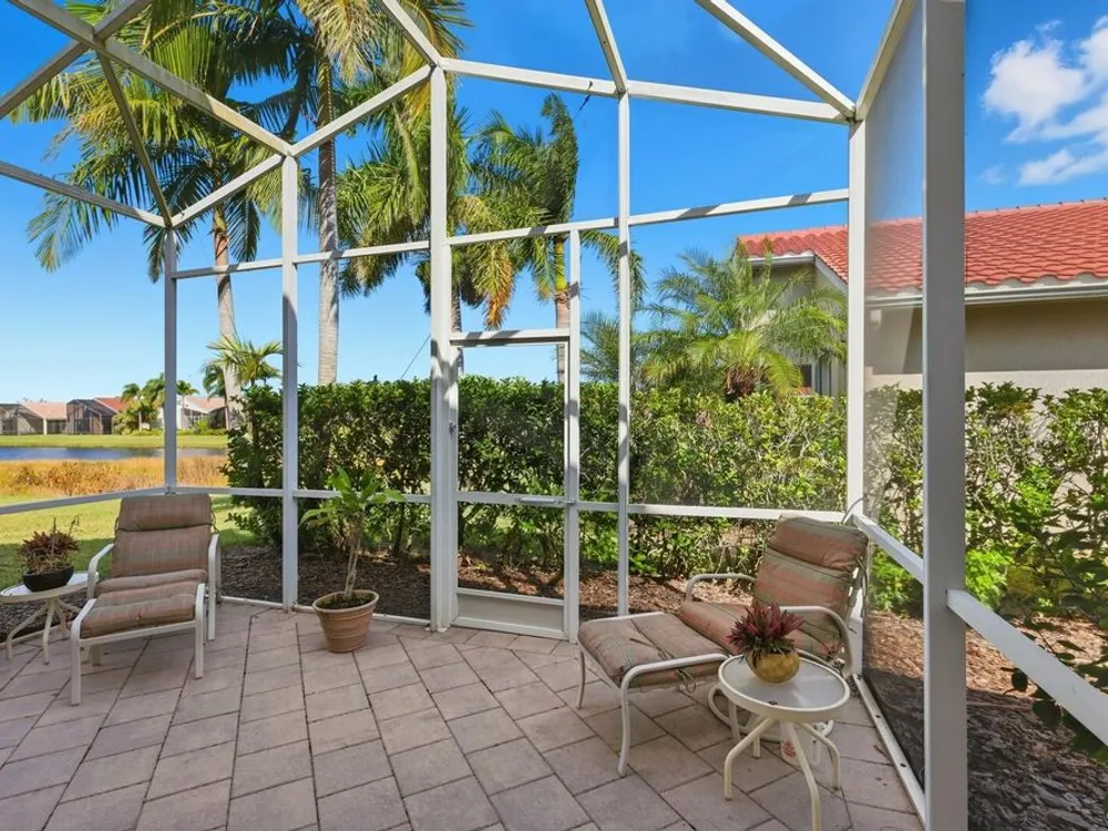 Welcome to your dream home in The Cascades at Sarasota, one of the area's most sought-after 55+ gated communities. This beautifully maintained West Indies floor plan offers over 2,100 square feet of move-in ready living space with 3 bedrooms, 2 baths, and an attached 2-car garage. From the moment you step inside, you will be greeted by soaring ceilings, gleaming inlay tile foyer, and thoughtful upgrades throughout. The heart of the home is the kitchen, where 42" cabinetry with roll-out shelving, Kashmir Gold granite countertops, custom backsplash, and GE Profile appliances make cooking and entertaining a delight. The open floor plan is designed for entertaining, comfort and privacy, with the Owner's suite and guest rooms thoughtfully separated. From the primary suite, dining room, breakfast nook, and extended screened lanai, you will enjoy tranquil partial water views, the perfect backdrop for your morning beverage or evening gatherings. The spacious primary suite offers true luxury with a custom built-in closet, dual sinks, upgraded cabinetry, and a large walk-in shower with bench. Additional highlights include a freshly painted exterior, a NEW Trane HVAC, energy-efficient wall insulation, easy-close accordion hurricane shutters, and custom window treatments, all adding peace of mind and year-round comfort. Step outside to your extended paver lanai and patio, surrounded by tropical landscaping and serene lake views, a wonderful space to relax and enjoy the Florida backdrop. Living in The Cascades at Sarasota means more than just a beautiful home, it's a vibrant lifestyle. Residents enjoy resort-style indoor and outdoor pools, a state-of-the-art fitness center, a 25,000 sq ft clubhouse with ballroom, Har-Tru tennis courts, pickleball courts, bocce, and an abundance of clubs and activities. All of this comes with the convenience of being close to downtown Sarasota, airports, shopping, dining, golf, and the world-renowned beaches of Siesta, Lido, and Longboat Key. Do not miss your chance to own this exceptional home that combines elegance, comfort and an active lifestyle, all in one perfect package.