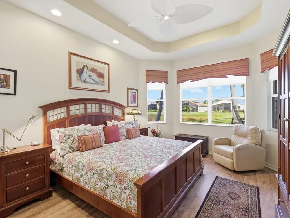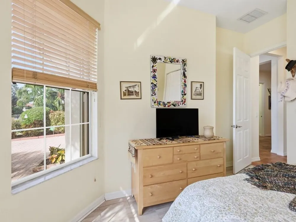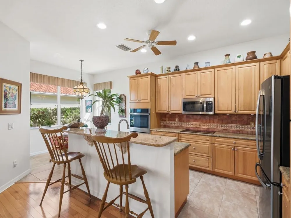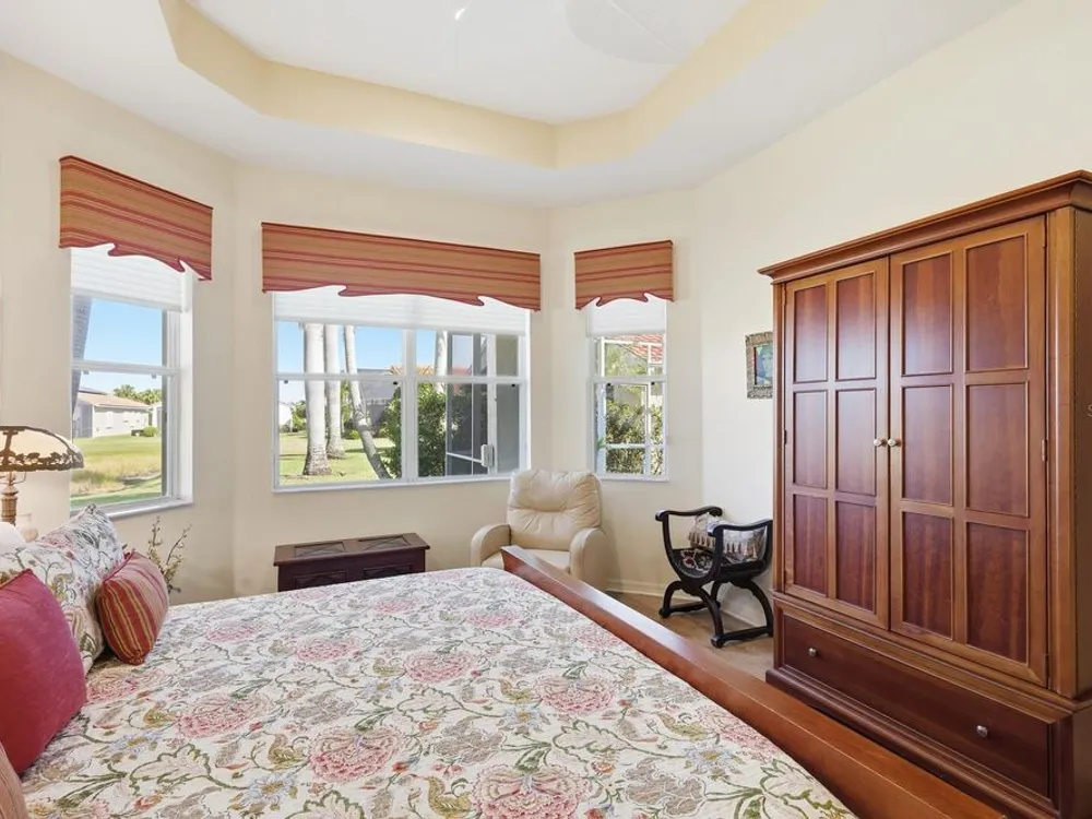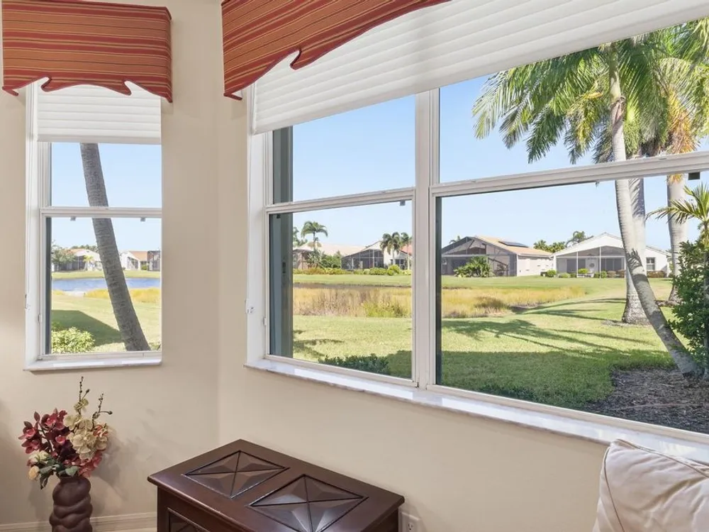 Welcome to your dream home in The Cascades at Sarasota, one of the area's most sought-after 55+ gated communities. This beautifully maintained West Indies floor plan offers over 2,100 square feet of move-in ready living space with 3 bedrooms, 2 baths, and an attached 2-car garage. From the moment you step inside, you will be greeted by soaring ceilings, gleaming inlay tile foyer, and thoughtful upgrades throughout. The heart of the home is the kitchen, where 42" cabinetry with roll-out shelving, Kashmir Gold granite countertops, custom backsplash, and GE Profile appliances make cooking and entertaining a delight. The open floor plan is designed for entertaining, comfort and privacy, with the Owner's suite and guest rooms thoughtfully separated. From the primary suite, dining room, breakfast nook, and extended screened lanai, you will enjoy tranquil partial water views, the perfect backdrop for your morning beverage or evening gatherings. The spacious primary suite offers true luxury with a custom built-in closet, dual sinks, upgraded cabinetry, and a large walk-in shower with bench. Additional highlights include a freshly painted exterior, a NEW Trane HVAC, energy-efficient wall insulation, easy-close accordion hurricane shutters, and custom window treatments, all adding peace of mind and year-round comfort. Step outside to your extended paver lanai and patio, surrounded by tropical landscaping and serene lake views, a wonderful space to relax and enjoy the Florida backdrop. Living in The Cascades at Sarasota means more than just a beautiful home, it's a vibrant lifestyle. Residents enjoy resort-style indoor and outdoor pools, a state-of-the-art fitness center, a 25,000 sq ft clubhouse with ballroom, Har-Tru tennis courts, pickleball courts, bocce, and an abundance of clubs and activities. All of this comes with the convenience of being close to downtown Sarasota, airports, shopping, dining, golf, and the world-renowned beaches of Siesta, Lido, and Longboat Key. Do not miss your chance to own this exceptional home that combines elegance, comfort and an active lifestyle, all in one perfect package.