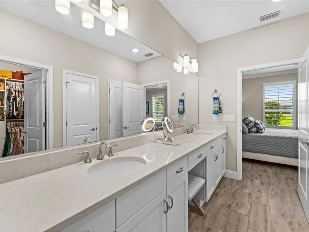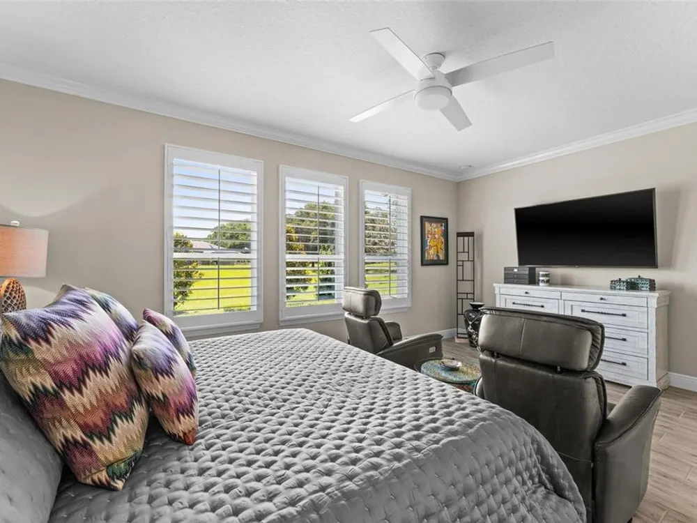 Ready to Move-In! Award Winning Home, built in 2020 by SHEA Homes builder, known for his high quality homes. This pristine 3 Bedrooms, 2 bathrooms and extra 1 Half Bathroom, tiled throughout, located on a bigger lot with open view on the grassy retention area and the 18-hole executive golf course, has multiple upgrades: Kholer Generator 26K, lightening rods, extra landscaping, extended driveway, water softener, Epoxy floor in the 2 car garage, window treatments, shutters, all closets done and more. Covered Patio facing Sunrise, nice outdoor paved area with a custom made outdoor BBQ. Privacy and space. Furniture and Golf cart are for sale extra. Come and enjoy this very well located gated community, only 5 min from the renowned World Equestrian Center, Publix supermarket and nice restaurants. Relax by the community pool, take advantage of the multiple activities offered to its residents, gym classes, spa, beauty salon, kayak, fishing, tennis, pickleballs, miles of trails for your morning walk and bike rides. Pet Friendly with it dog parks. Low maintenance that includes your landscaping and No CDD for this home. It is a 55+ street in this multi generational friendly community.
