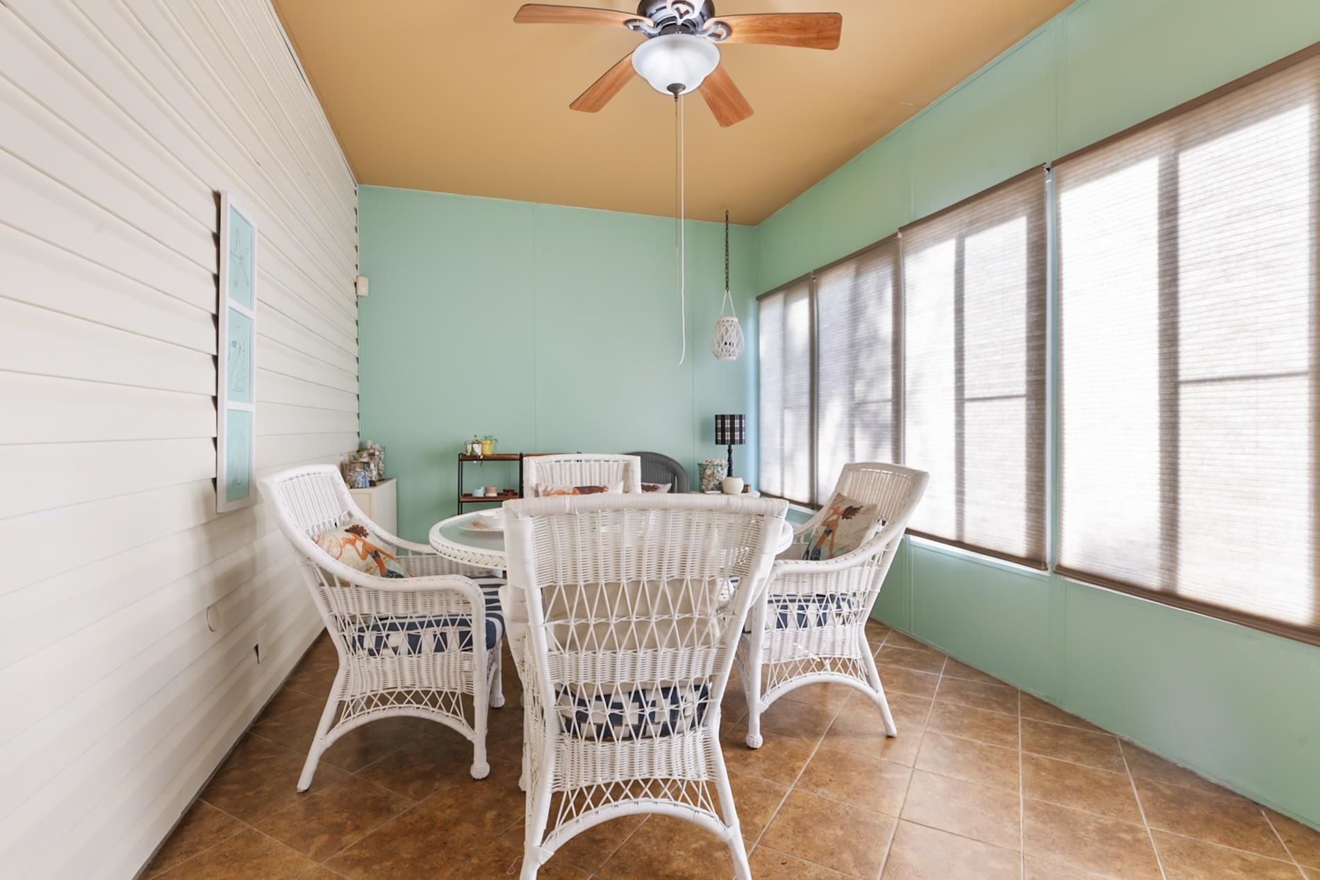 - Ceiling Fan(s), Main Level Primary, Separate Shower, Vanity, Vaulted Ceiling(s), Walk-In Closet(s), Window Treatments, Bedroom on Main Level, Stainless Steel Appliances, Solid Surface Counters