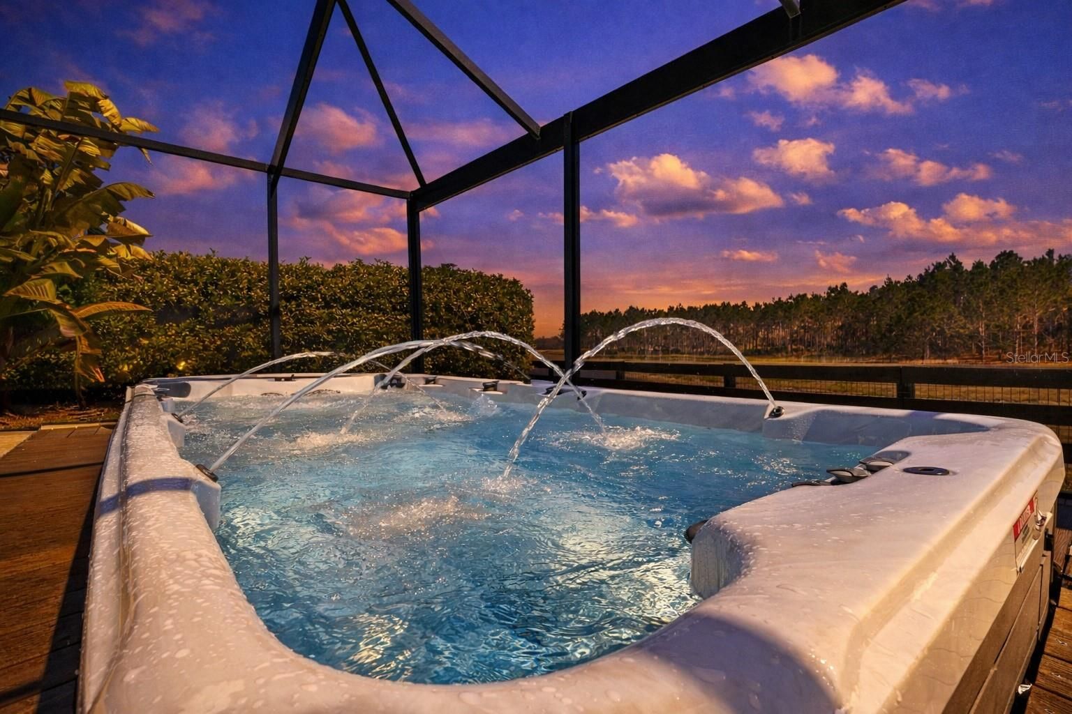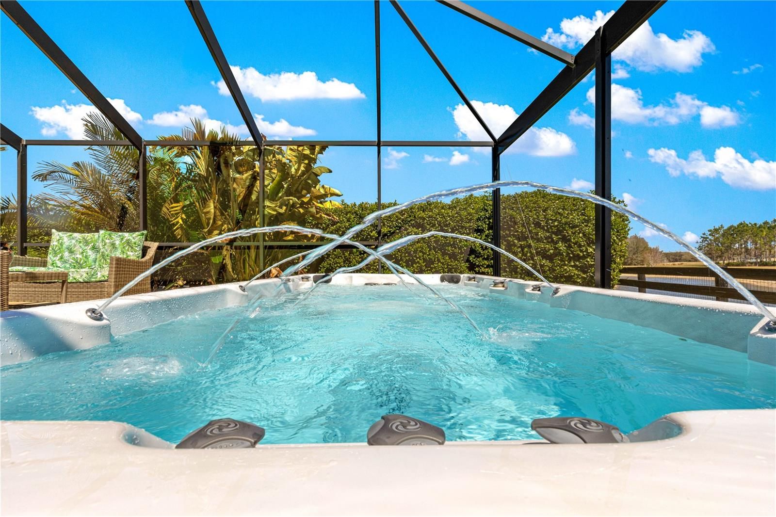 *COMPLETE PRIVACY* FANTASTIC TRAVERTINE LANAI *WATER VIEWS * WILDLIFE CORRIDOR * RESISTANCE POOL/ SWIM SPA * NEW LVP FLOORING * STUNNING DESIGNER “LILY” WITH PANORAMIC PRESERVE, WATER & CHAMPIONSHIP GOLF VIEWS IN The Villages Florida This isn’t just a home — it’s your private Florida Mediterranean escape. Perfectly positioned in the Village of Osceola Hills, this exceptional Designer “LILY” model captures breathtaking views of the Florida State protected Eleanor Lee Wiechens Preserve, with a serene waterway, soaring eagles, and sweeping championship golf course vistas creating a living backdrop of tranquility and privacy. A GRAND MEDITERRANEAN ENTRANCE featuring a jewel-tone stained glass door welcomes you into soft neutral interiors, elegant architectural detailing, and seamless indoor–outdoor flow. New luxury vinyl plank flooring and refined turned wall corners enhance the sophisticated ambiance throughout the open-concept floorplan. Expansive windows frame the natural beauty beyond, filling the home with abundant natural light. RESORT-STYLE OUTDOOR LIVING defines this property. The expansive loggia and floor-to-roofline screened lanai showcase Italian travertine and provide the perfect setting for alfresco dining, peaceful mornings, and relaxing evenings under the stars. Lush tropical landscaping ensures exceptional privacy with no rear neighbors — just protected preserve views. THE SPA EXPERIENCE is truly the crown jewel of this retreat: the MAAX MX6 heated swim spa featuring 42 jets, adjustable current, aquatic fitness capabilities, and dual full-body hydrotherapy chairs. A $256,959 spa and patio expansion, along with comprehensive 2026 system updates, provide long-term peace of mind and effortless enjoyment. Southeast sun exposure enhances morning light and moonlit swims, while daily wildlife sightings — Great Blue Herons, White Pelicans, Sandhill Cranes, Spoonbills, and more — become part of your everyday lifestyle. Inside, the popular Lily floorplan offers spacious living and dining areas ideal for entertaining, a well-appointed kitchen with abundant cabinetry and workspace, and a private primary suite designed for comfort and relaxation. Guest accommodations provide welcoming space for family and friends. A PREMIER LIFESTYLE & INVESTMENT opportunity — located in low-tax Sumter County with strong year-round rental demand. Optional Yamaha golf cart and Clavinova baby grand piano available separately. Residents enjoy access to executive and championship golf courses, recreation centers, pools, dining, shopping, nightly entertainment, and hundreds of clubs and activities throughout The Villages. NATURE. LUXURY. PRIVACY. Your private tour awaits — discover a sanctuary designed for peaceful living and unforgettable moments. amenities fee - $204 per month - maintenance $653.62 per year - bond payment $1,426.67 per year - balance $16,354.53 - BUYER'S AGENT TO VERIFY