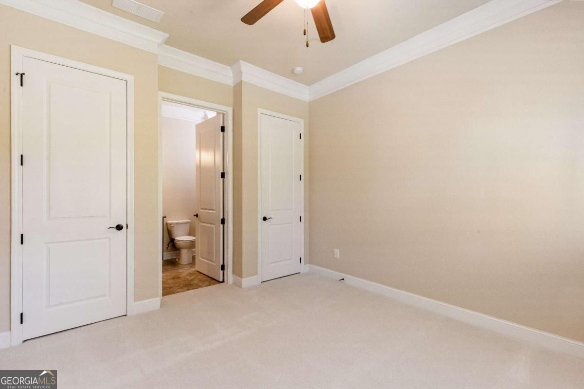 Nestled in a beautifully maintained 55+ gated community, this 4-bedroom, 3-bath home built in 2017 offers comfort, convenience, and peace of mind. Freshly painted with brand-new carpet throughout, this home feels like new and is completely move-in ready. The open-concept layout features a spacious living area, a modern kitchen with plenty of cabinetry and counter space, and a cozy dining area perfect for everyday meals or hosting friends. The primary suite on the main level provides a private retreat with a large ensuite bath and walk-in closet. Additional bedrooms offer flexibility for guests, hobbies, or a home office. Enjoy the low-maintenance lifestyle this community provides - with lawn care included and access to wonderful amenities designed for active adults. Community garden, saltwater pool, dog park, clubhouse, and a busy social calendar! Located just minutes from downtown Woodstock's shops, dining, and entertainment, as well as parks and walking trails, this home offers the best of both relaxation and convenience. Don't miss the opportunity to experience the easy, secure, and social lifestyle you deserve!