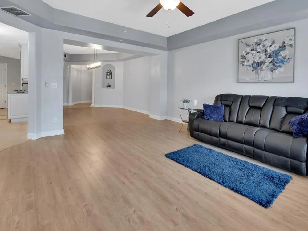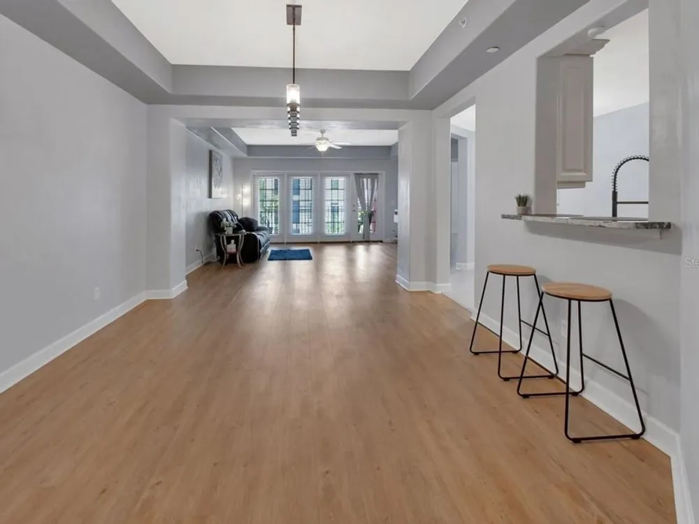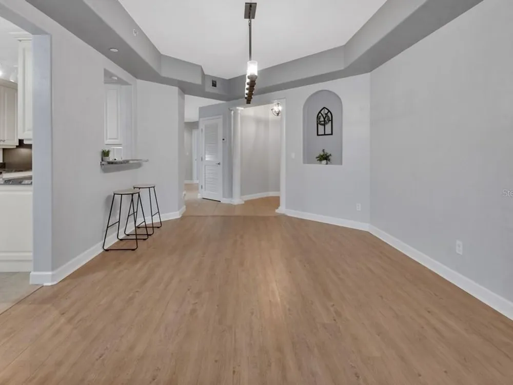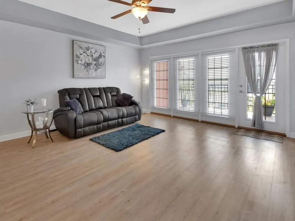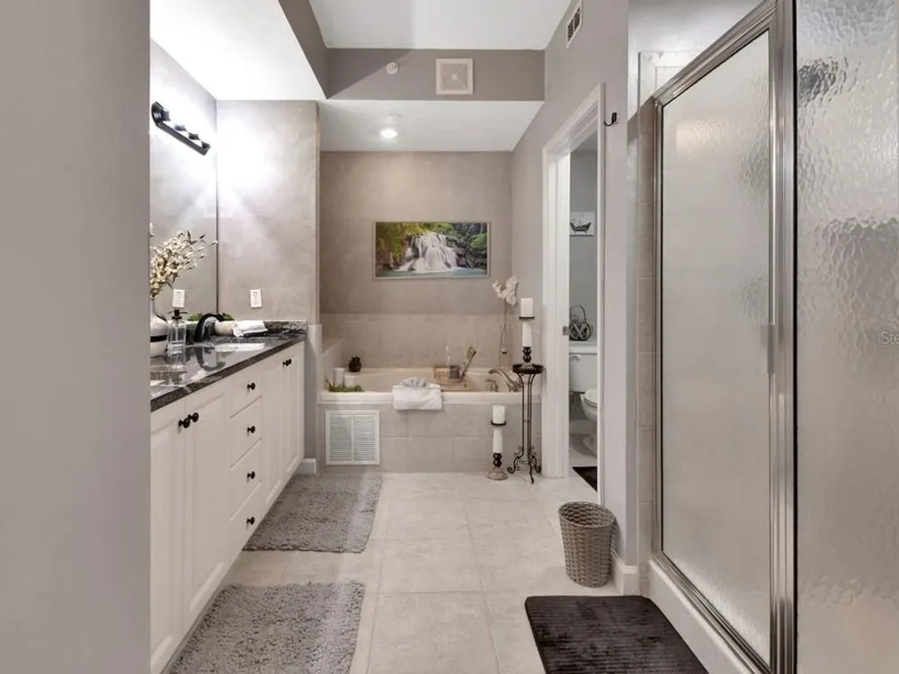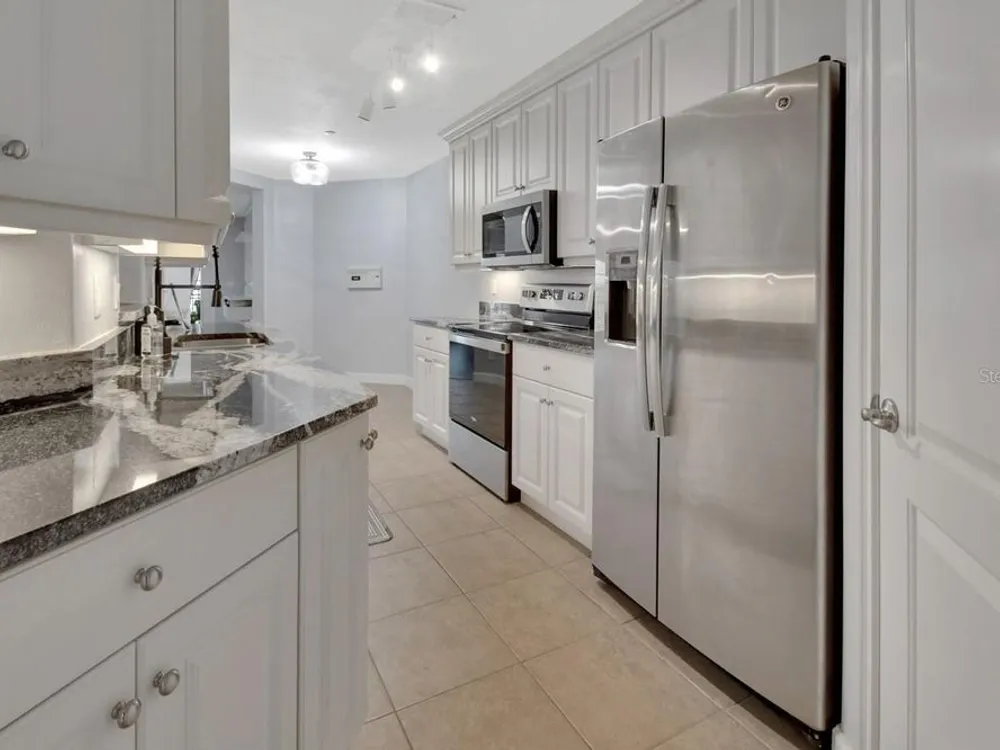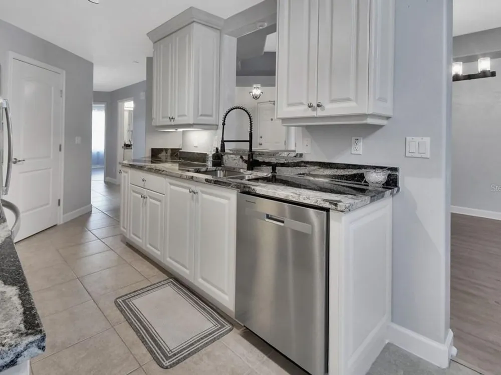 Lifestyle living that you will love! Located in Tuscany Square condo GATED community in Venetian Bay. Just below you on the ground level is The Bistro 424 Restaurant, Grocery Market Place, Precision Eye Institute, Snap Fitness 24/7, The Spa and Boren Beauty Salon, The Happy Deli Cafe’, and The Brew Pub, while enjoying the courtyard and relaxing at lake front area. This beautifully updated third floor condo features 3 bedrooms, and 3 full bathrooms with lofty ceilings and an open concept design. Enjoy a formal dining area and eat-in kitchen perfect for entertaining. The kitchen features white cabinets, stunning granite countertops, stainless steel appliances, a spacious custom pantry, and tile flooring. The adjoining living area opens to a private balcony and seamlessly connects to the primary suite. Features included a double vanity, walk-in shower, jet tub, private toilet close, lien closet, his and her designer closets. At the opposite end of the home, you will find two additional master suites. One suite has a private bath with a shower/tub combination and a single vanity with his and her closets. The other suite has access to a hall bath that can be closed off for guest privacy, featuring a walk-in shower, single vanity, and linen closet. New vinyl flooring was added throughout the home. Tile is in kitchen/dinette, laundry room, and bathrooms. The laundry room includes a washer and dryer, and a soaker sink, with cabinets for additional storage. Each building has its own elevators. The stairwell is located at the front door of your unit if you desire to take the stairs instead. This unit has 2 oversized single car garages, one having additional parking space in front of it. Condo association dues include building insurance, premium channels on cable high speed internet, pest control, maintenance of the structure and tile roof, water is included with a set amount monthly water/trash/sewer bill. You will love the newest addition being added, Tiki Cove, Bar and Restaurant, the owner will purchase a one year membership for the buyer's. Venetian Bay is a golf club community with membership open to the public. If you are an avid golfer you will love this location.